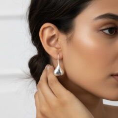 Sup Silver Puffy Teardrop Threader Earrings 37mm 925 Sterling Silver, Handmade Women Earrings