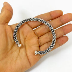 Sup Silver Foxtail Braided Cuff Bangle Bracelet 925 Sterling Silver, Handmade Unisex Cuff Bracelet
