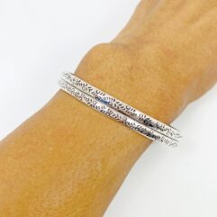 Sup Silver Flower Textured Sterling Silver Cuff Bangle, Handmade Unisex Two-Layer Bracelet