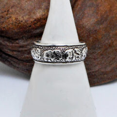 Sup Silver Bat, Rabbit, Slipper Textured Wrap Ring 925 Sterling Silver, Handmade Unisex Adjustable Flat Band Ring