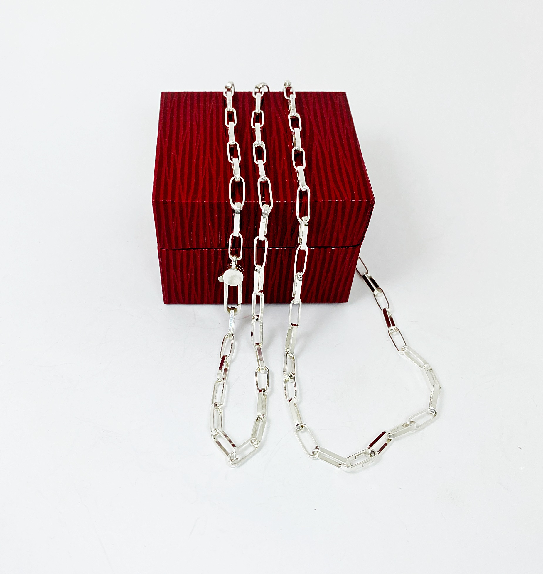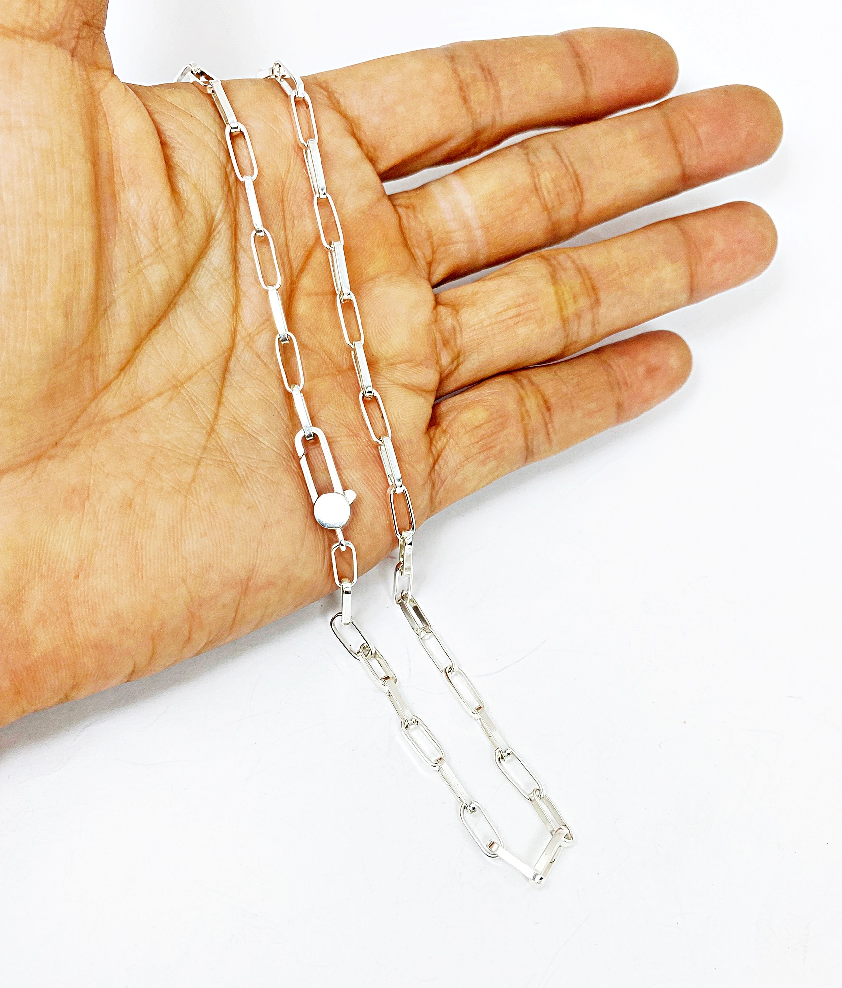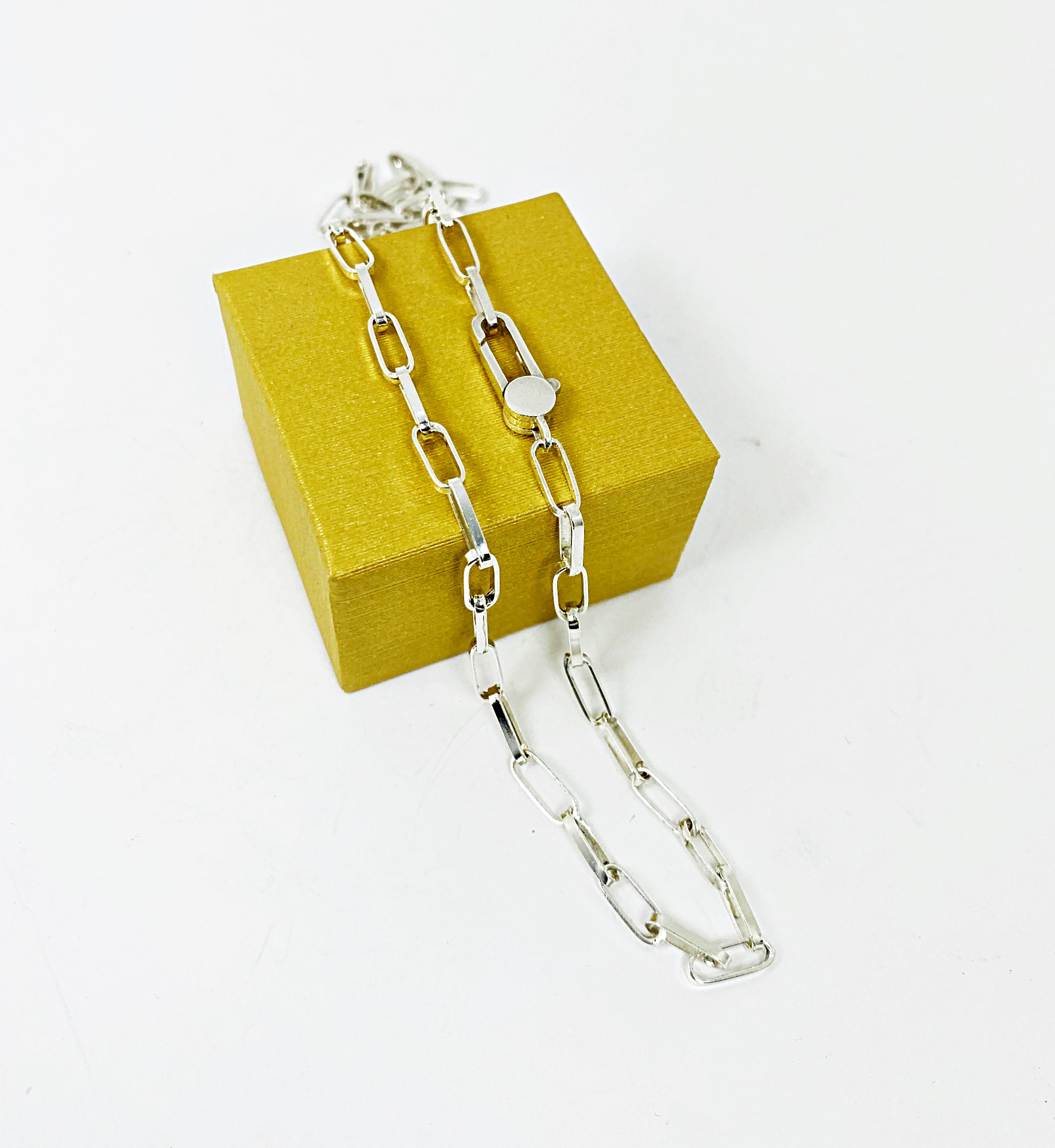 Sup Silver Opened Rectangle Box Chain Necklace 925 Sterling Silver, Handmade Unisex Chain