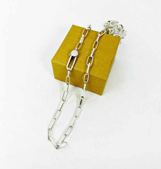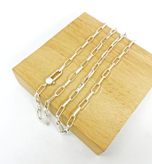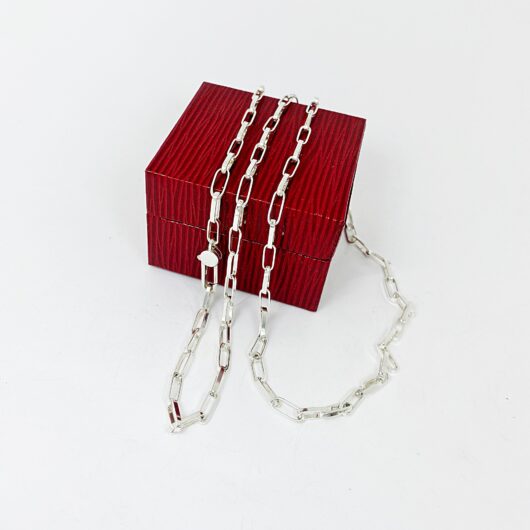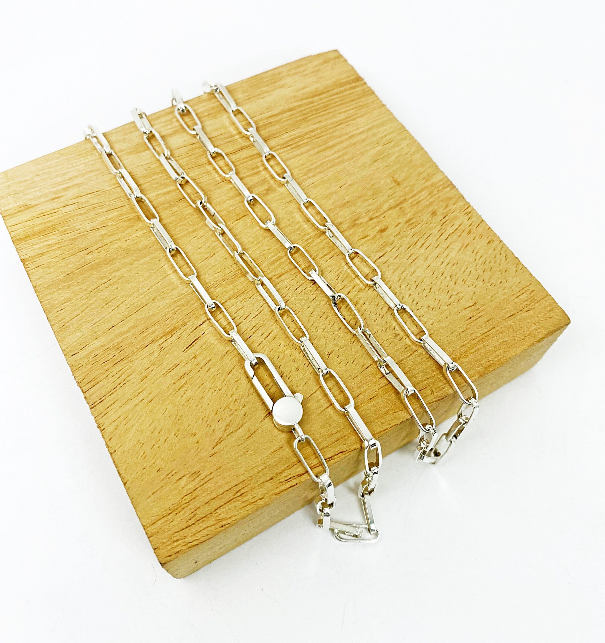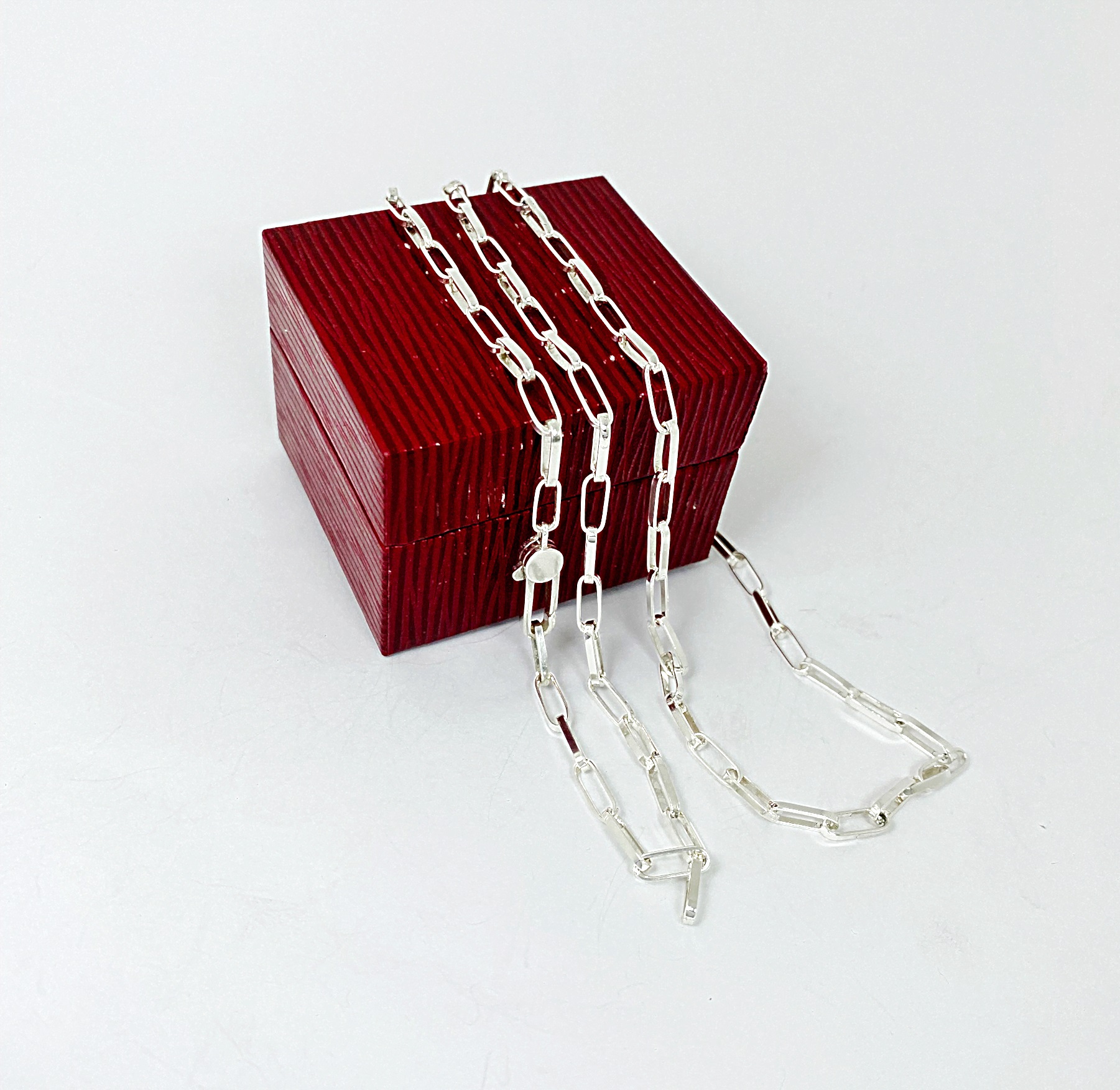 Sup Silver Opened Rectangle Box Chain Necklace 925 Sterling Silver, Handmade Unisex Chain