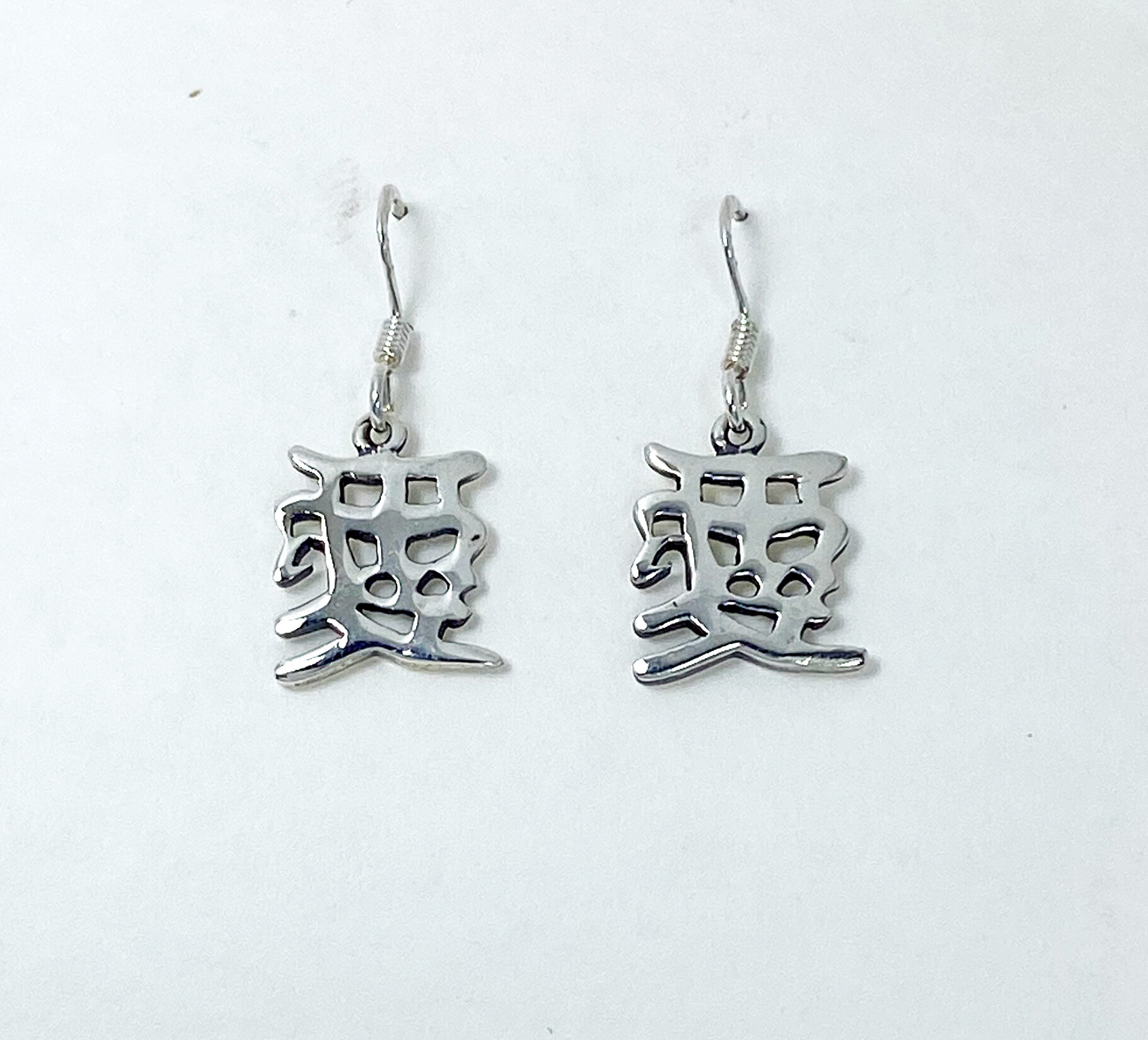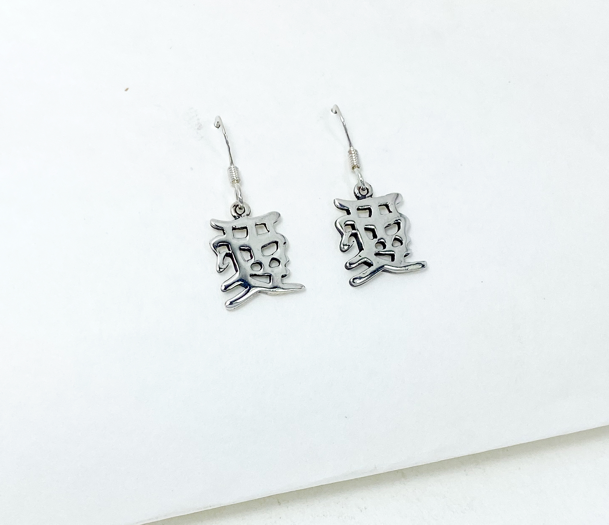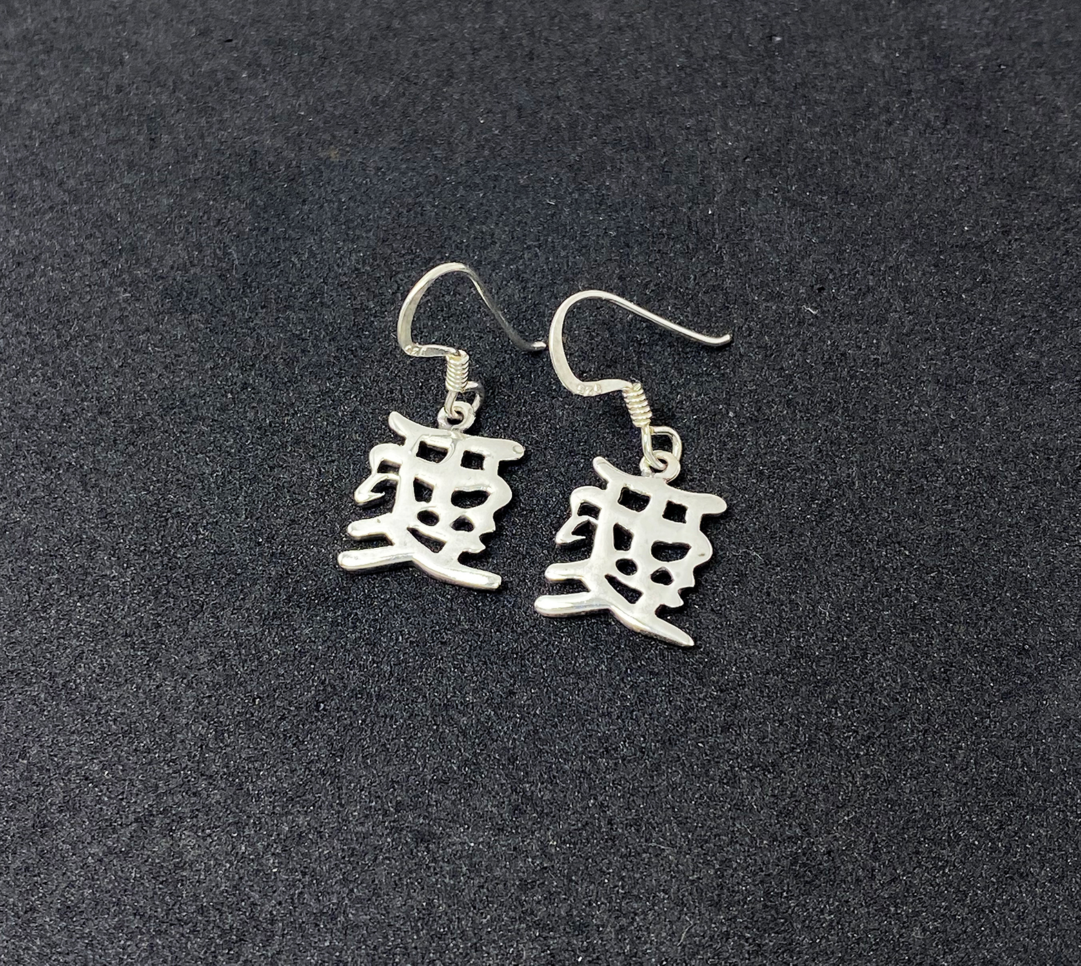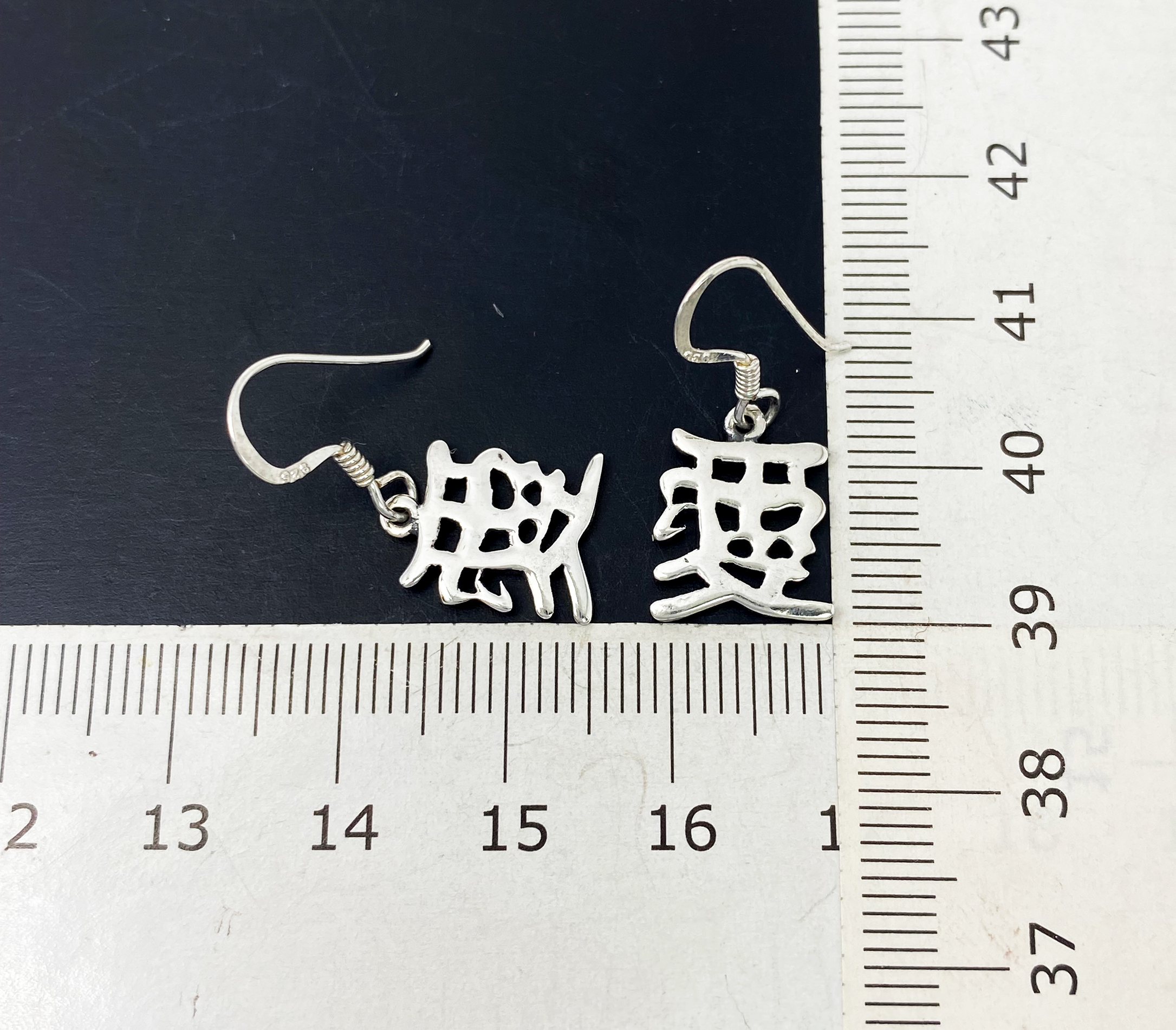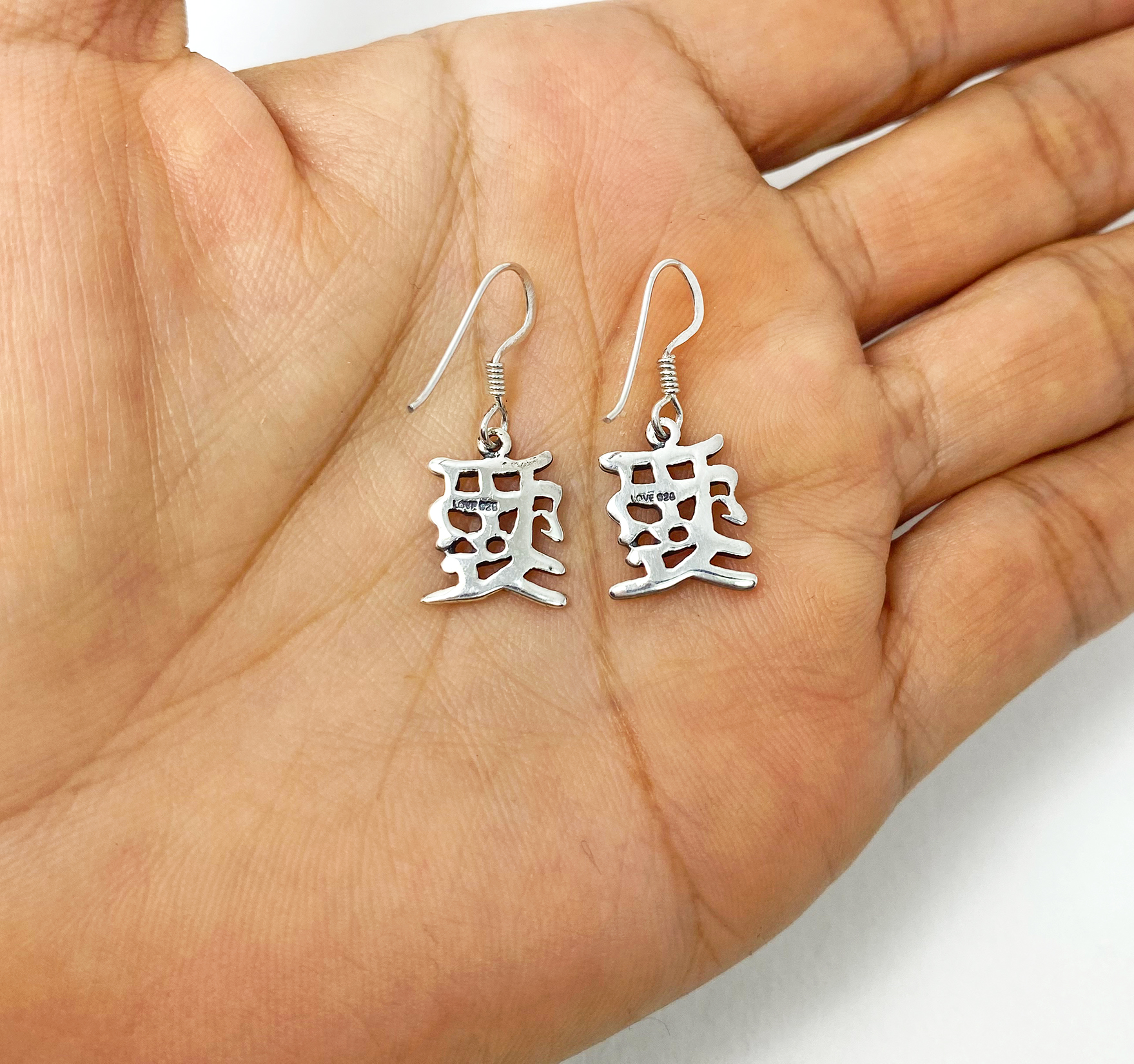 The cute Chinese character for love earrings are 925 sterling silver with handmade Asian symbol earrings designed and made by Sup Silver.