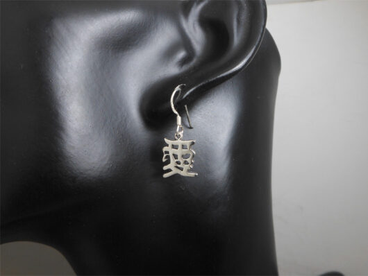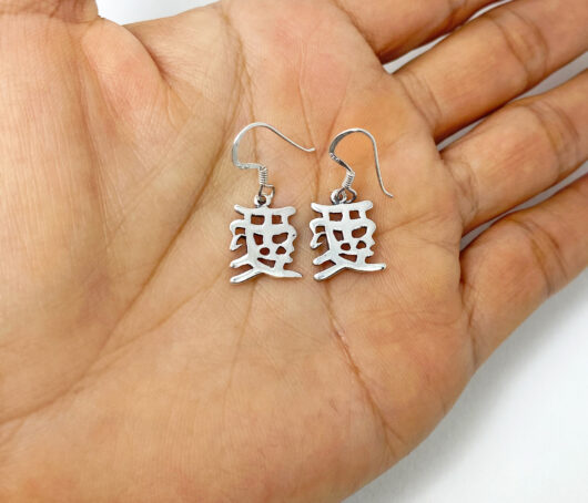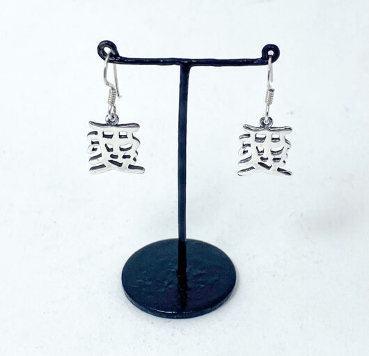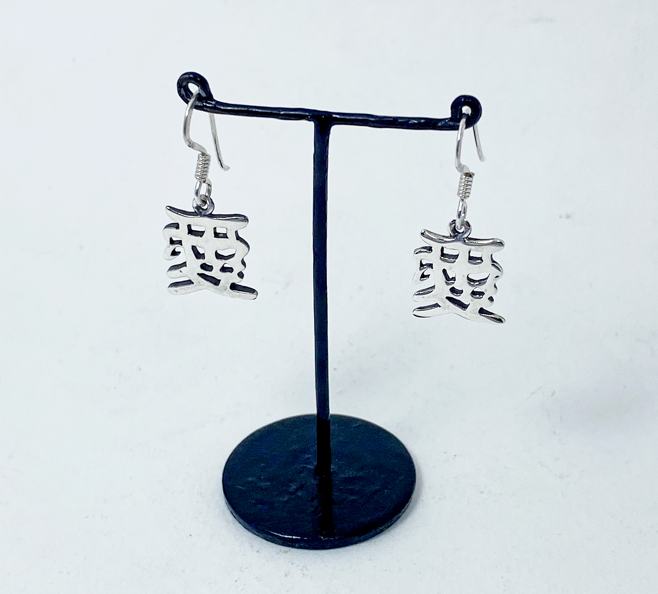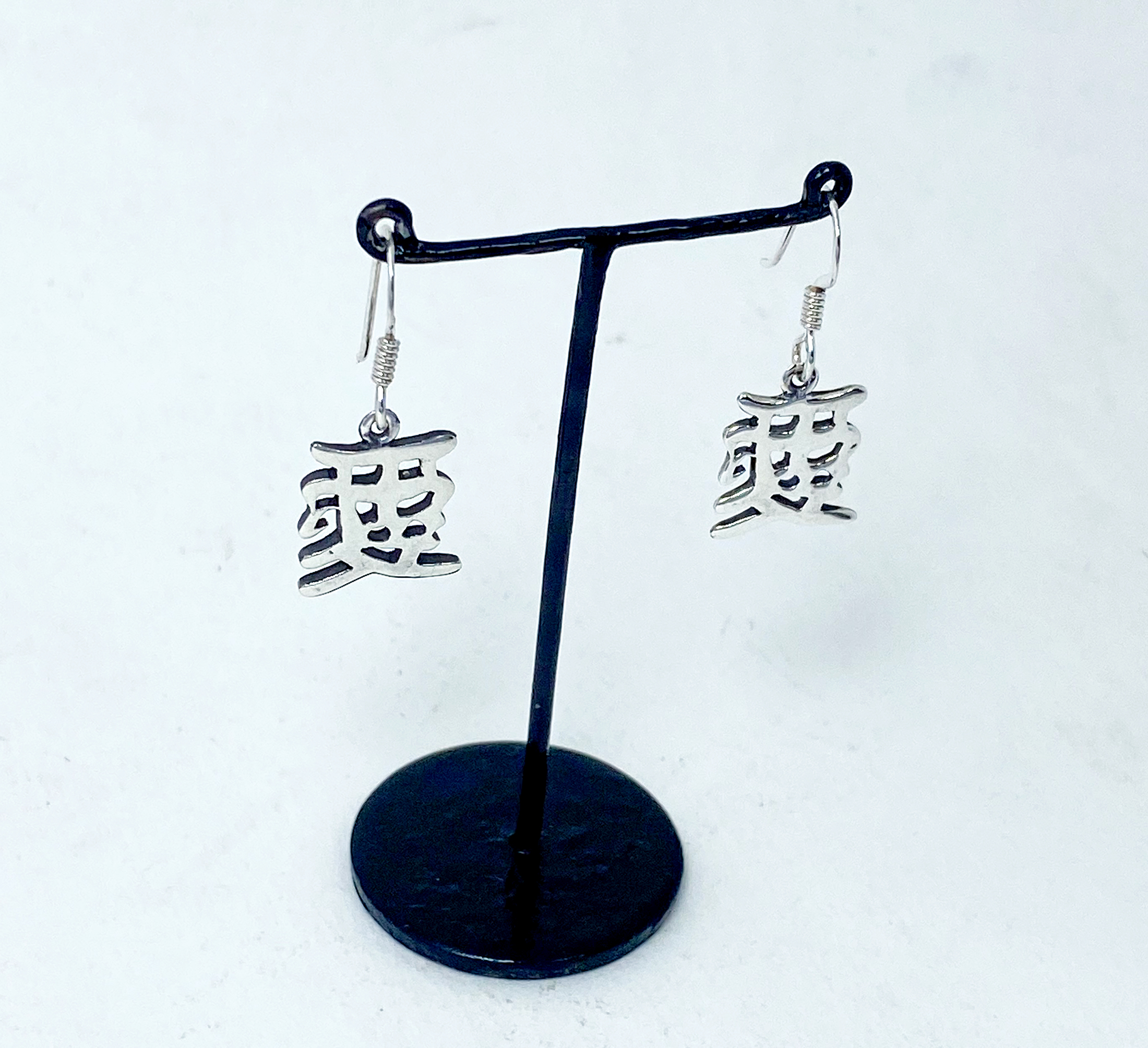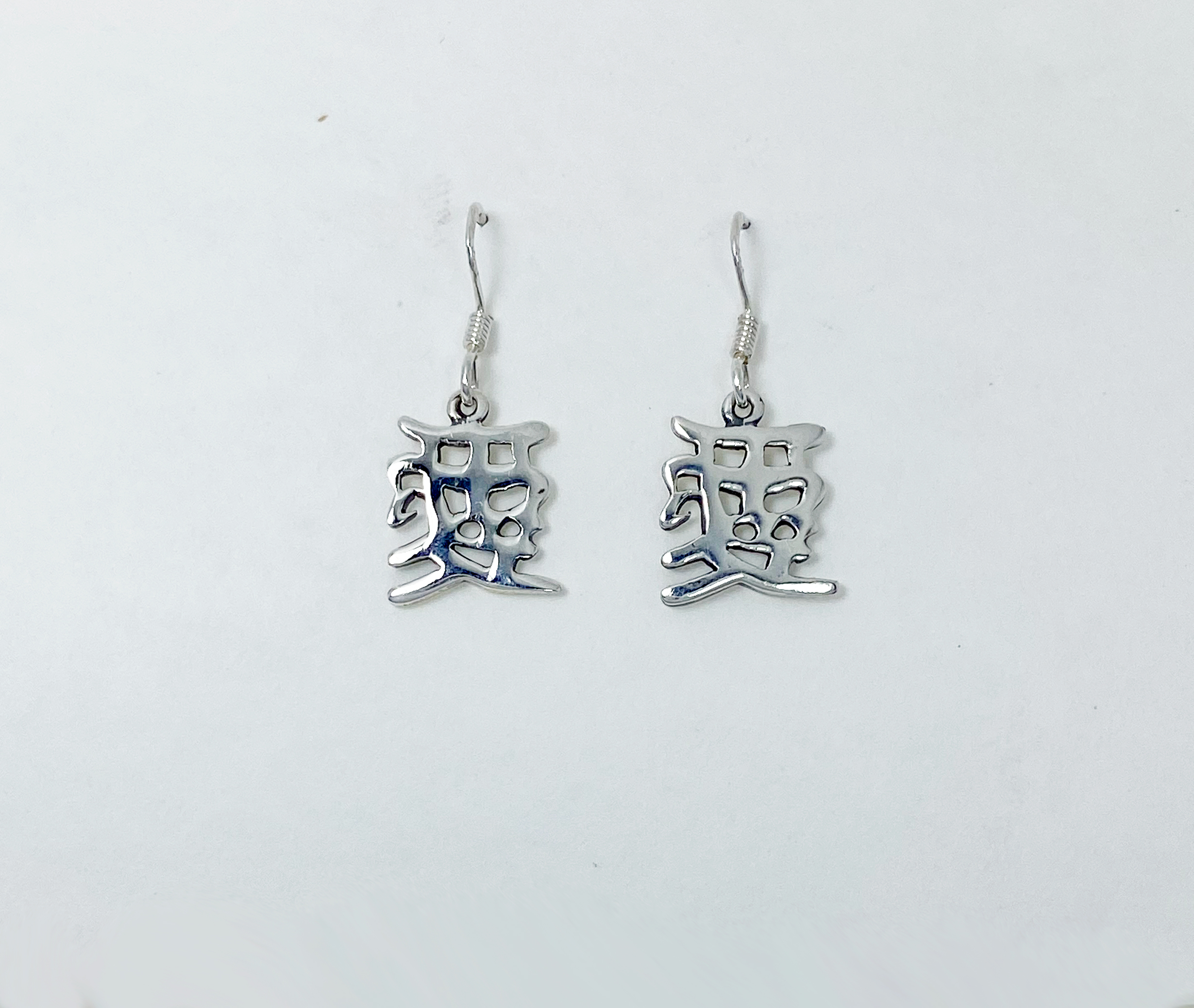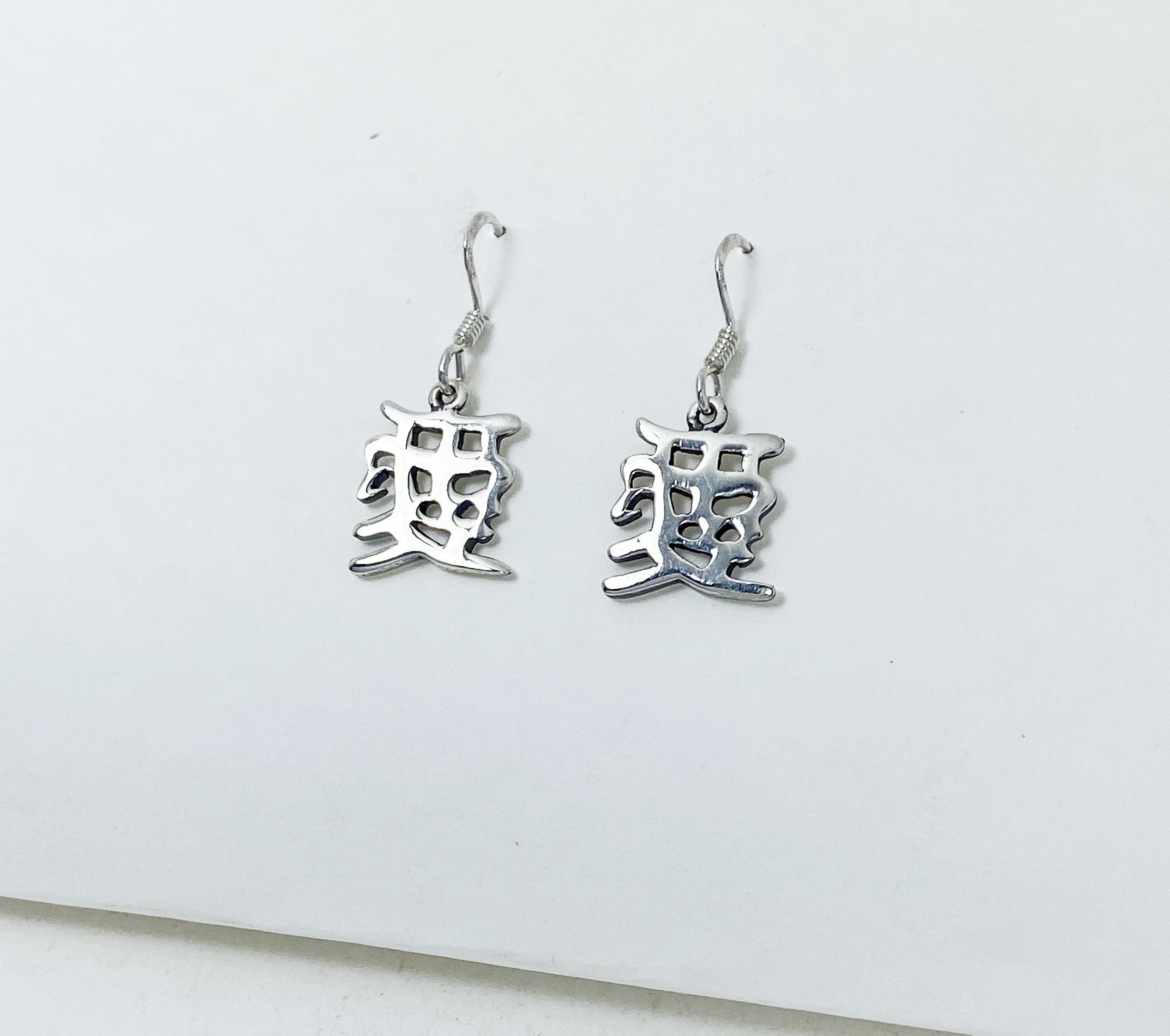 The cute Chinese character for love earrings are 925 sterling silver with handmade Asian symbol earrings designed and made by Sup Silver.