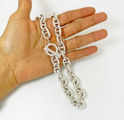 - Finish: Handmade, Chunky, Plain, 3D, Figure 8 Link Chain, Solid, Bone Textured T Bar, Thick, Durable, High Polished, Clean, Smooth, Shiny.