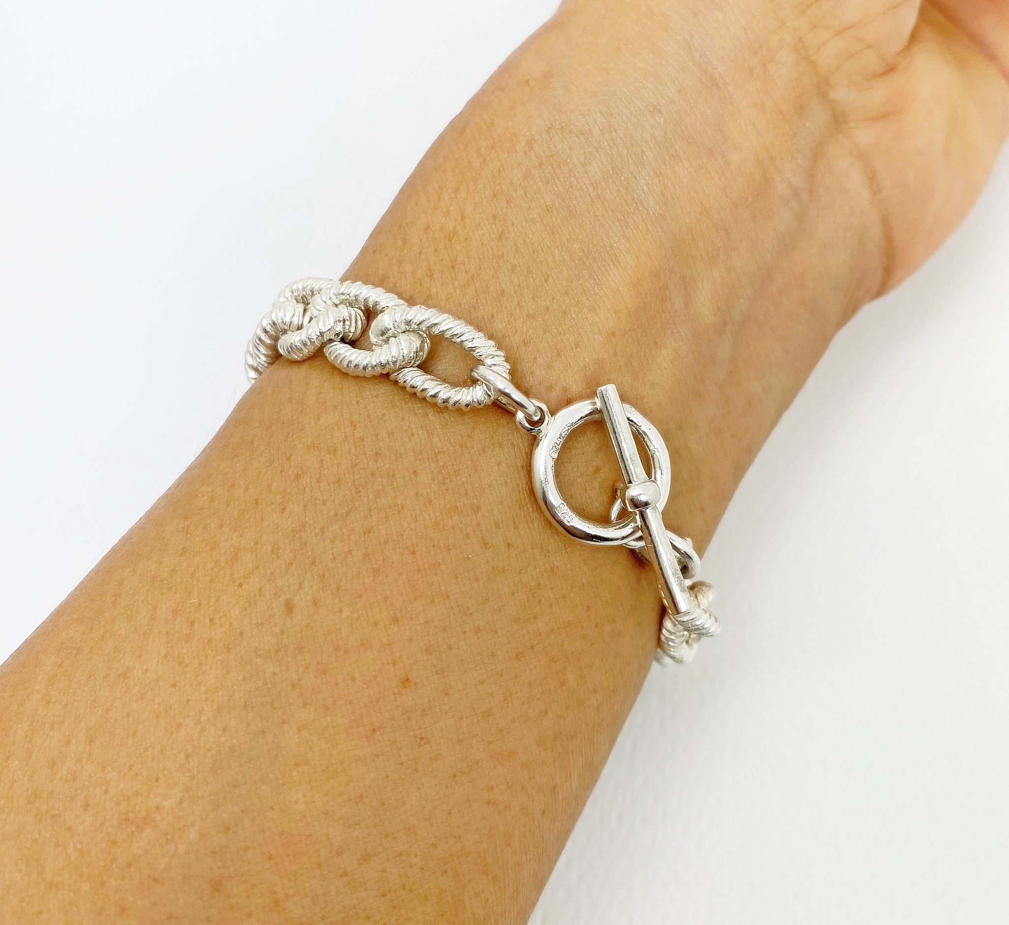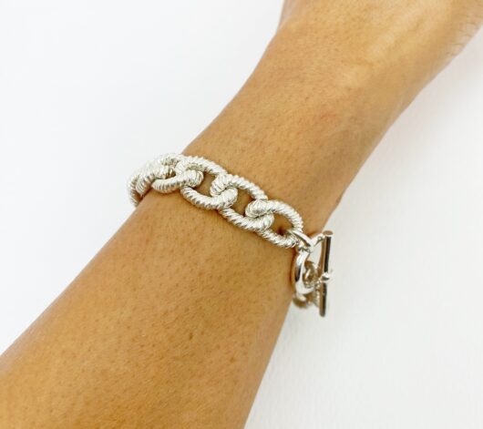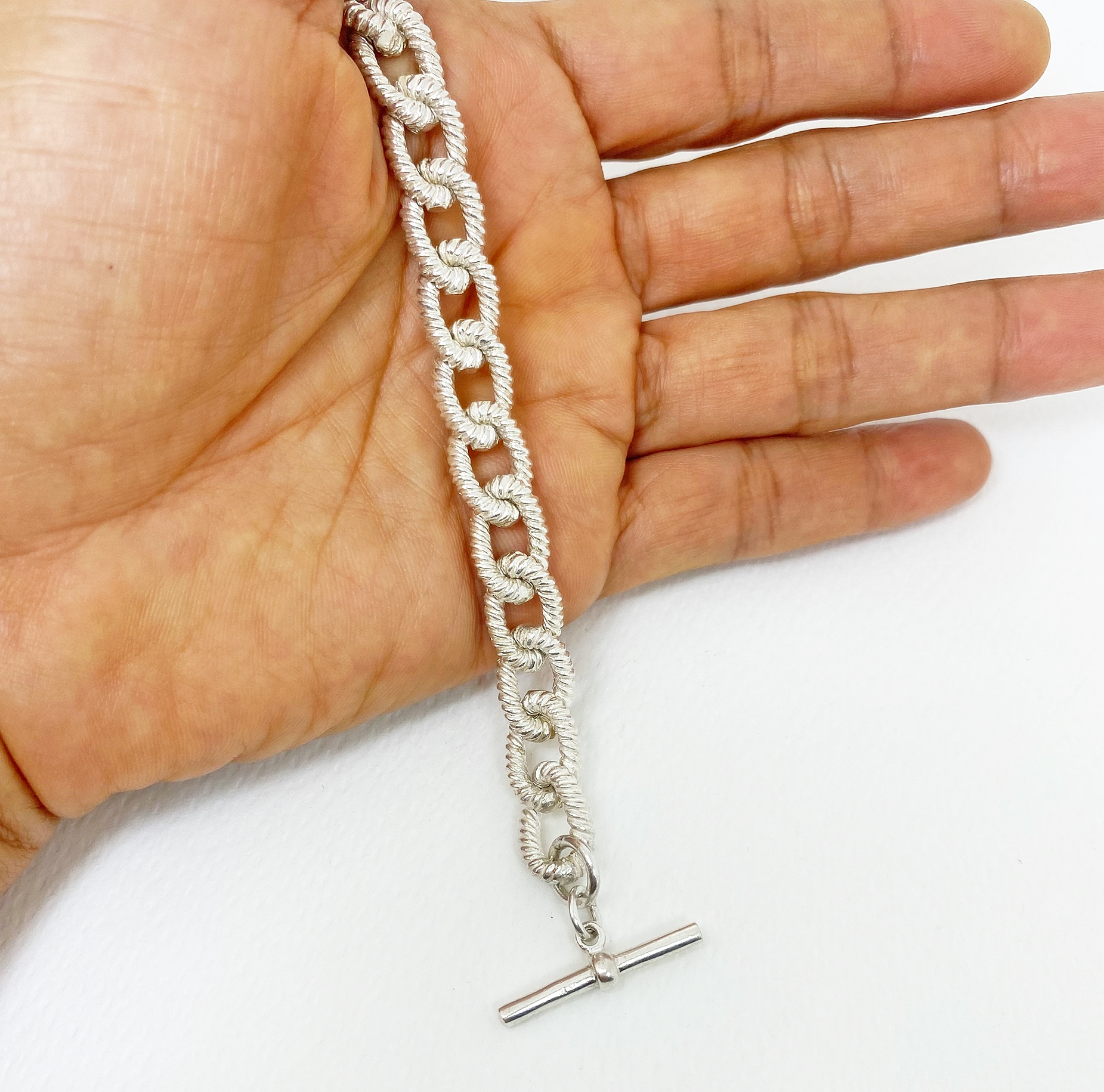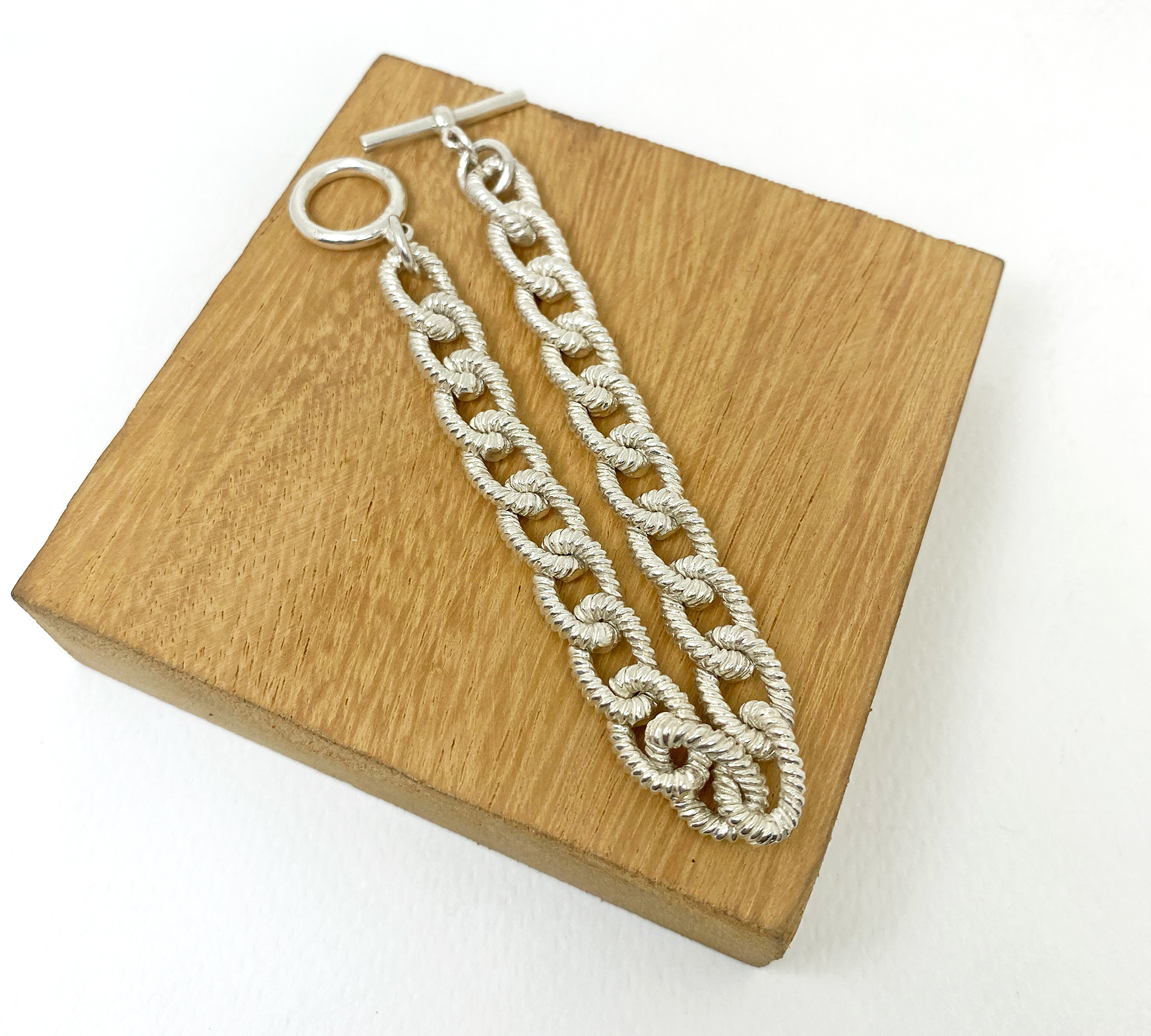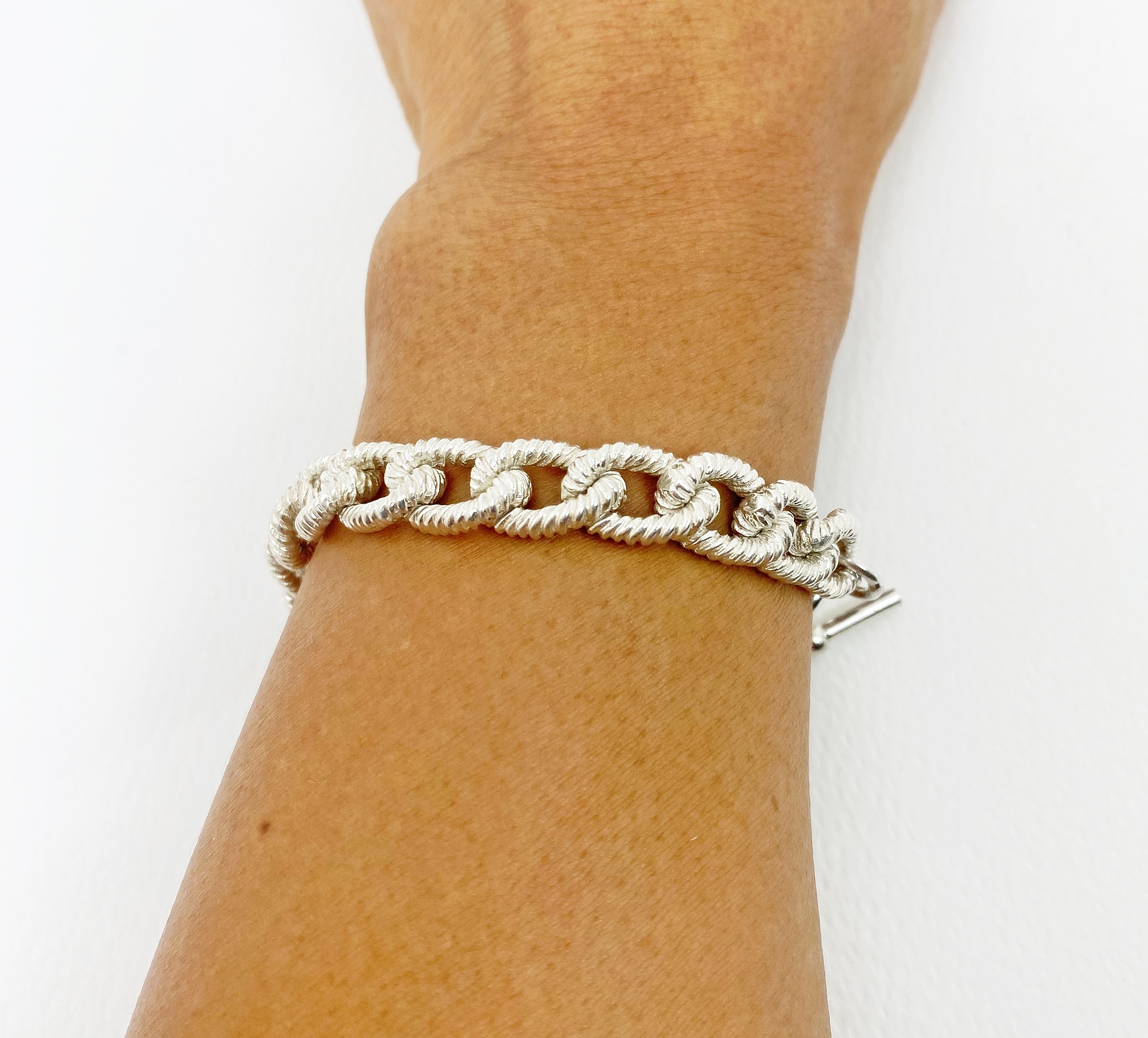 The lovely coil textured single curb chain bracelet is 925 sterling silver with handmade unisex bracelet designed and made by Sup Silver.