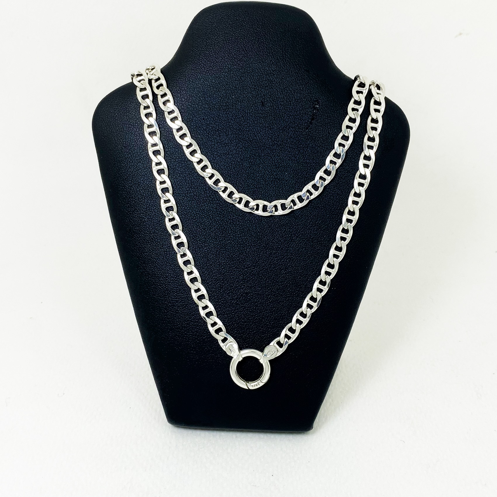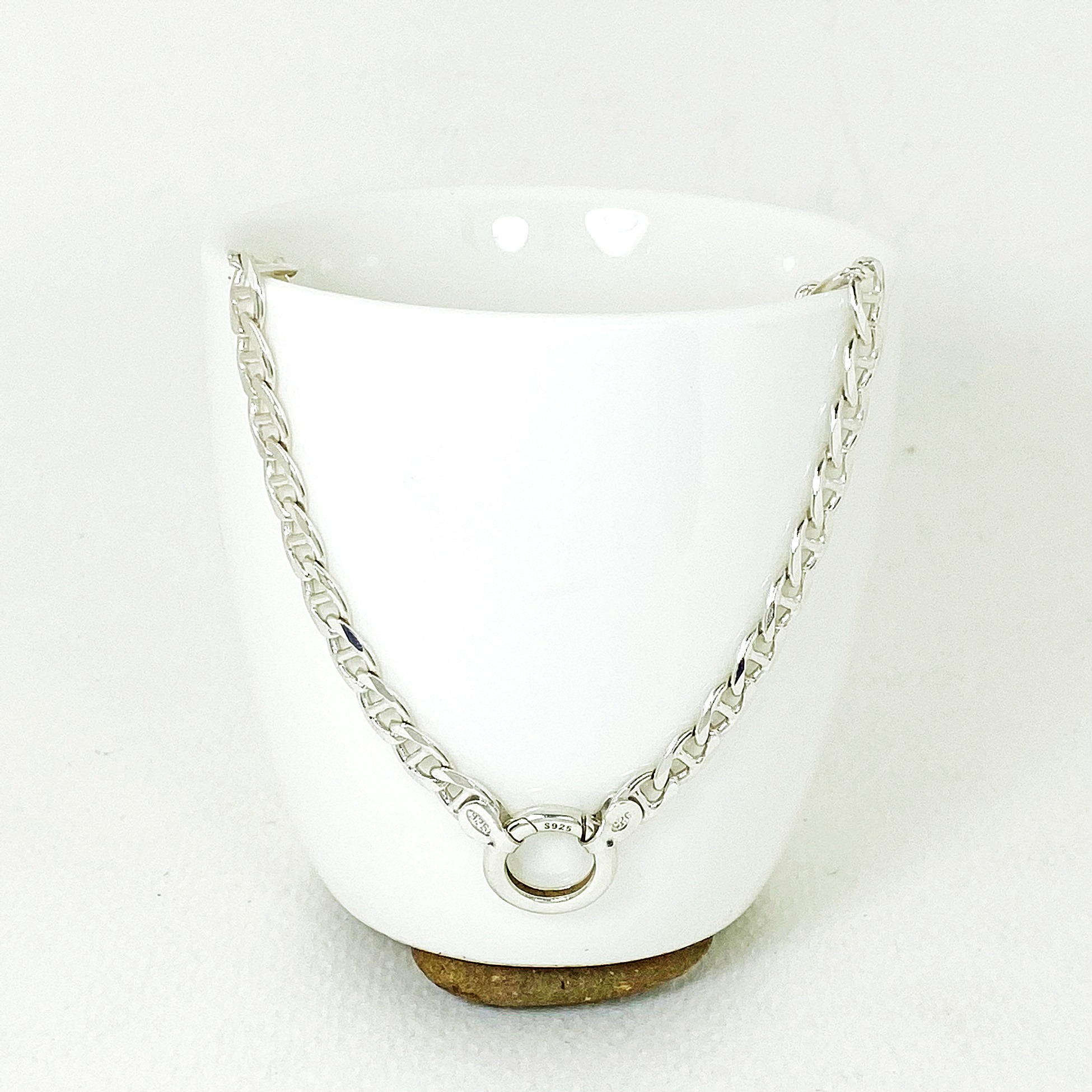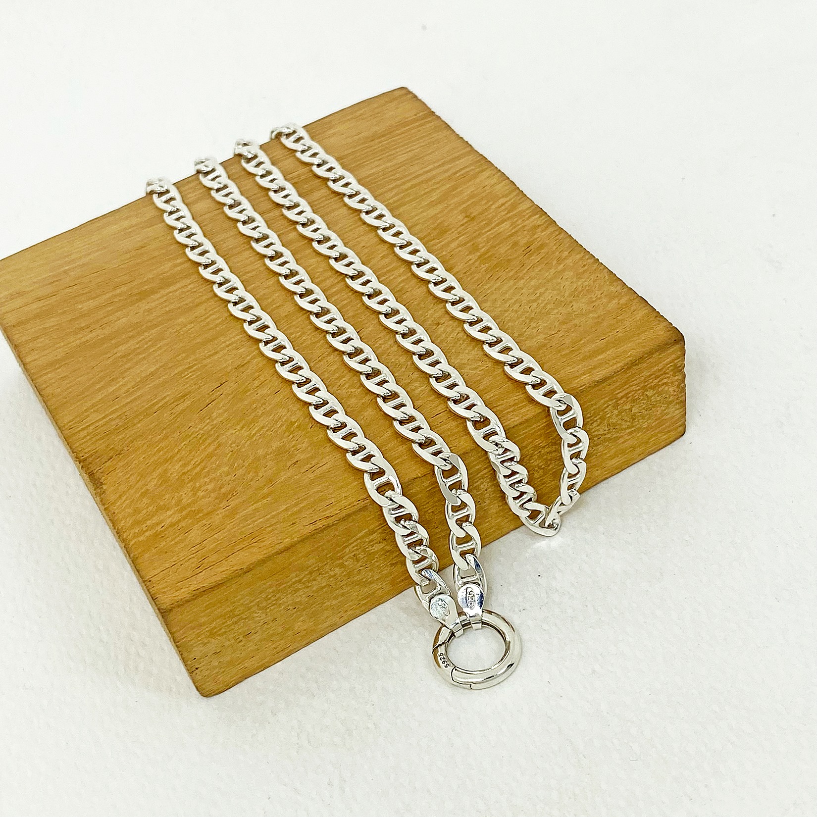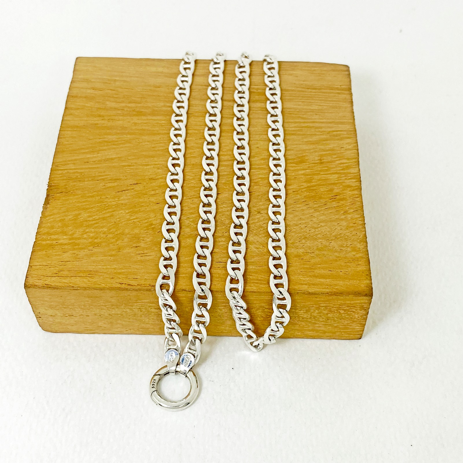 The modern round clasp mariner chain necklace is 925 sterling silver with handmade men necklace designed and made by Sup Silver.