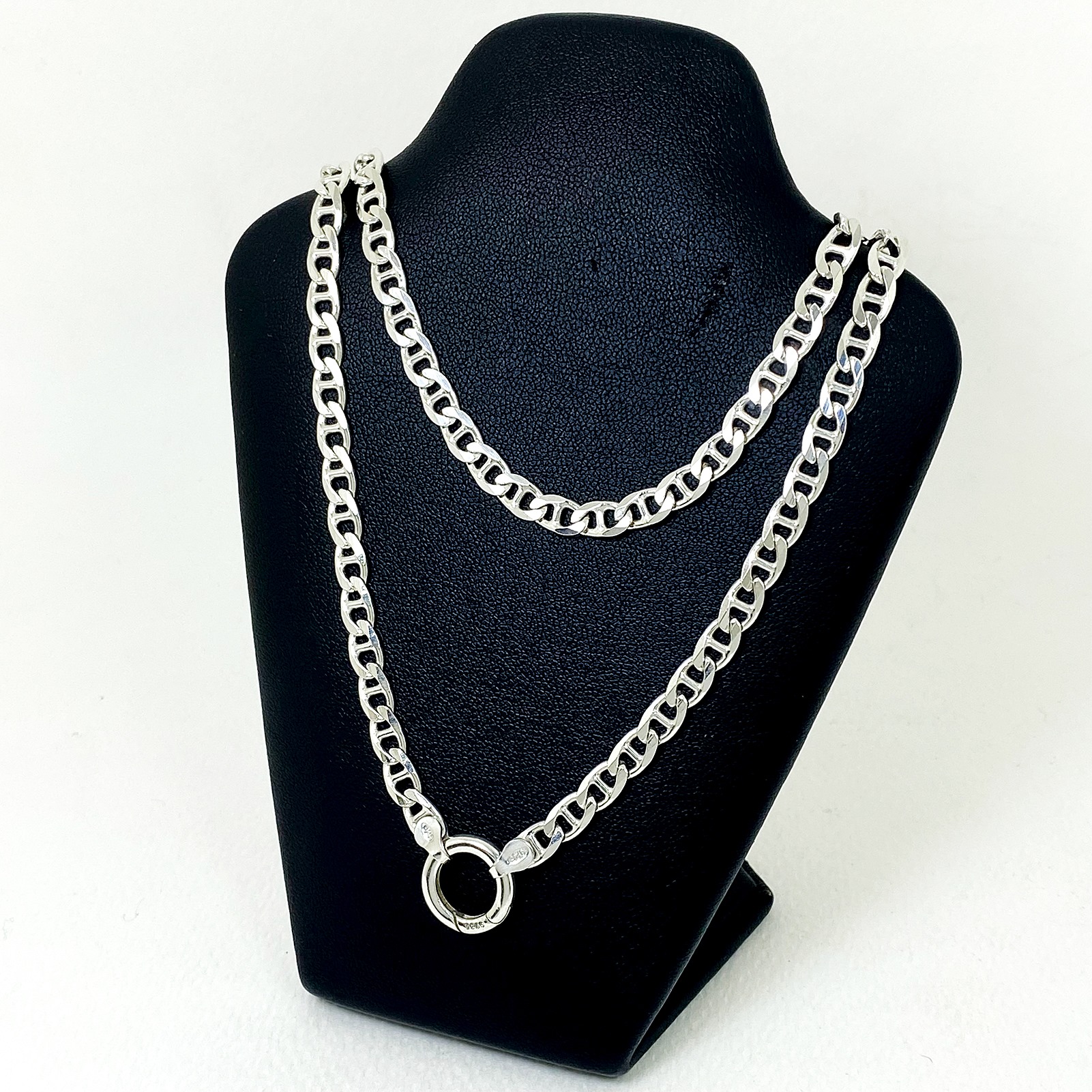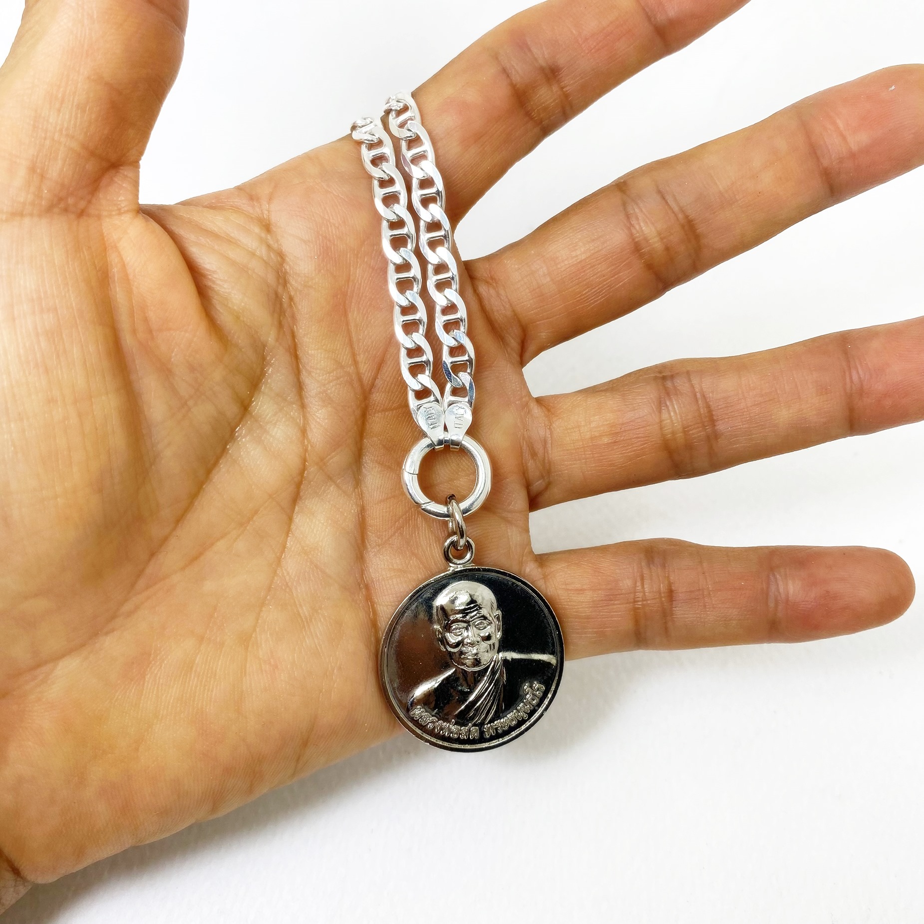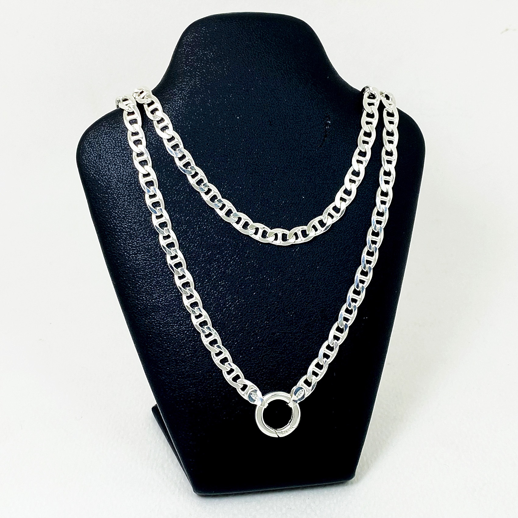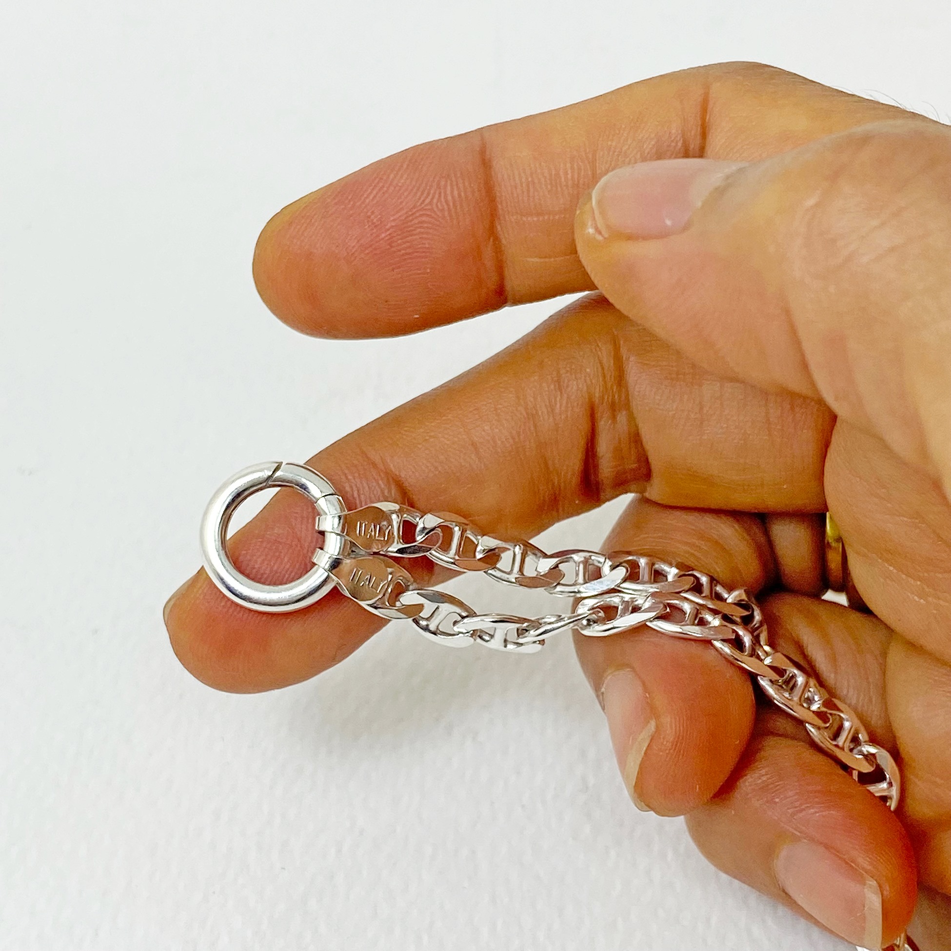 The modern round clasp mariner chain necklace is 925 sterling silver with handmade men necklace designed and made by Sup Silver.