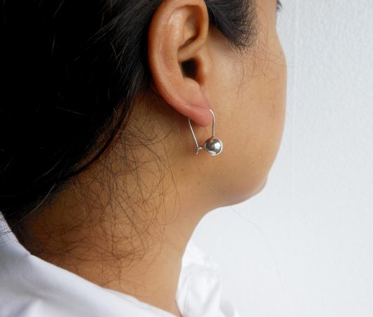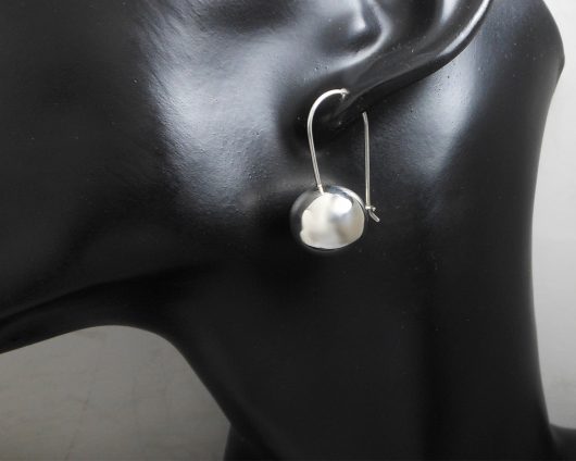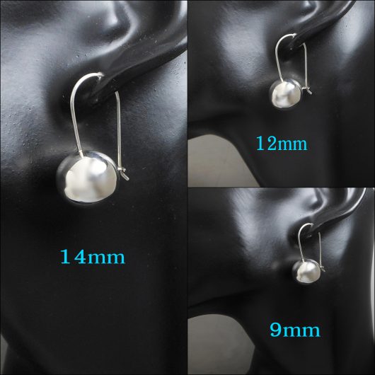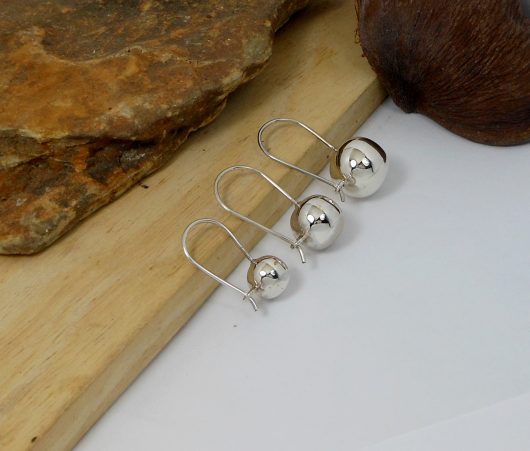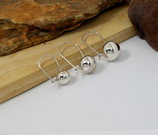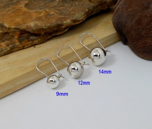 The lovely puffy ball kidney wire earrings are 925 sterling silver with handmade womens ball hoops designed and made by Sup Silver.