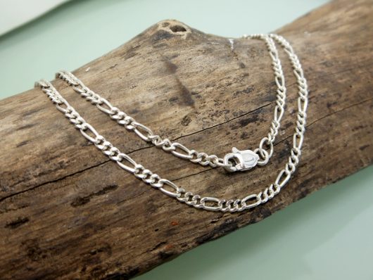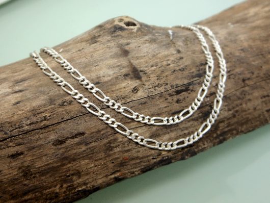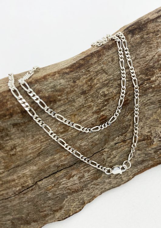The cool Figaro chain necklace is 925 sterling silver with handmade diamond cut men necklace designed by Sup Silver