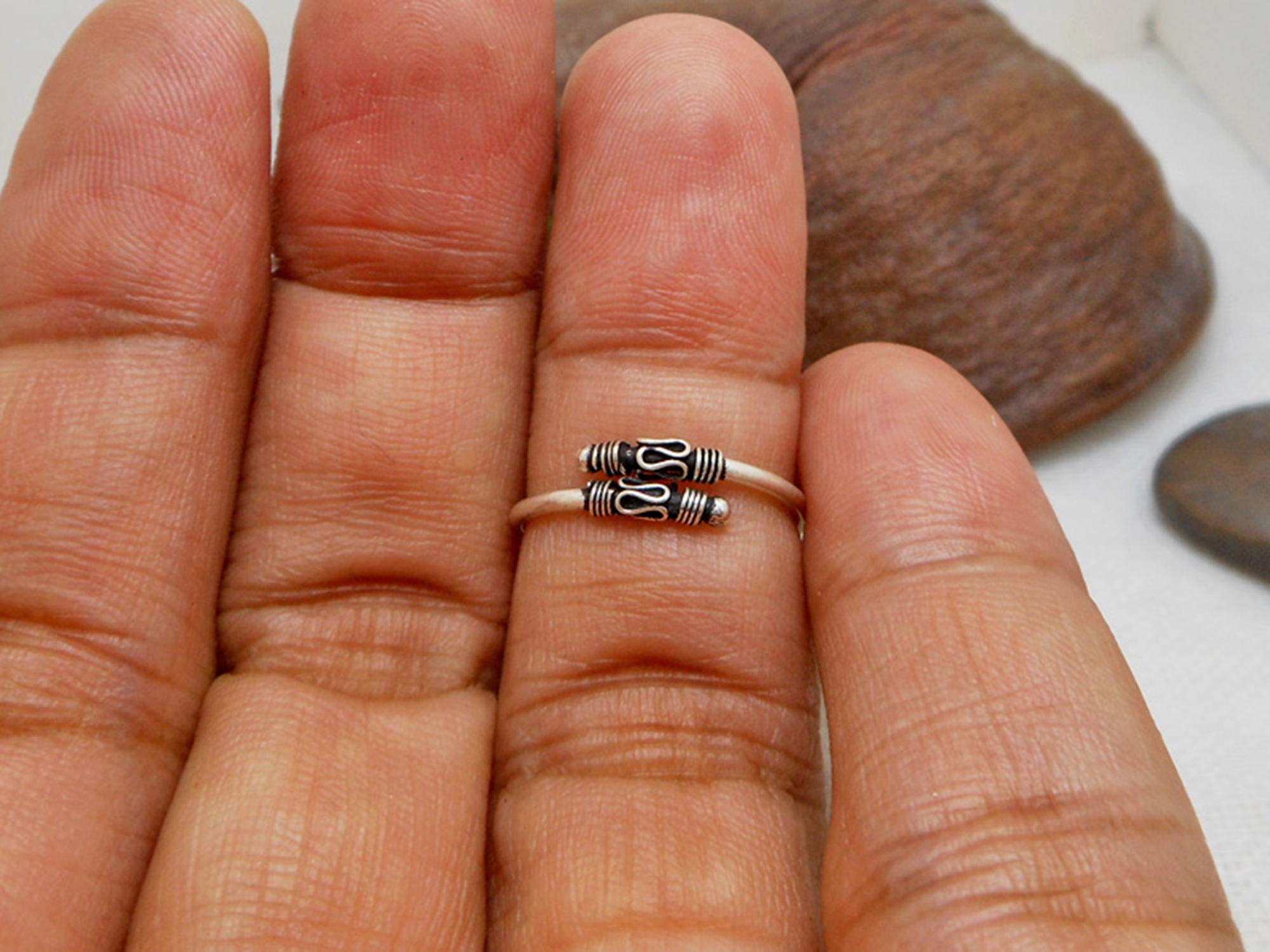 This cute bali textured toe ring is 925 sterling silver with handmade women adjustable beach ring designed and made bty Sup Silver.