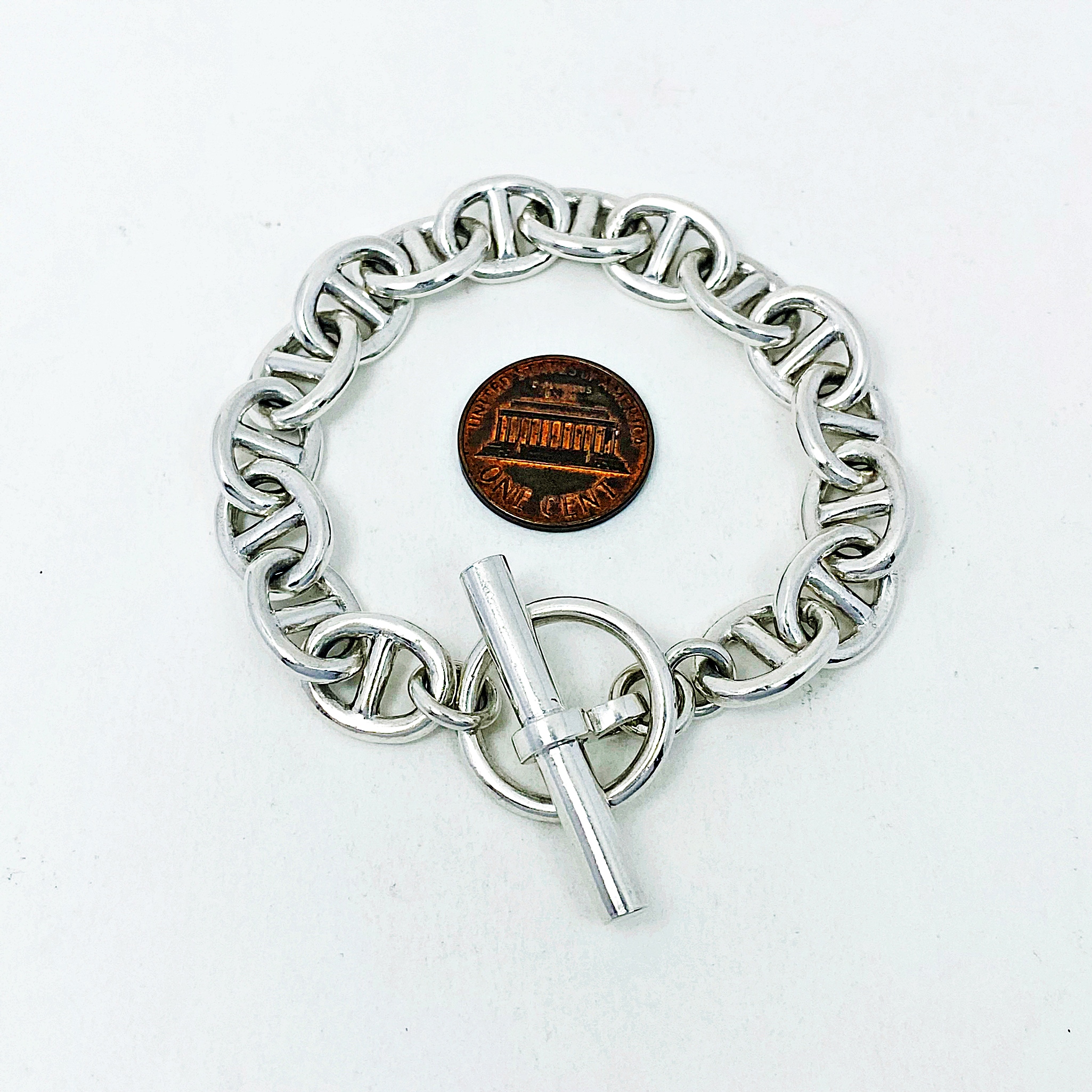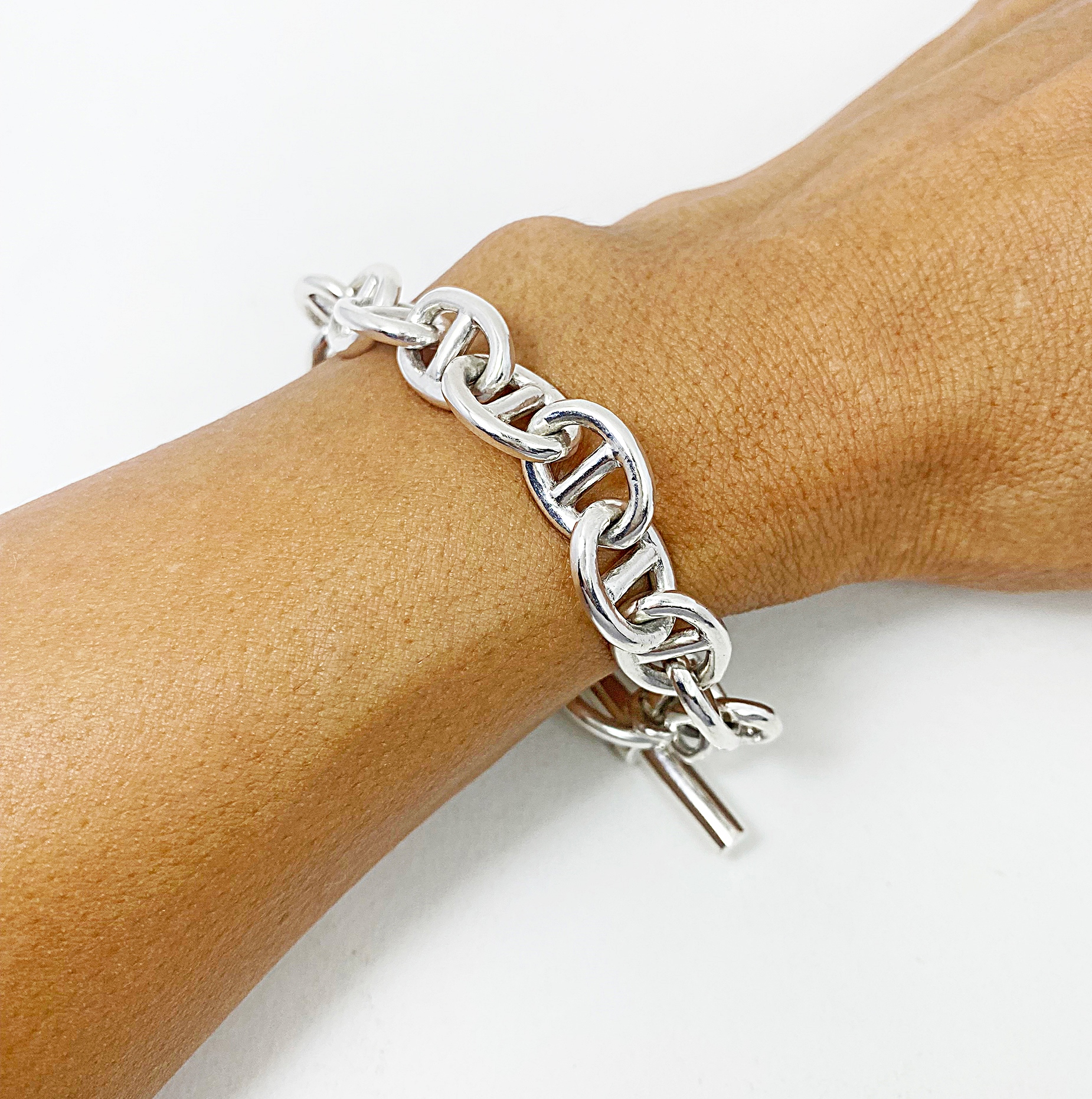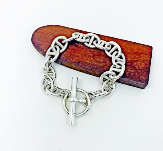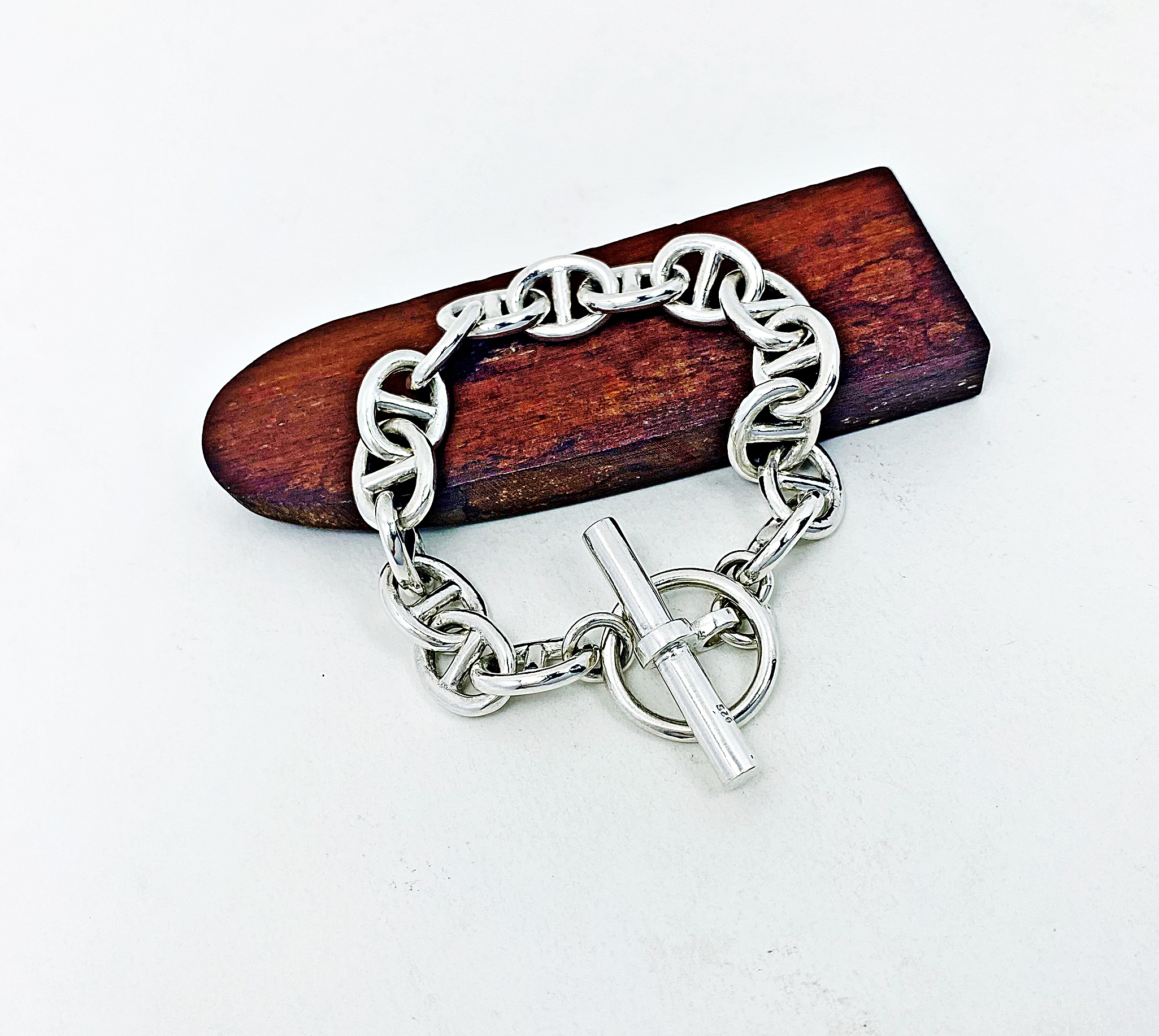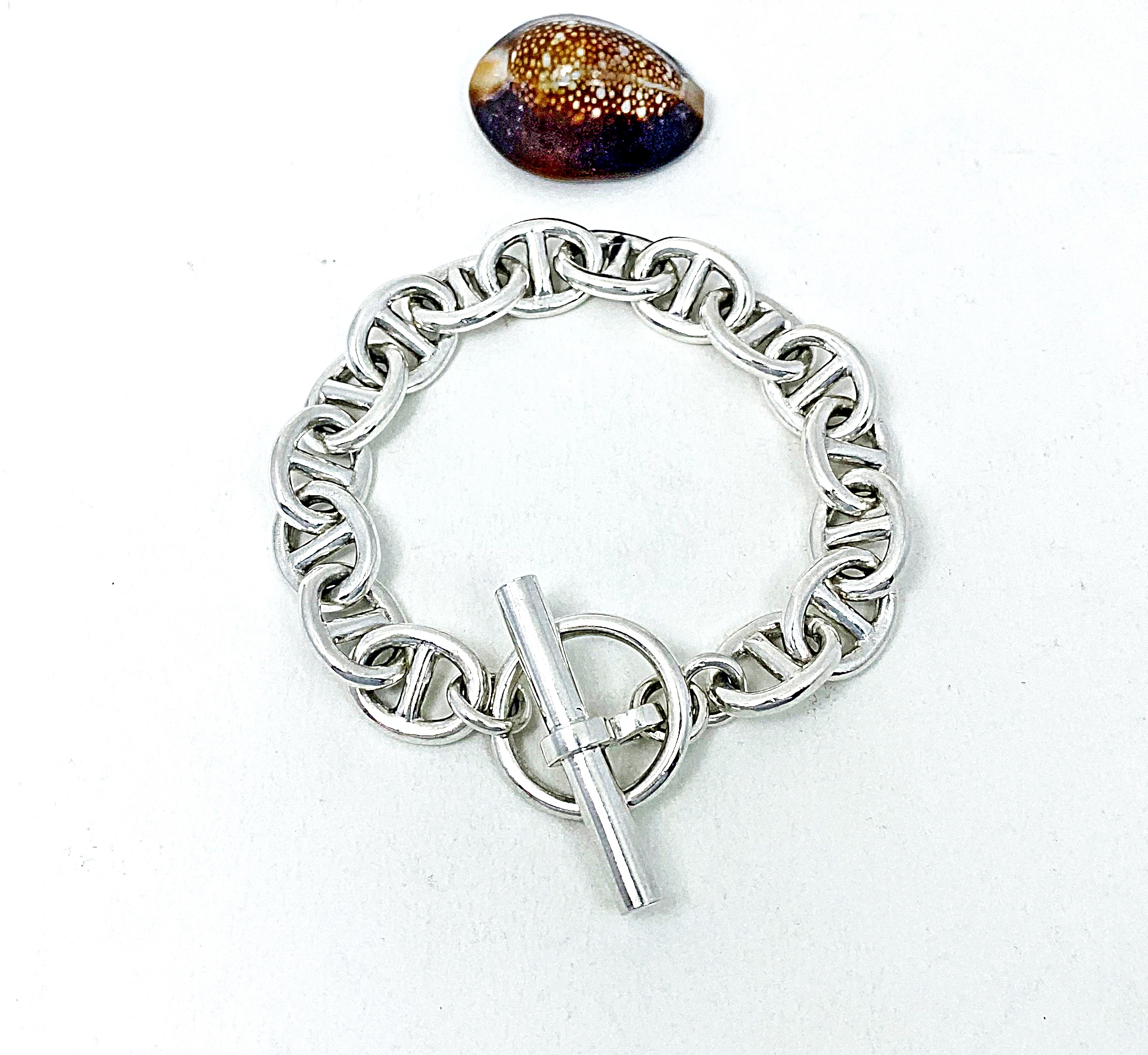 The chunky figure 8 link toggle bracelet is 925 sterling silver with handmade t bar bracelet designed and made by Sup Silver.