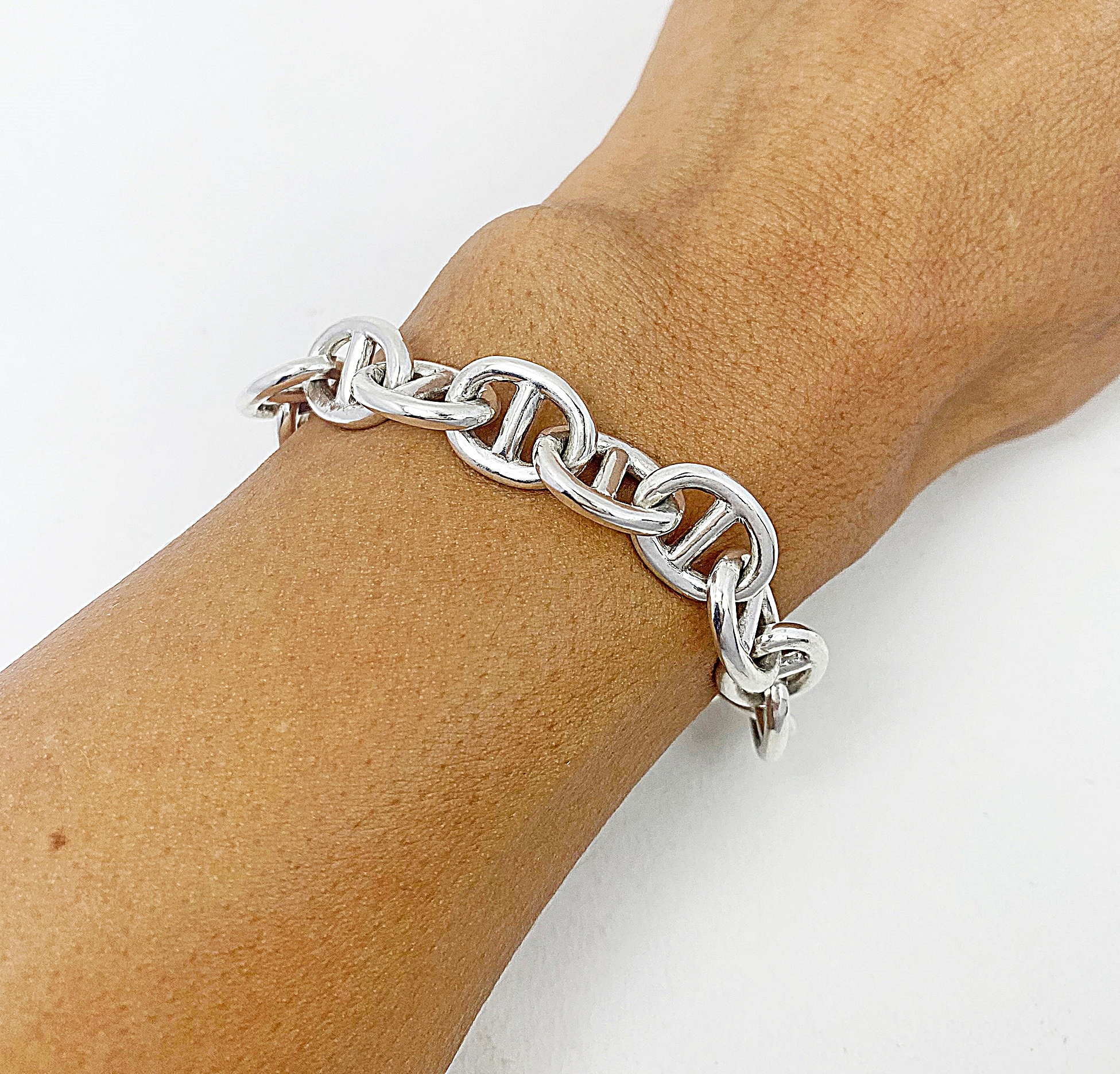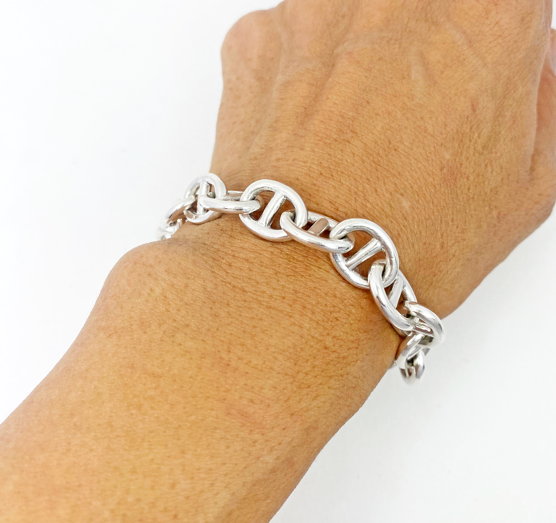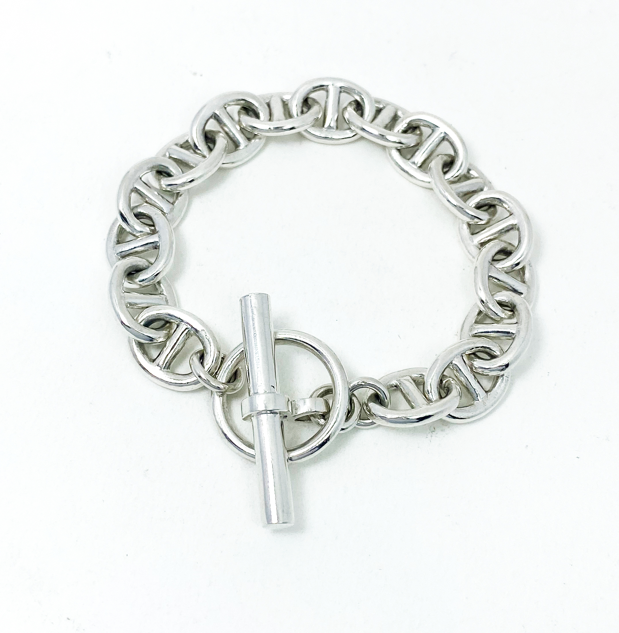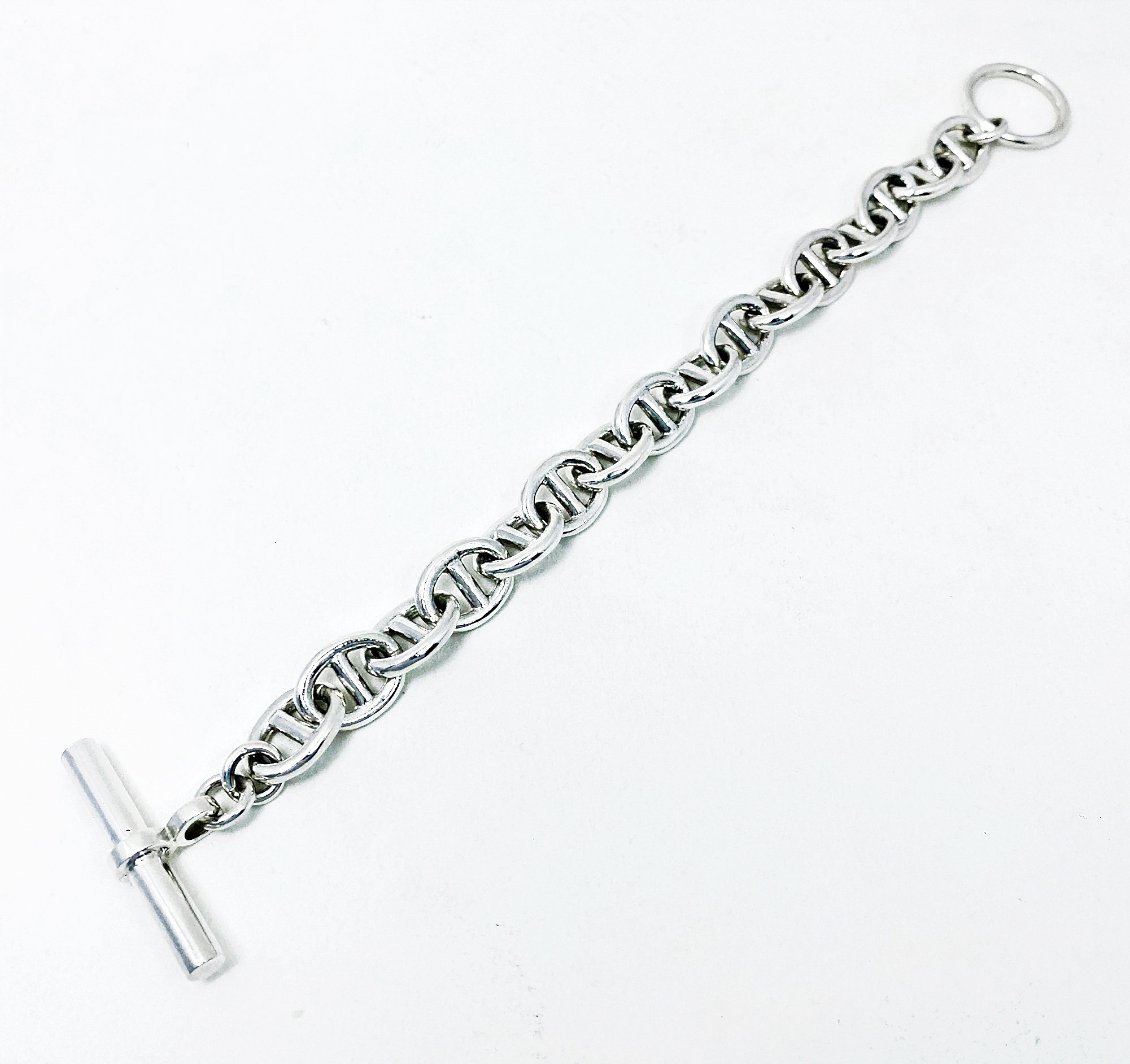 The chunky figure 8 link toggle bracelet is 925 sterling silver with handmade t bar bracelet designed and made by Sup Silver.