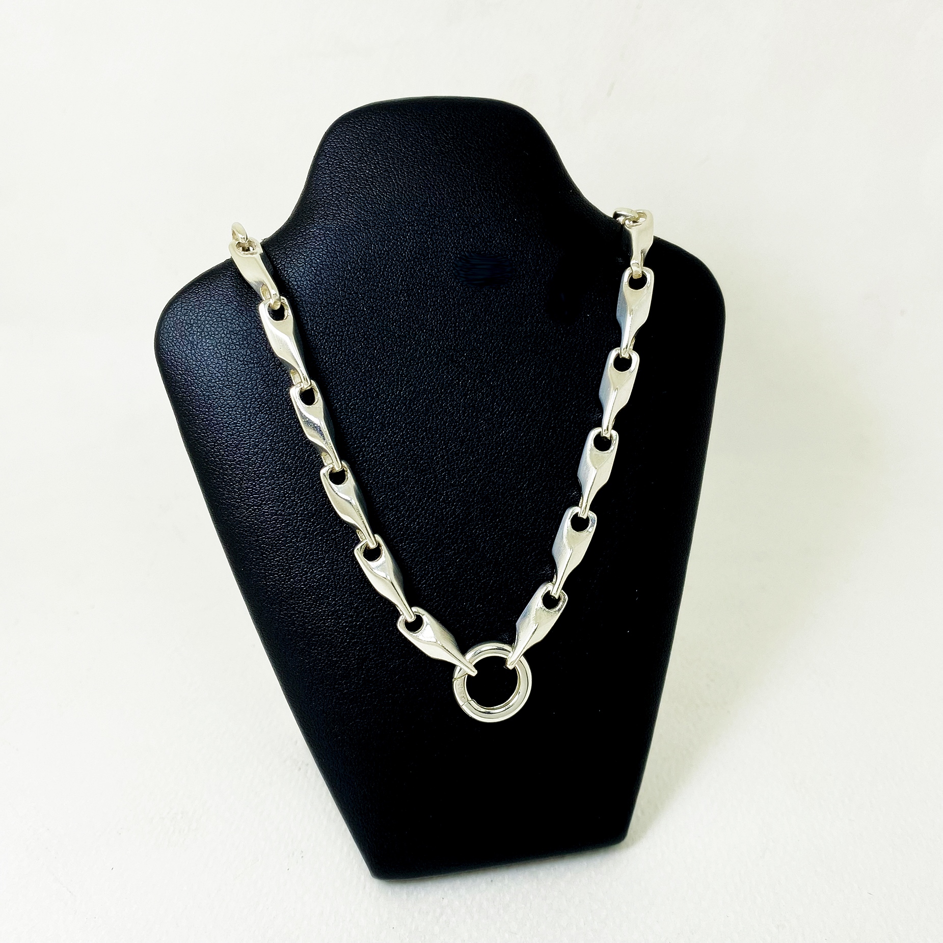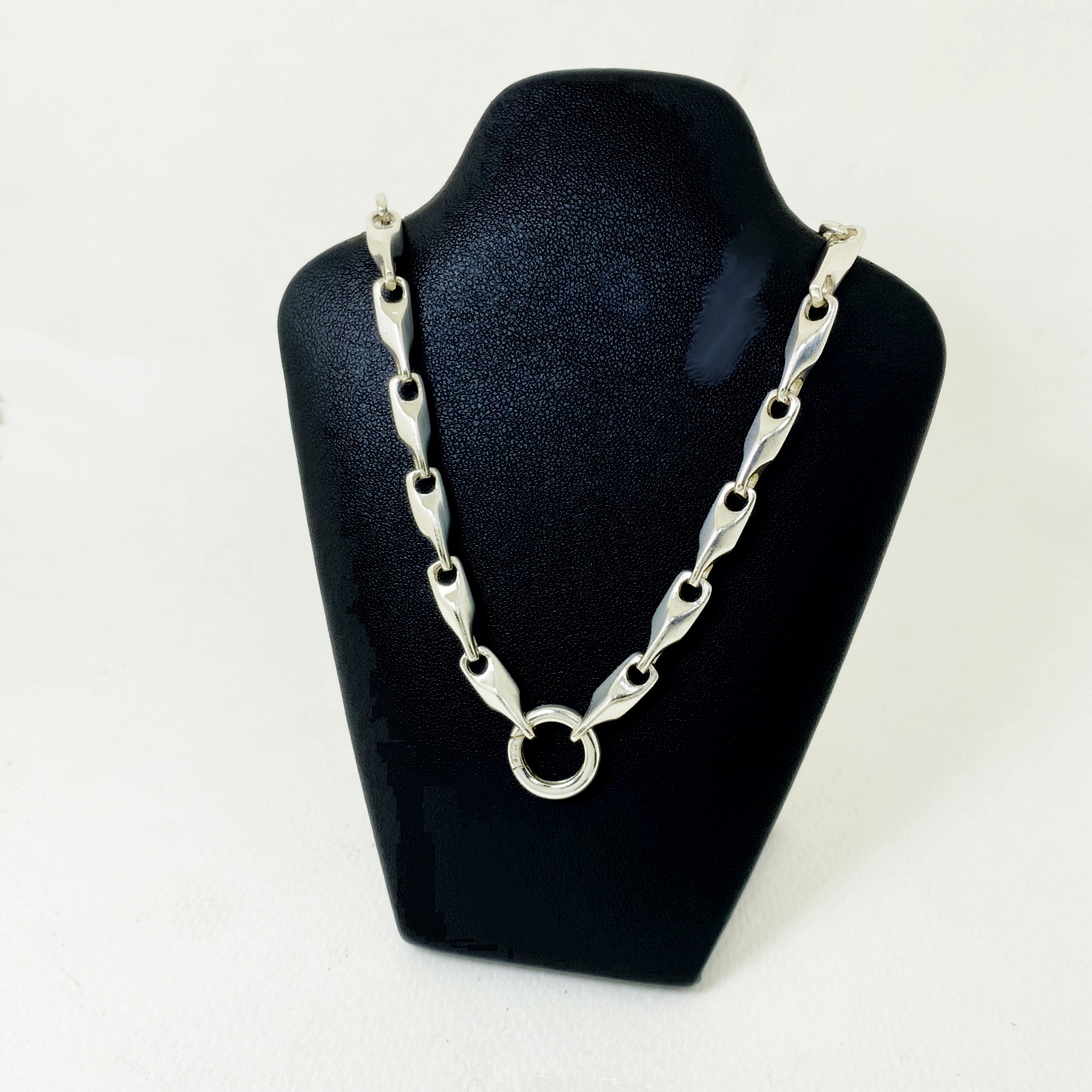 The classic geometric link chain necklace is 925 sterling silver with handmade unisex solid necklace designed and made by Sup Silver.