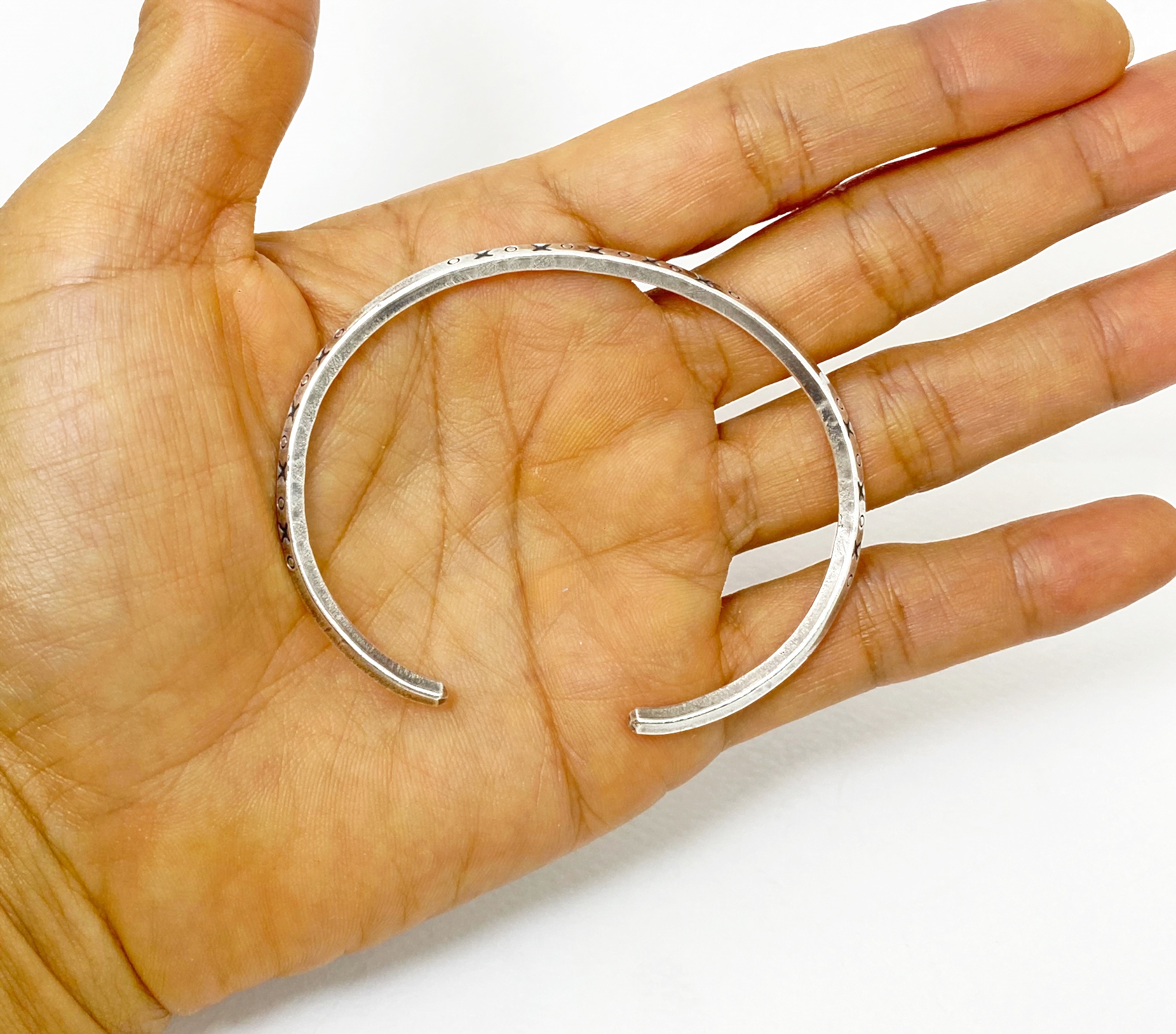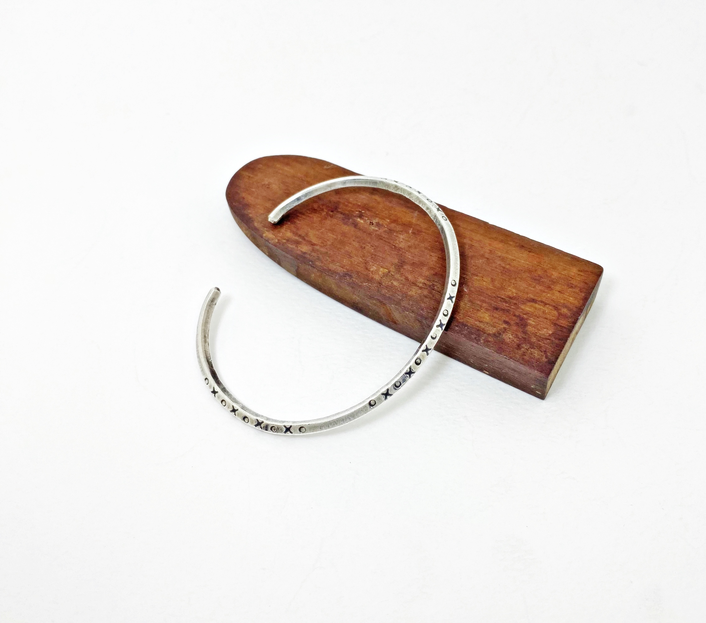 The cute o x texture knife edge cuff bangle bracelet is 925 sterling silver with handmade unisex jewelry designed and made by Sup Silver