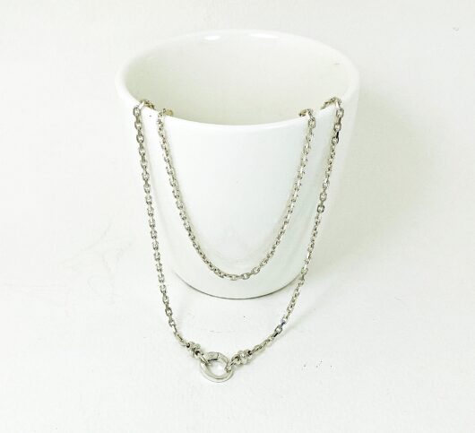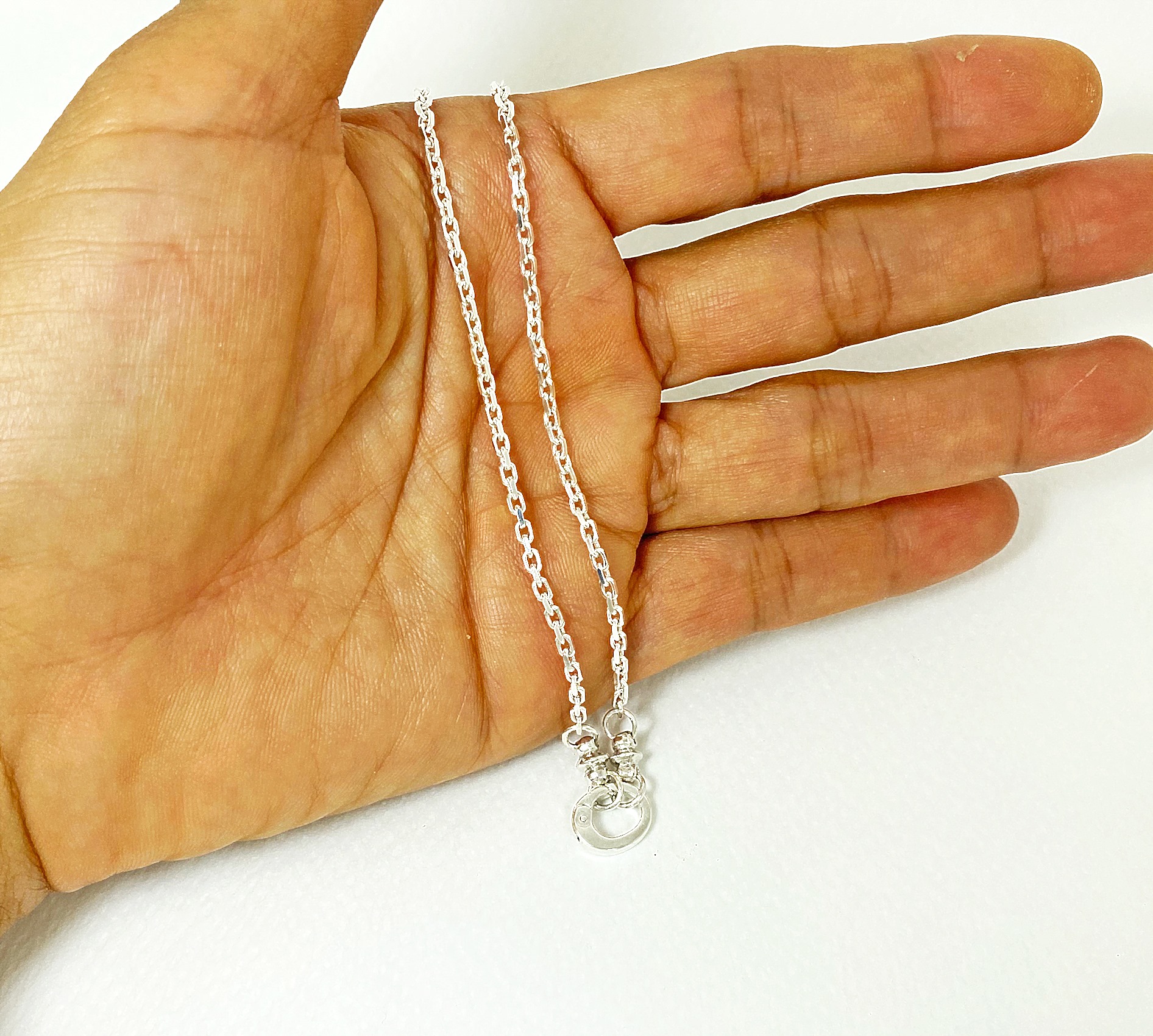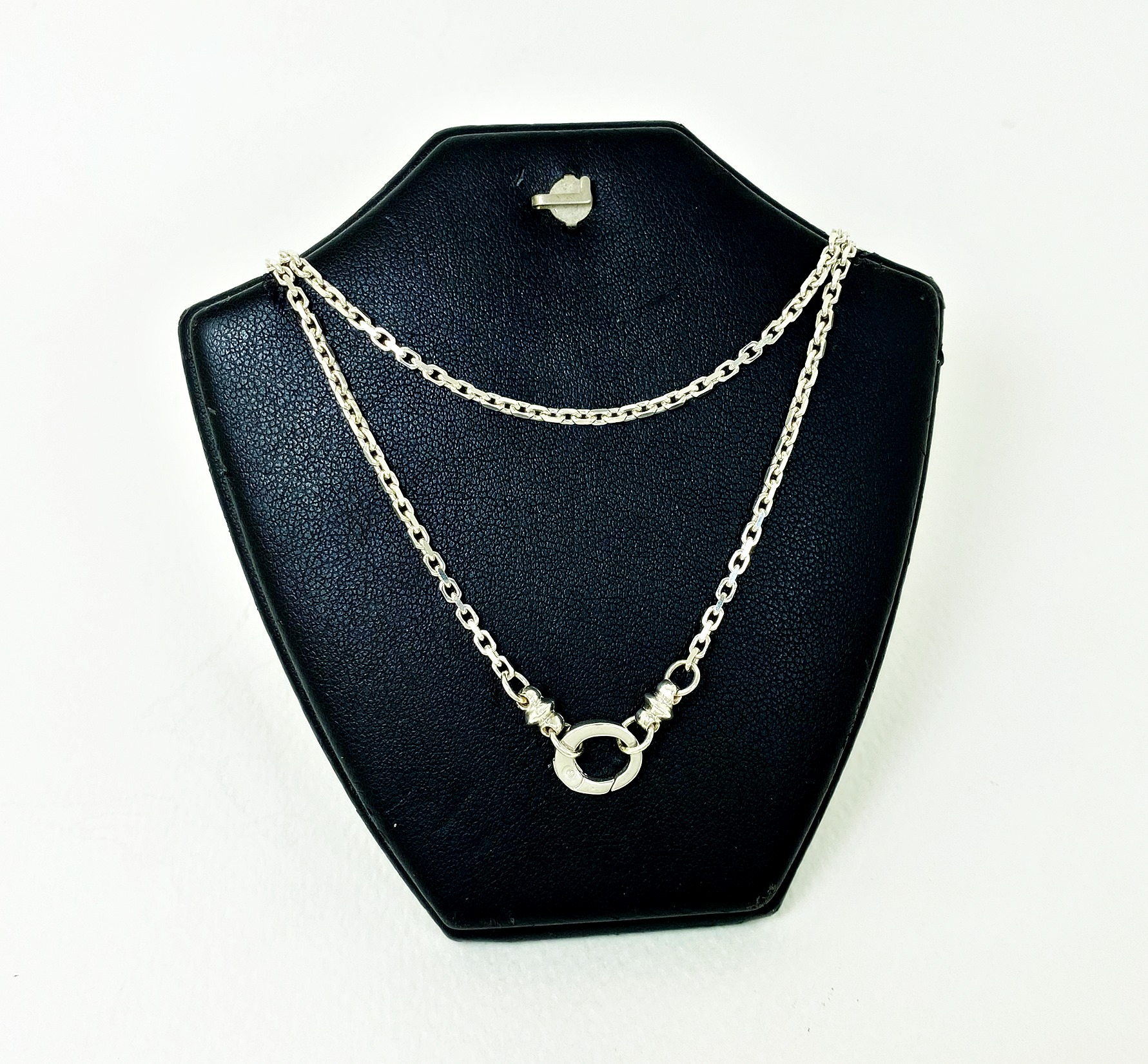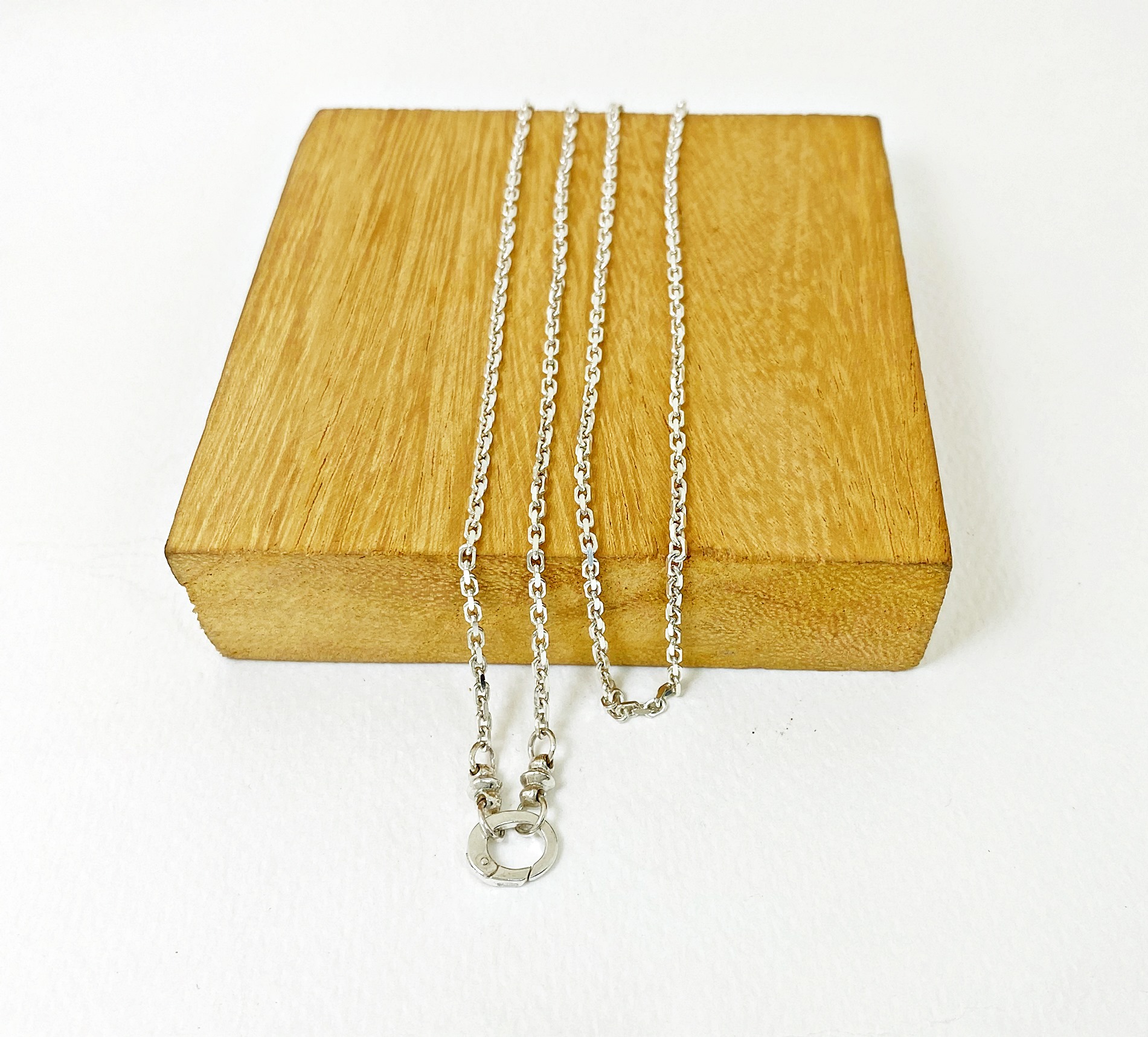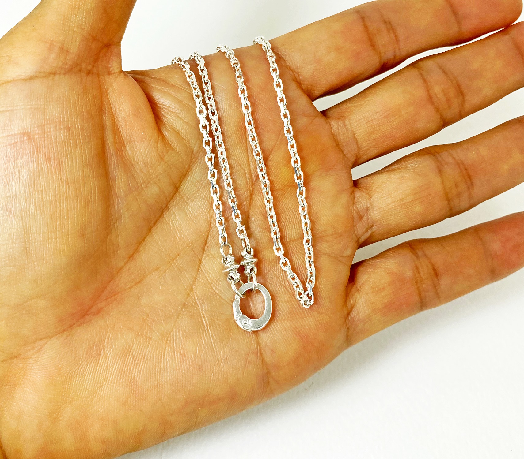 The cute oval connector clasp square chain necklace is 925 sterling silver with handmade unisex necklace designed and made by Sup Silver.