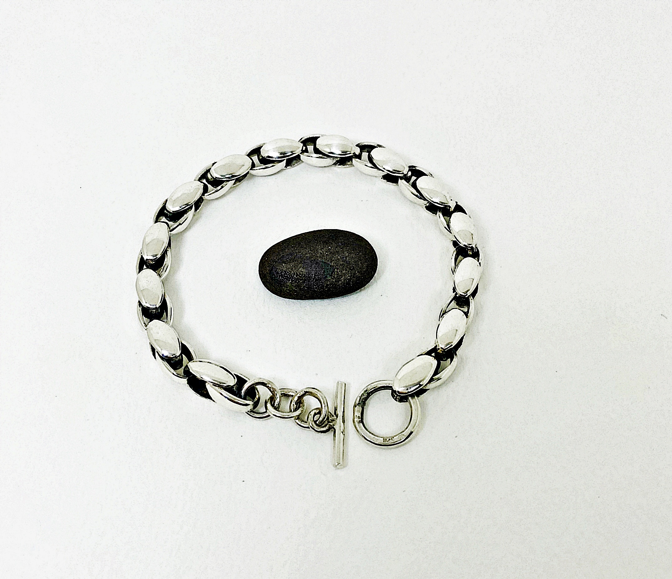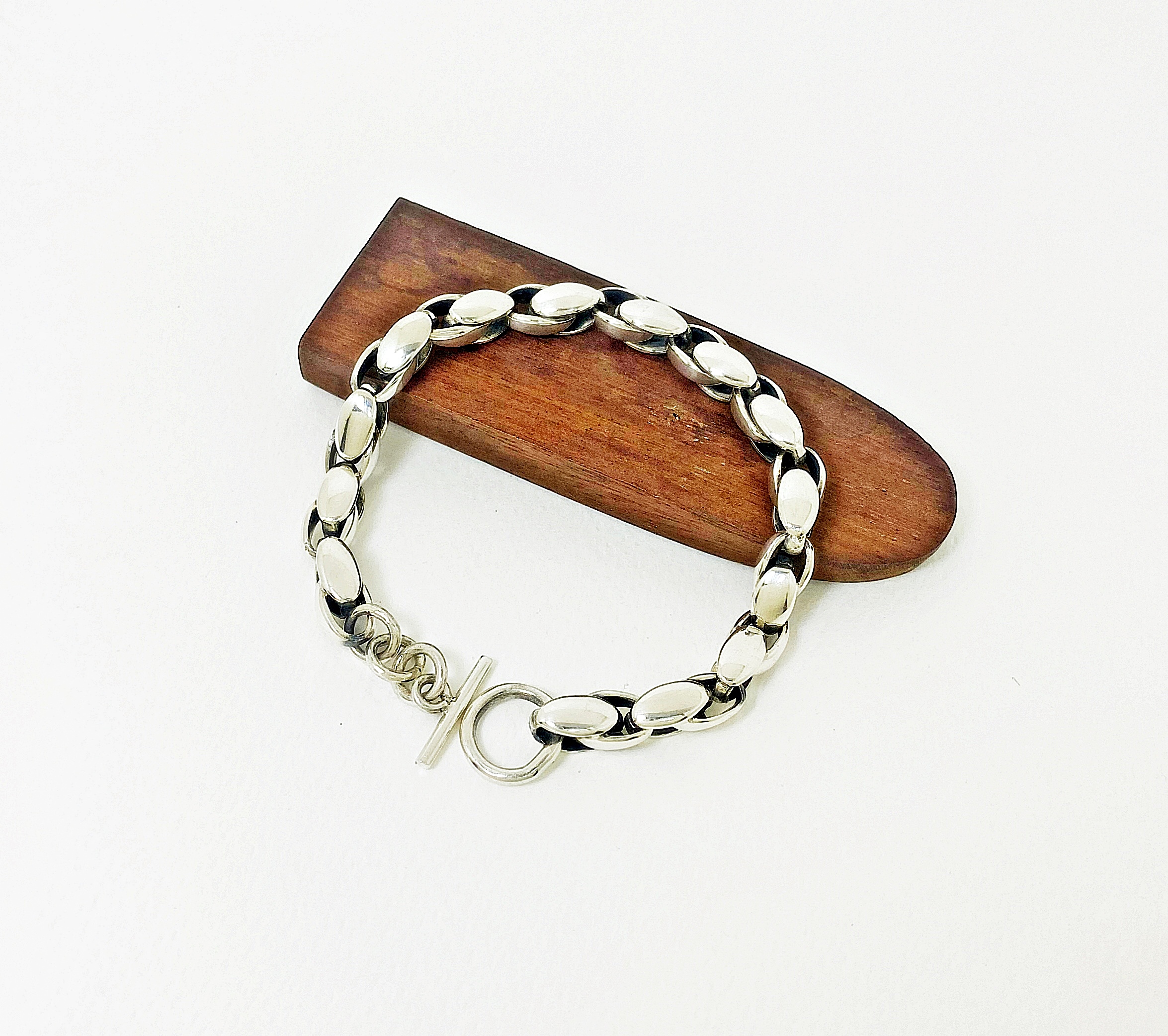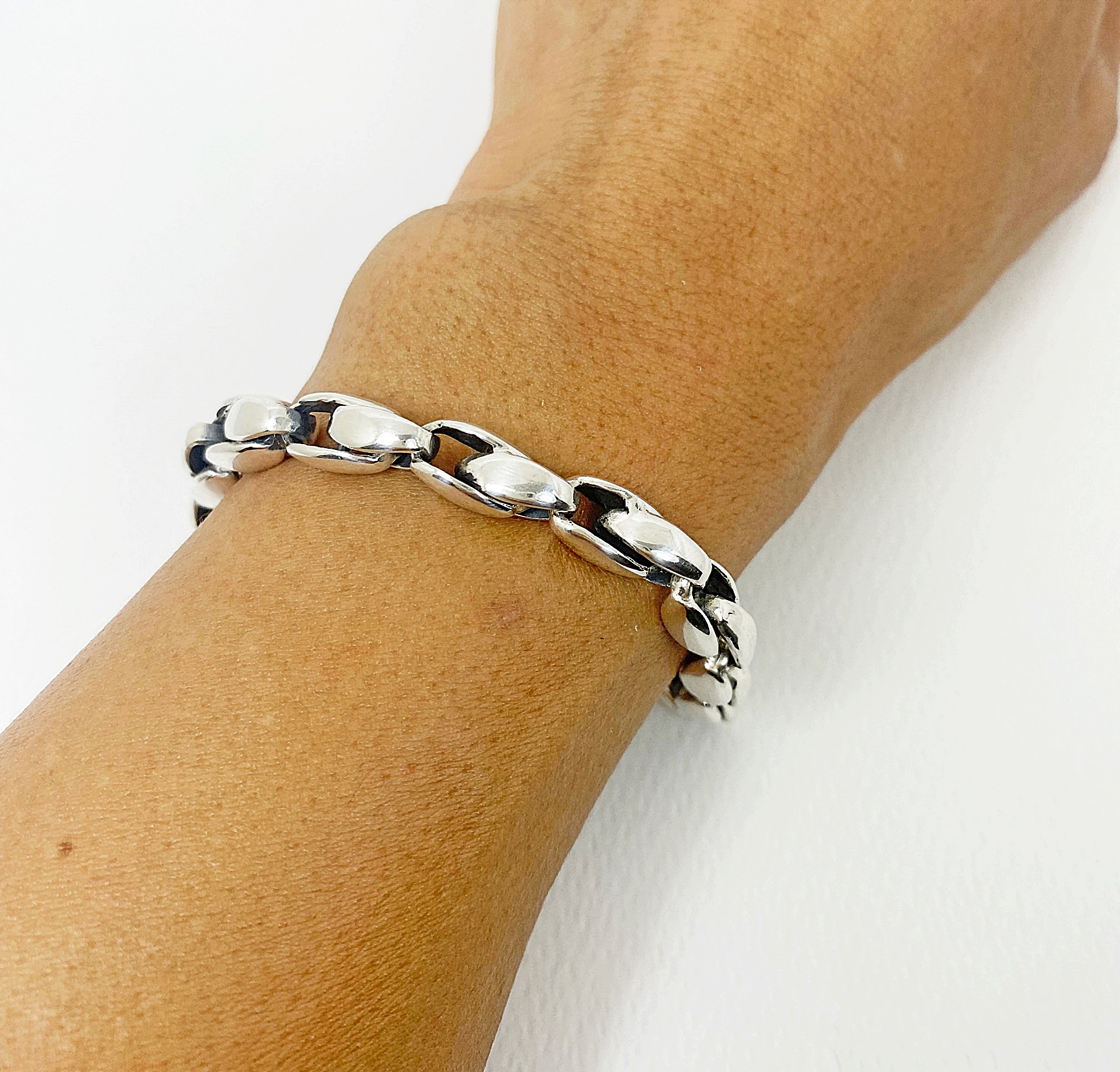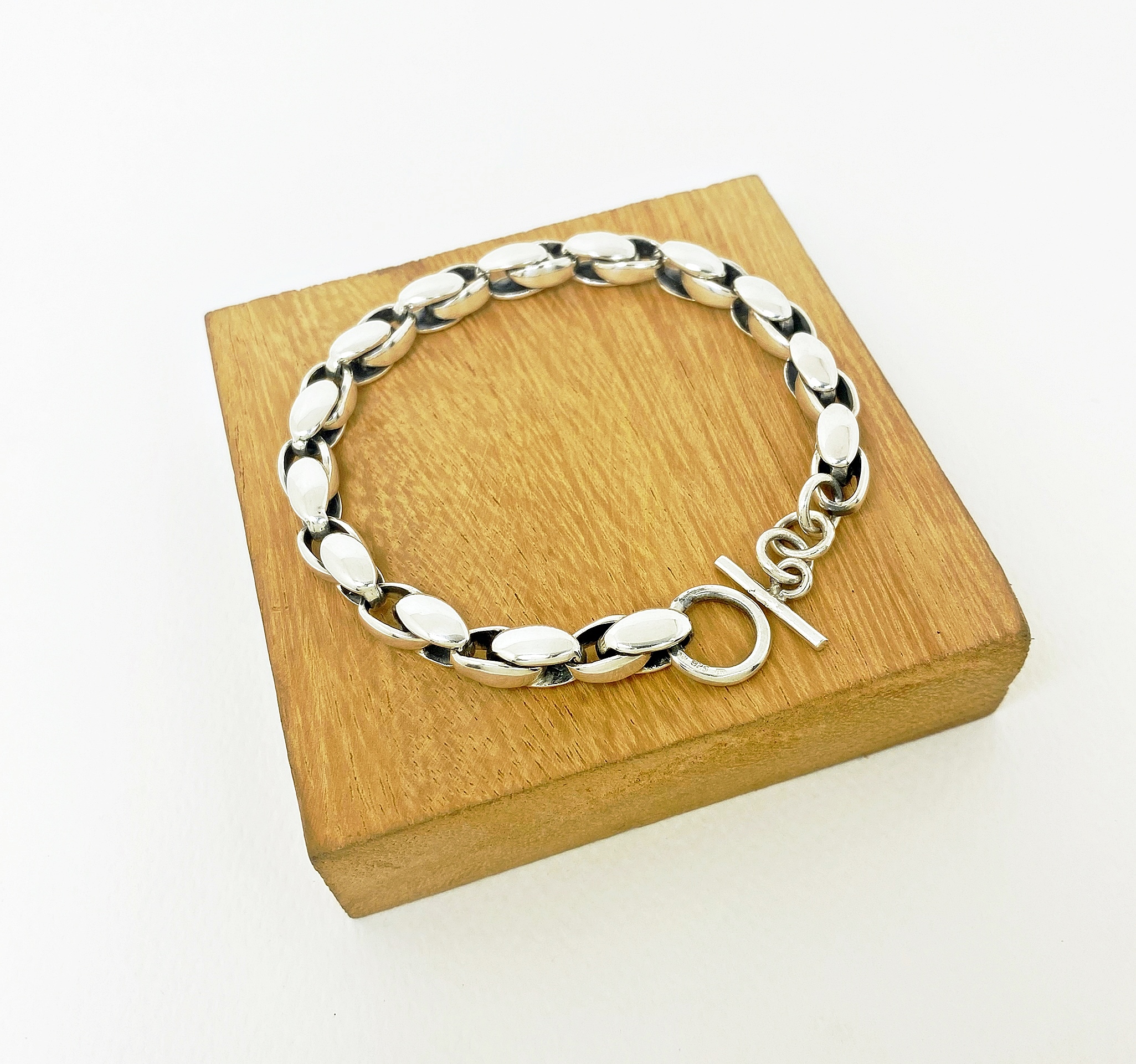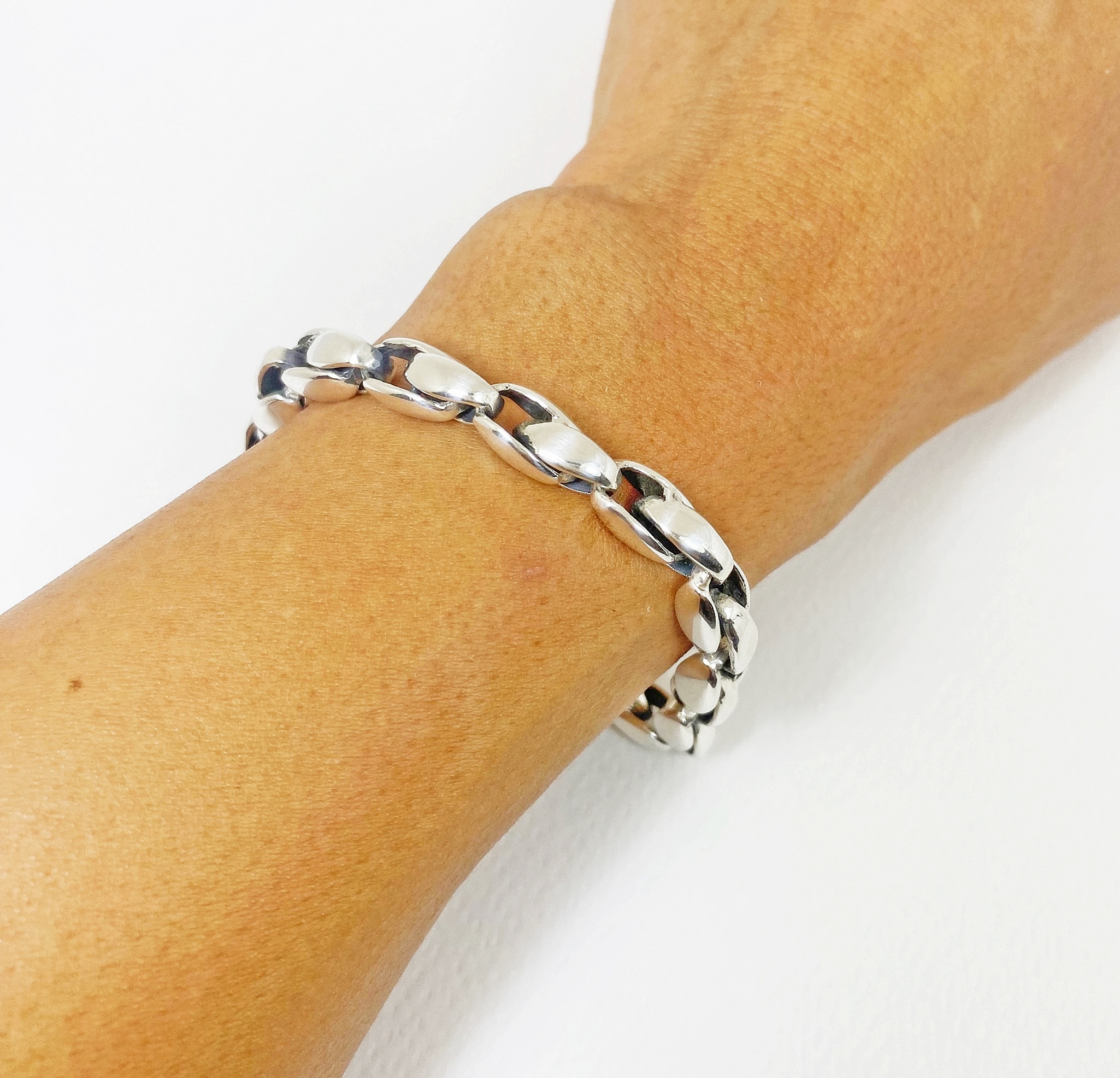 The cool oval parallel four sides link bracelet is 925 sterling silver with handmade men bracelet designed and made by Sup Silver.