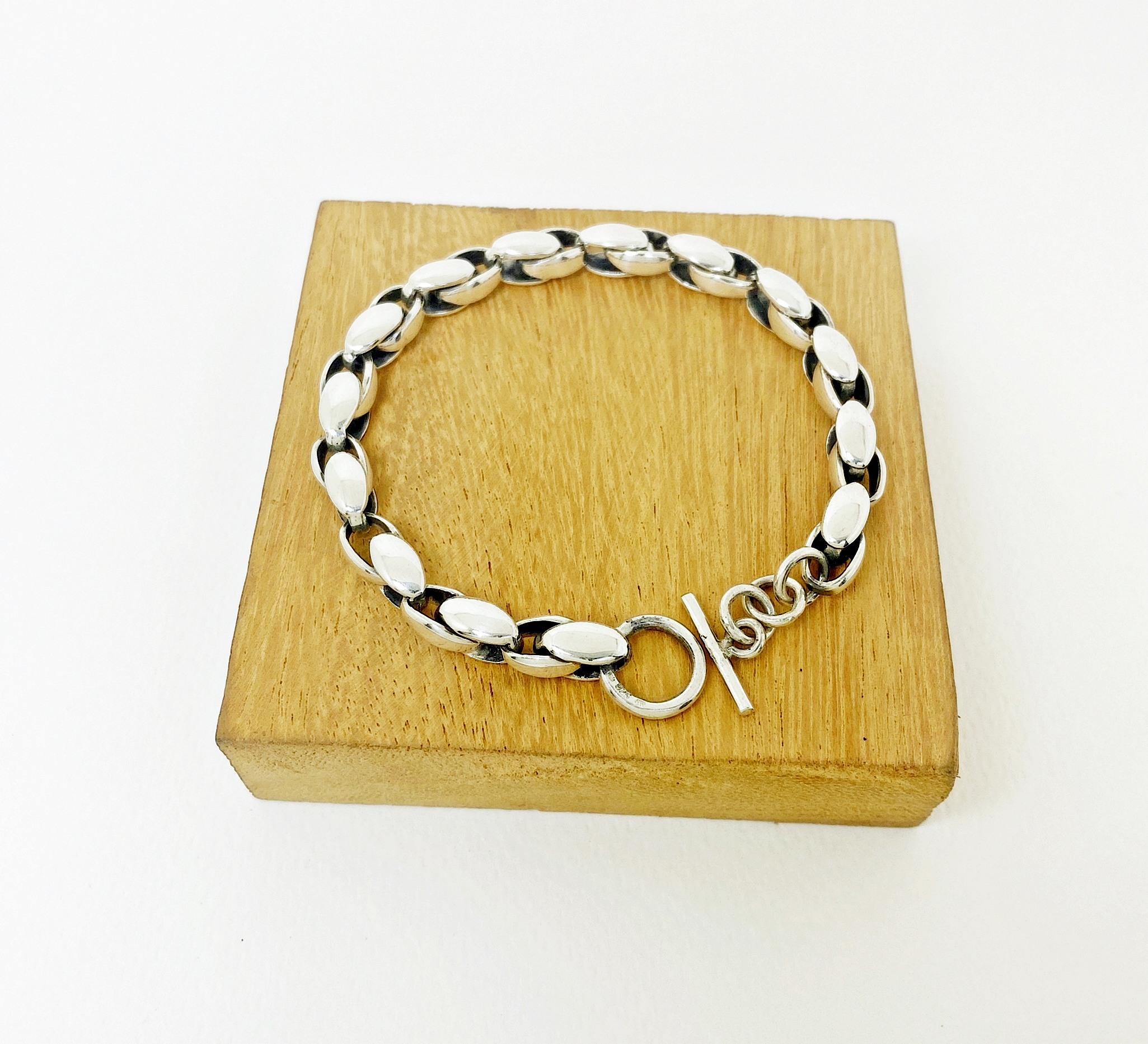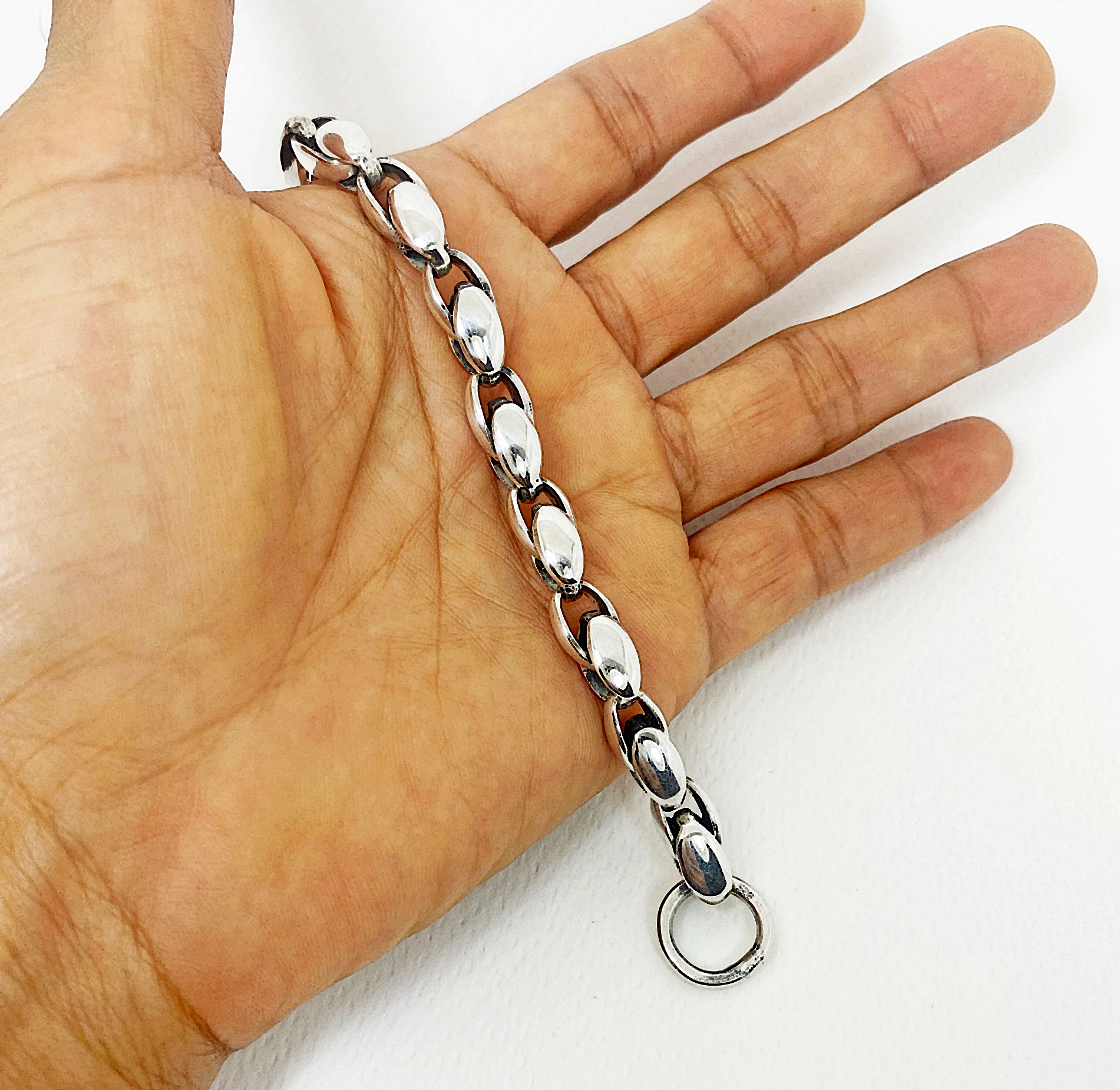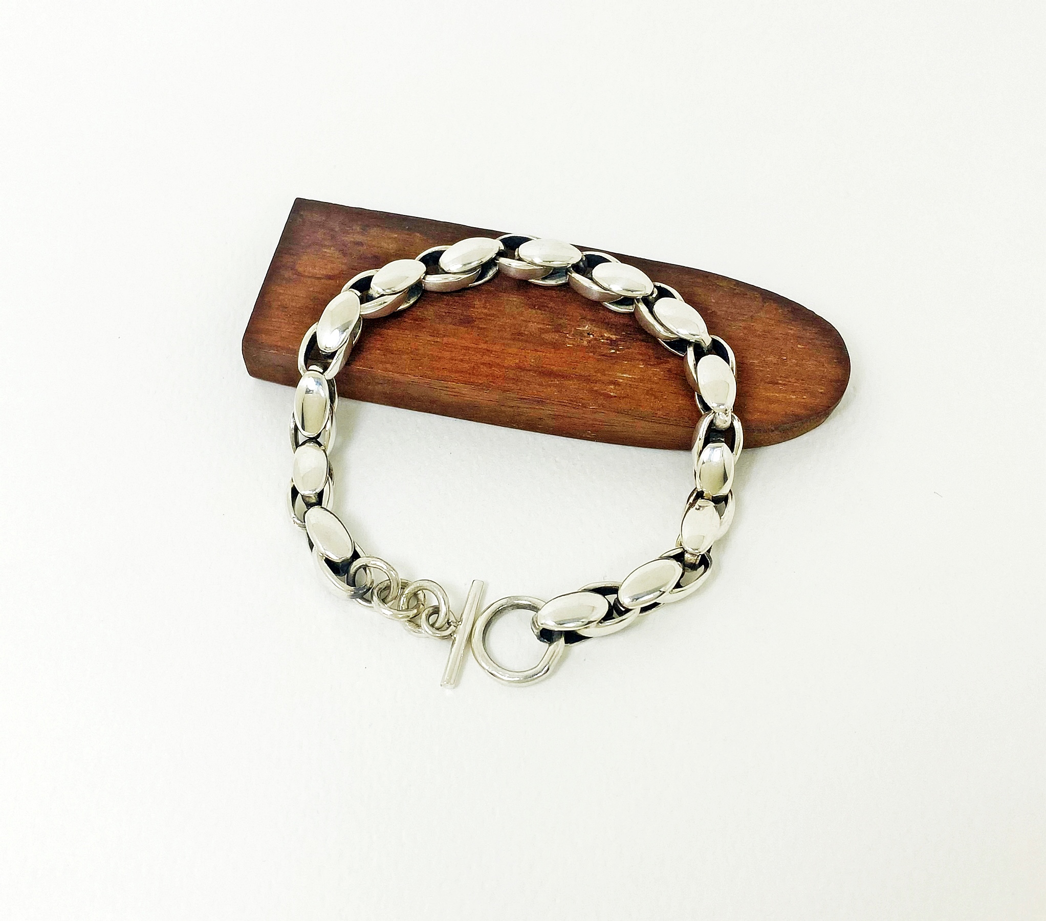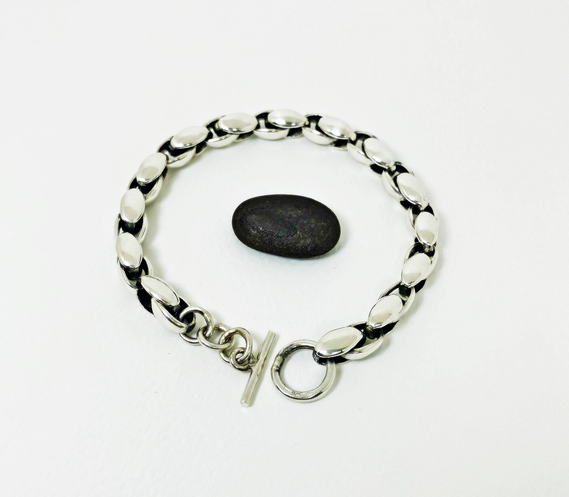 The cool oval parallel four sides link bracelet is 925 sterling silver with handmade men bracelet designed and made by Sup Silver.