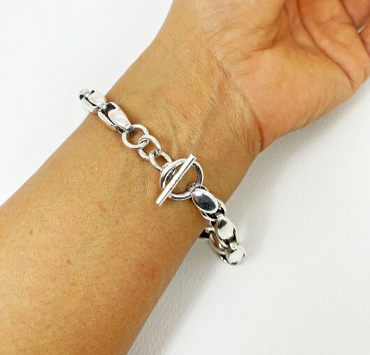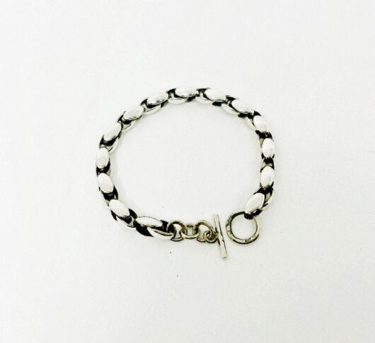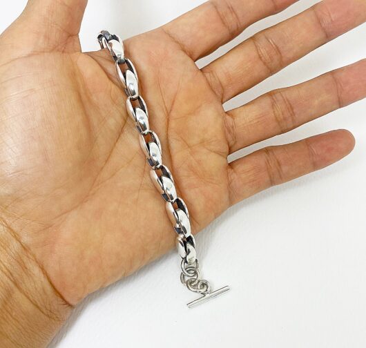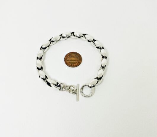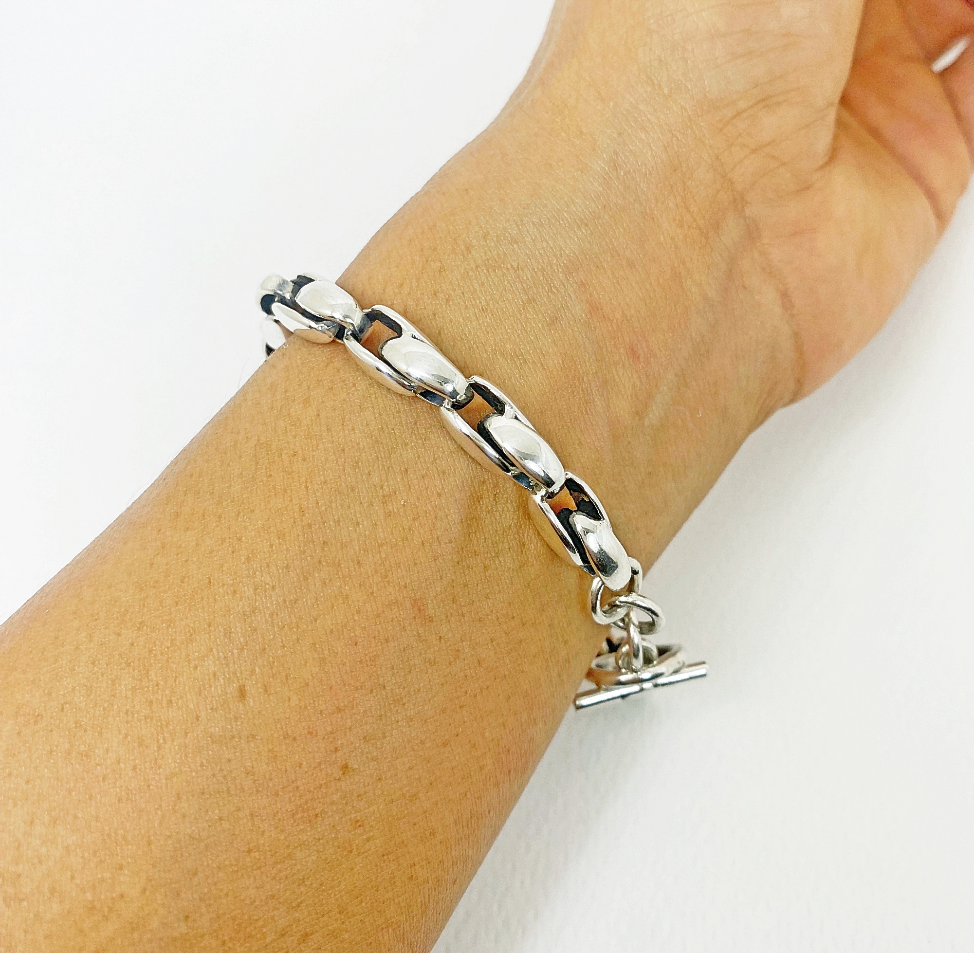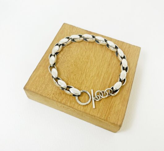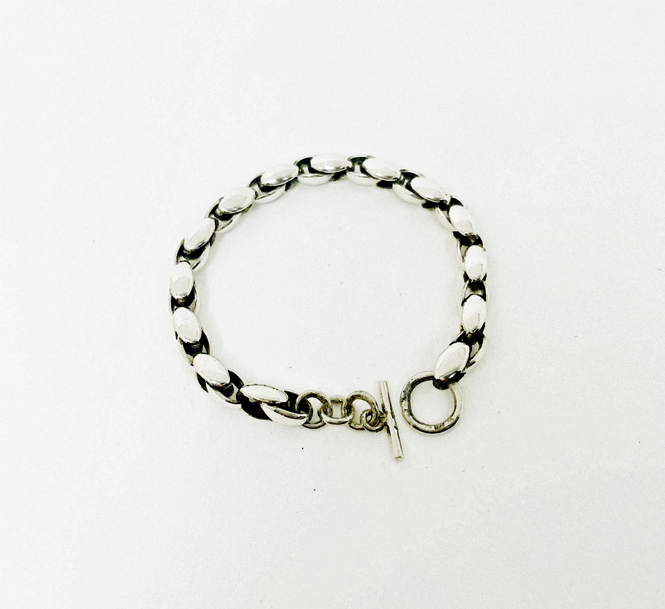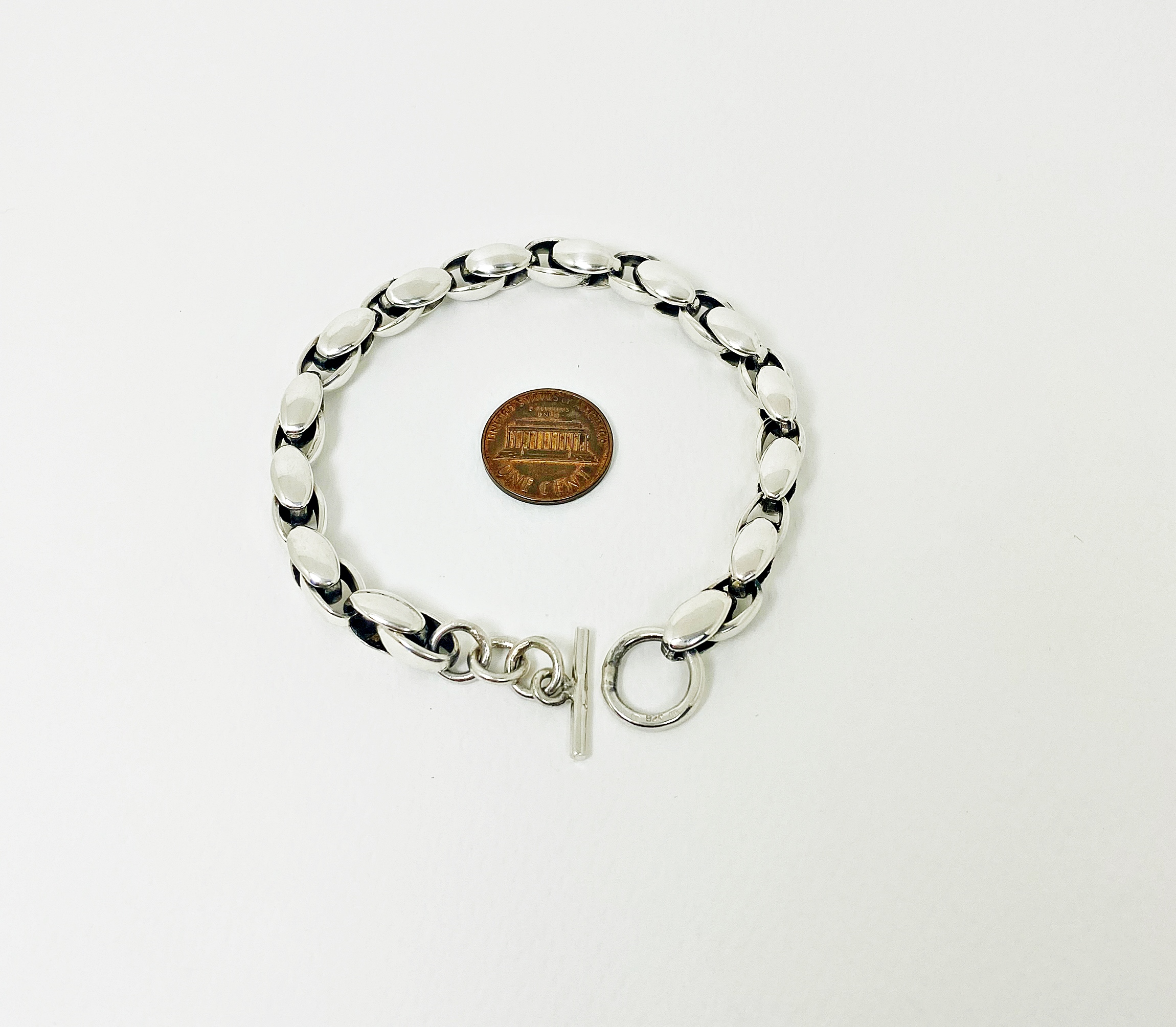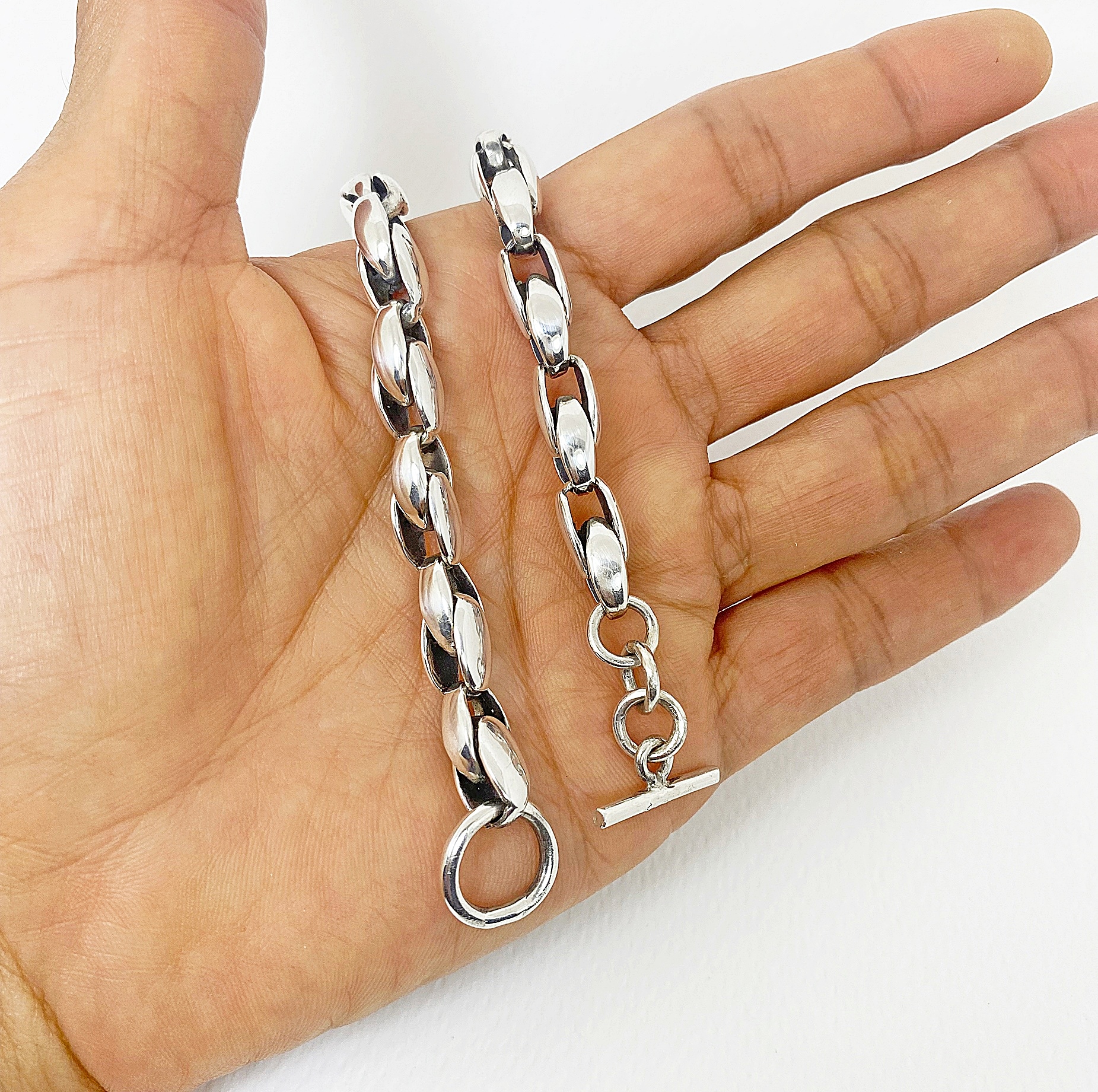 The cool oval parallel four sides link bracelet is 925 sterling silver with handmade men bracelet designed and made by Sup Silver.