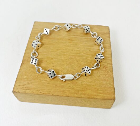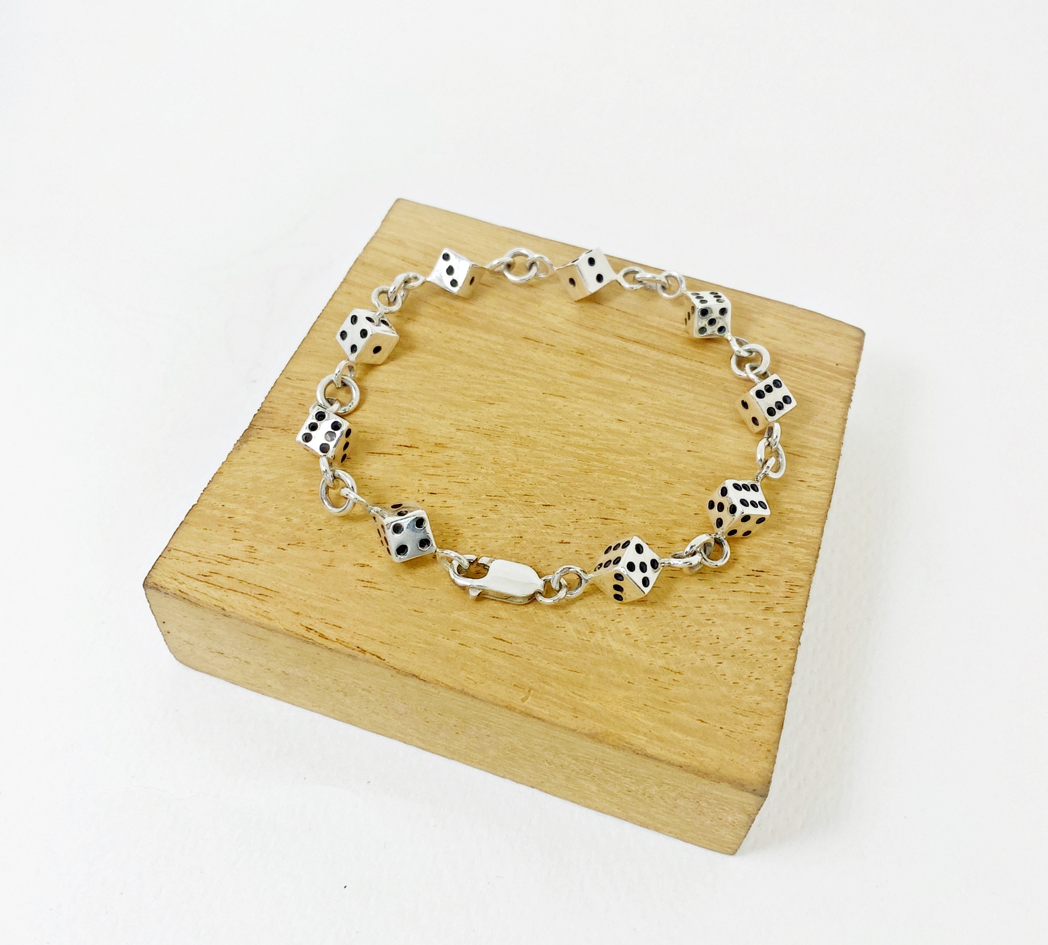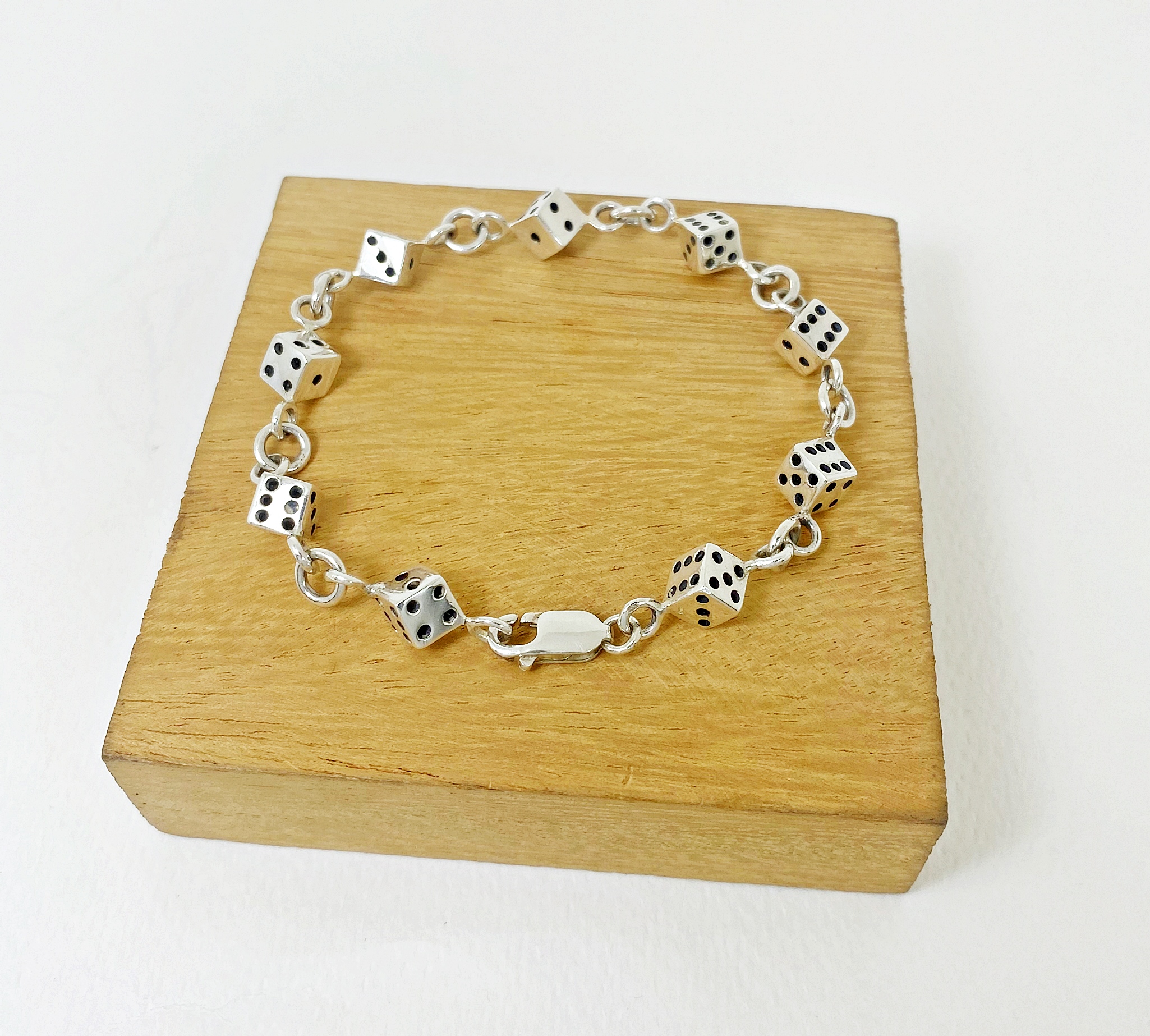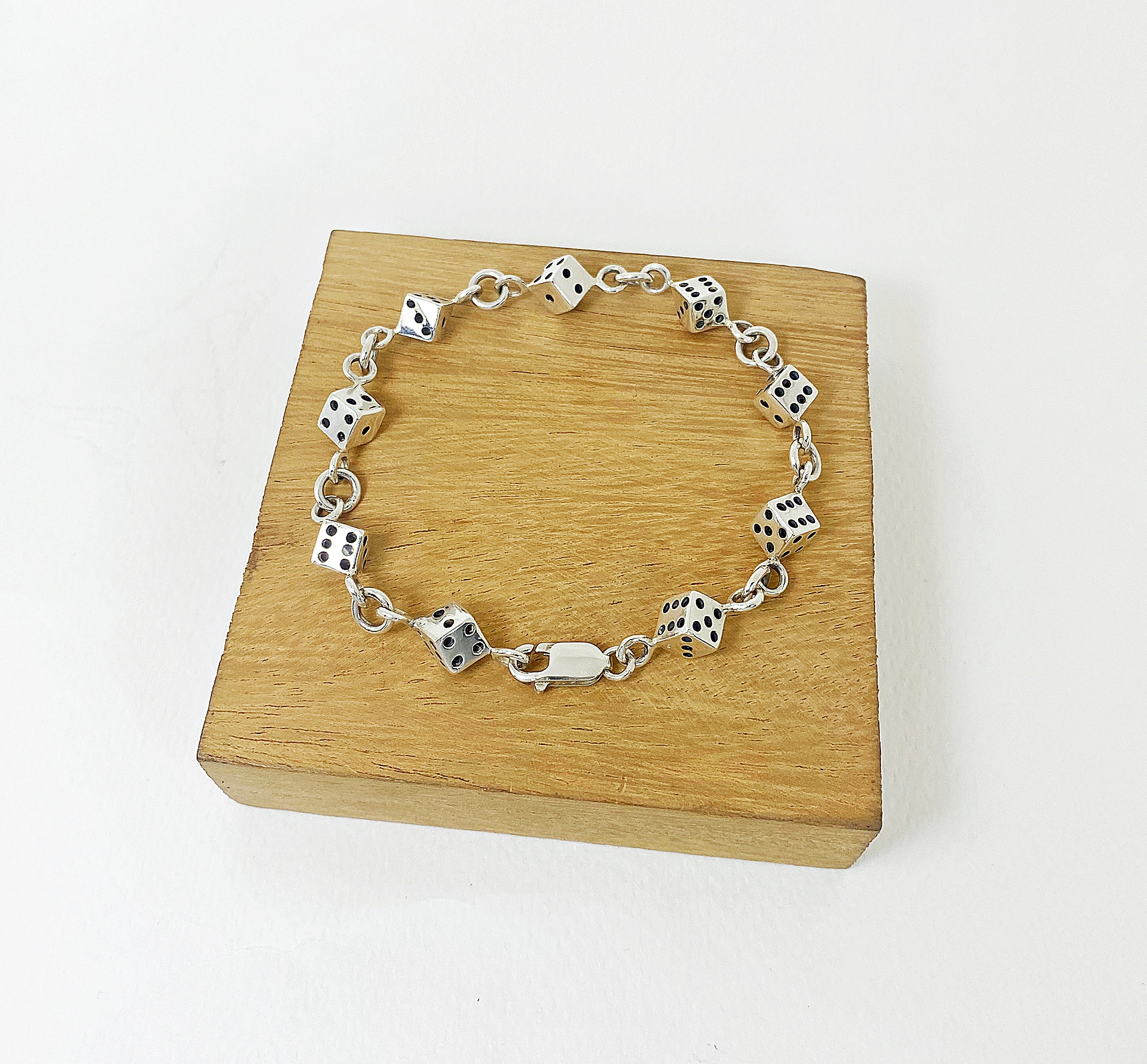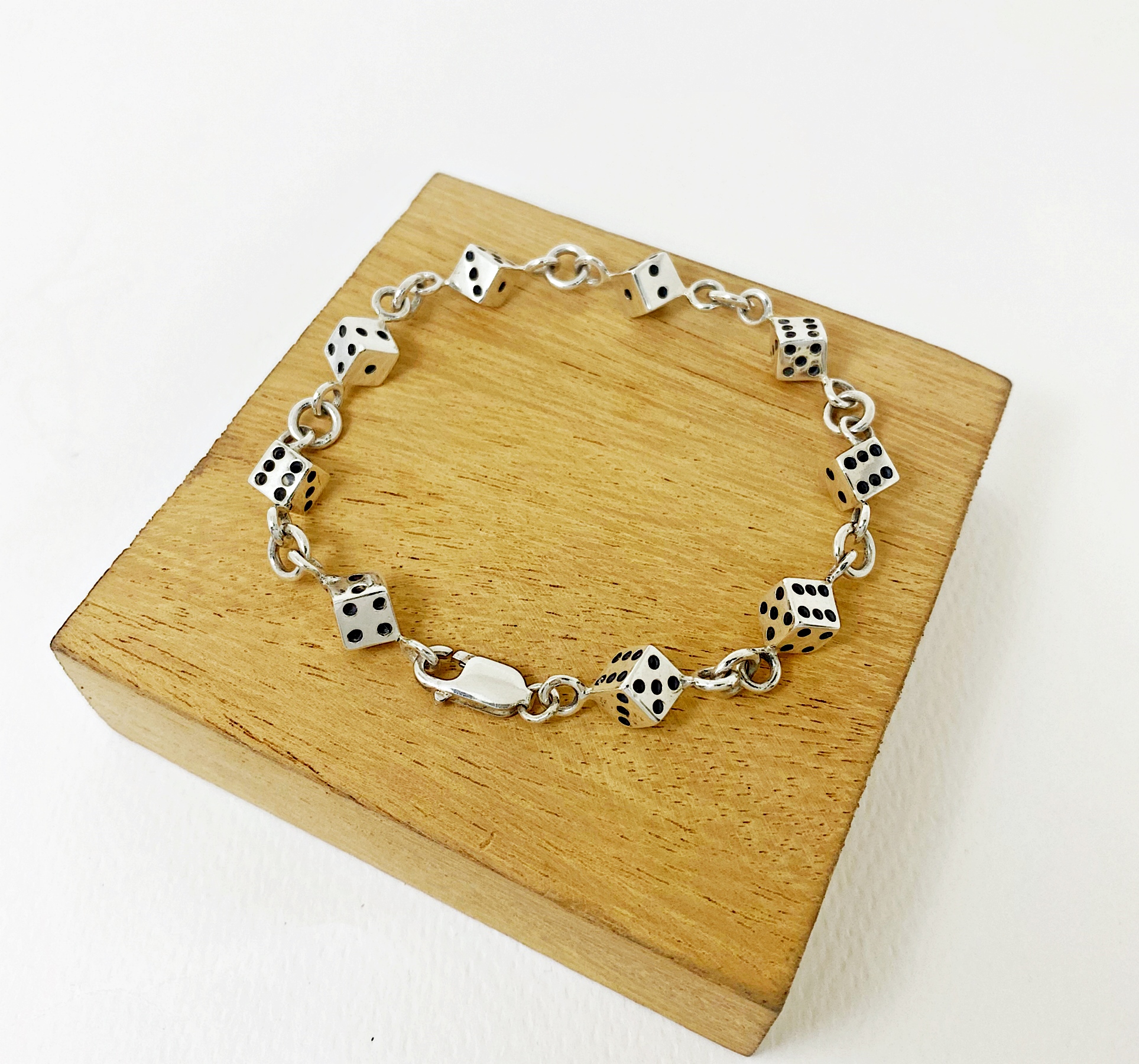 The cute solid textured dice bracelet is 925 sterling silver with handmade cube link bracelet designed and made by Sup Silver.