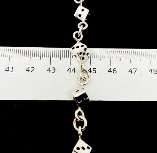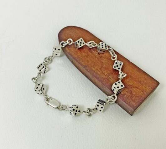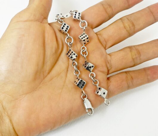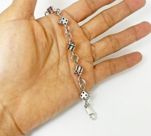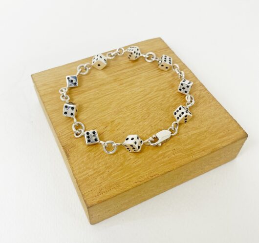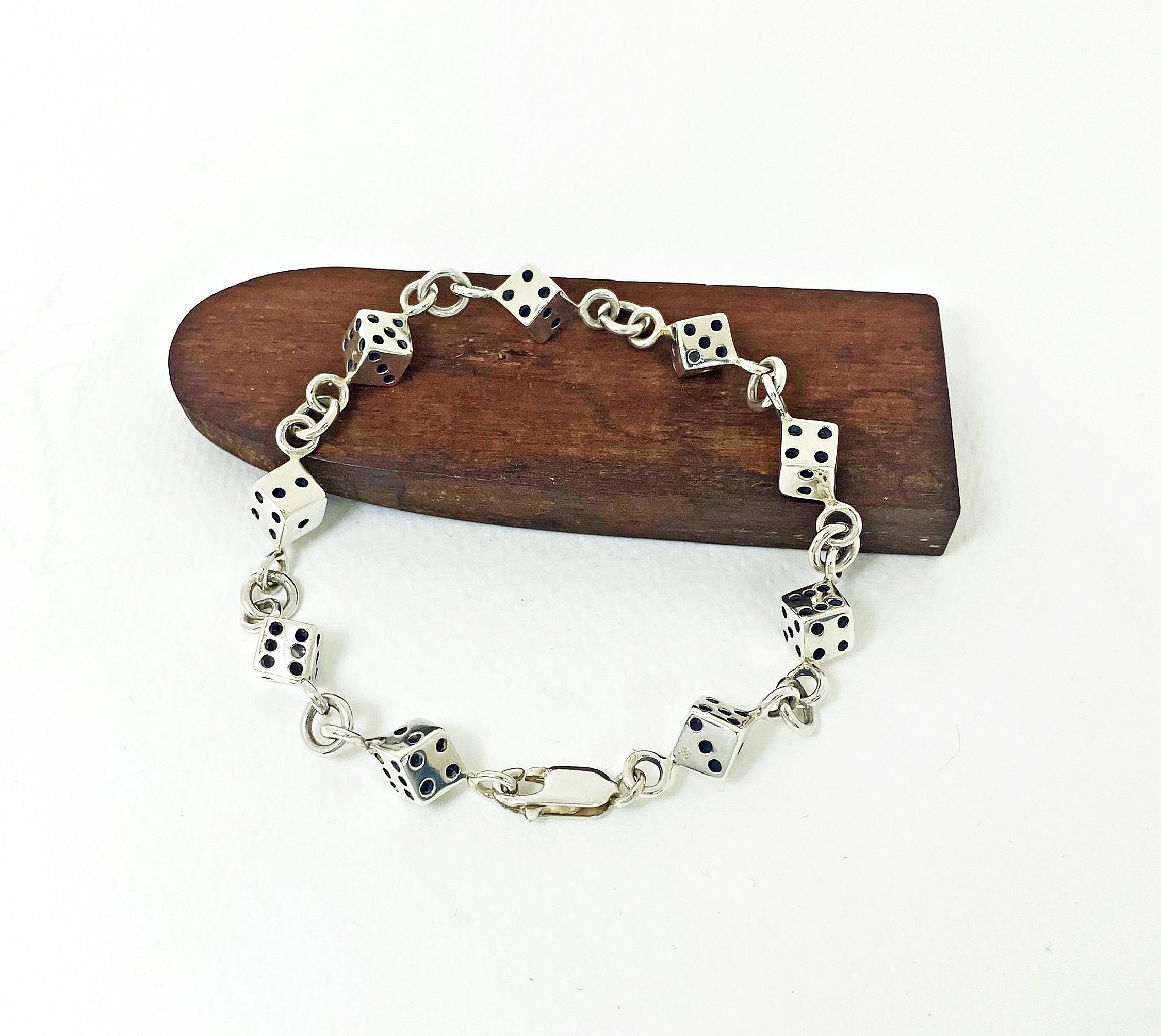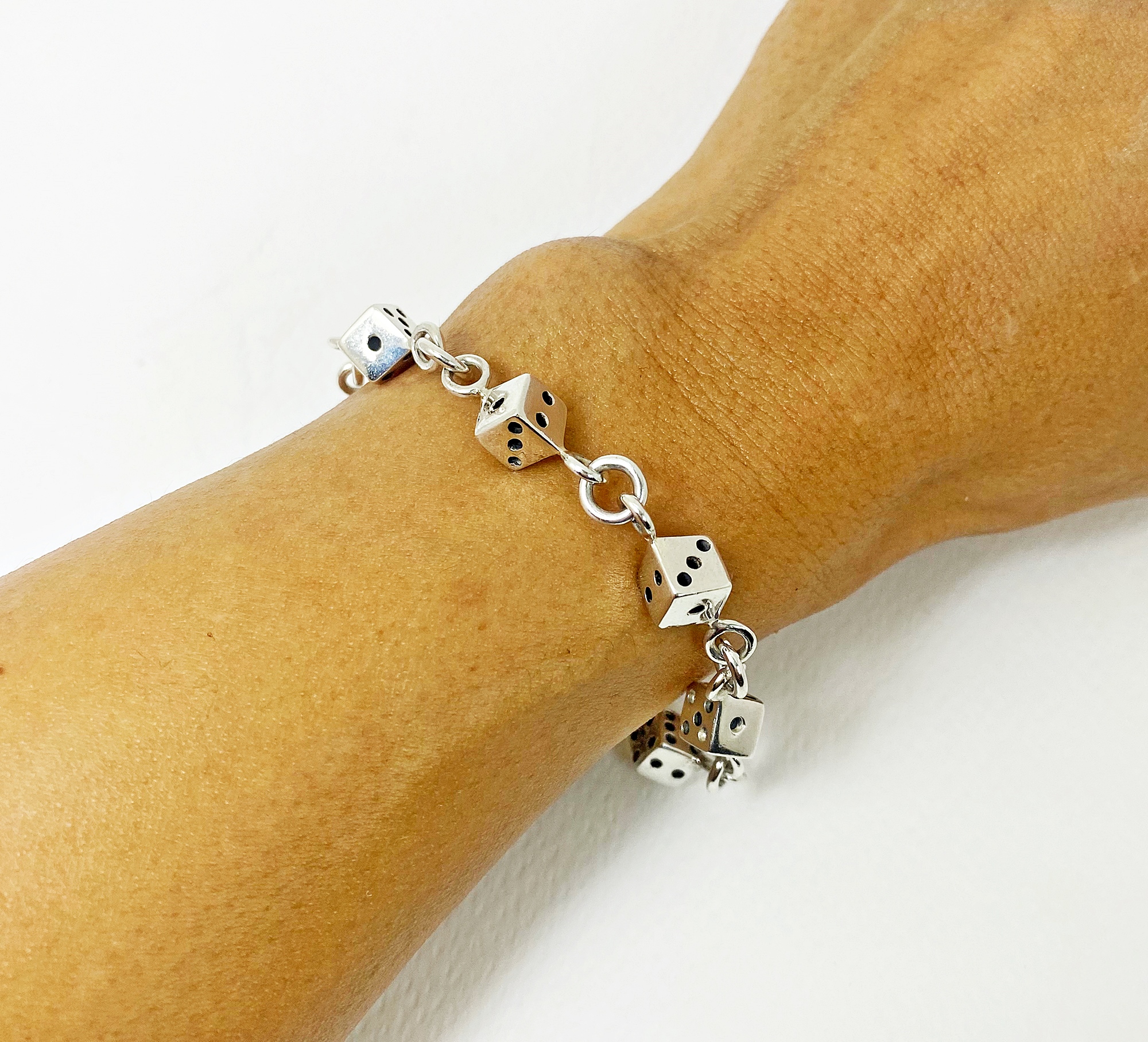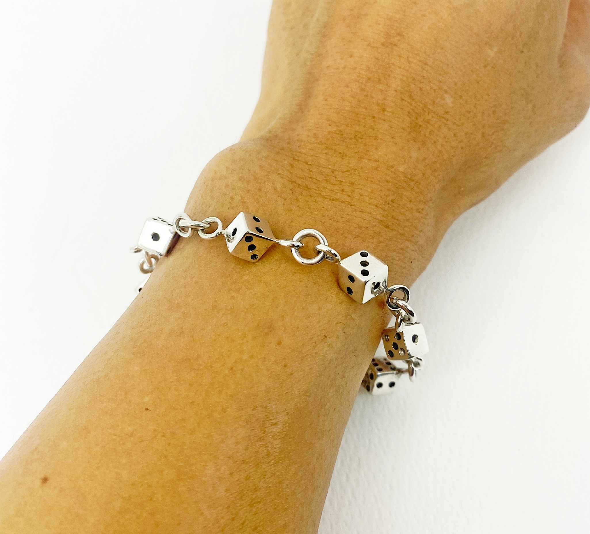 The cute solid textured dice bracelet is 925 sterling silver with handmade cube link bracelet designed and made by Sup Silver.