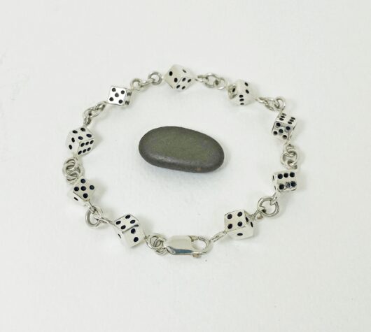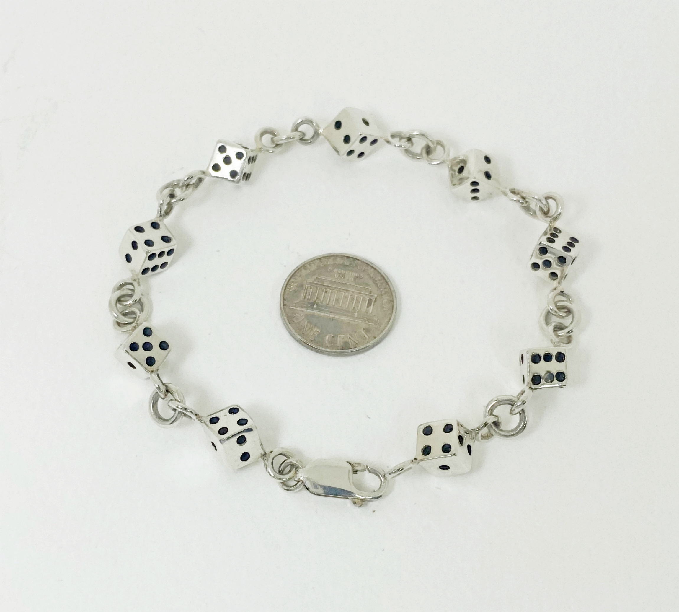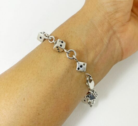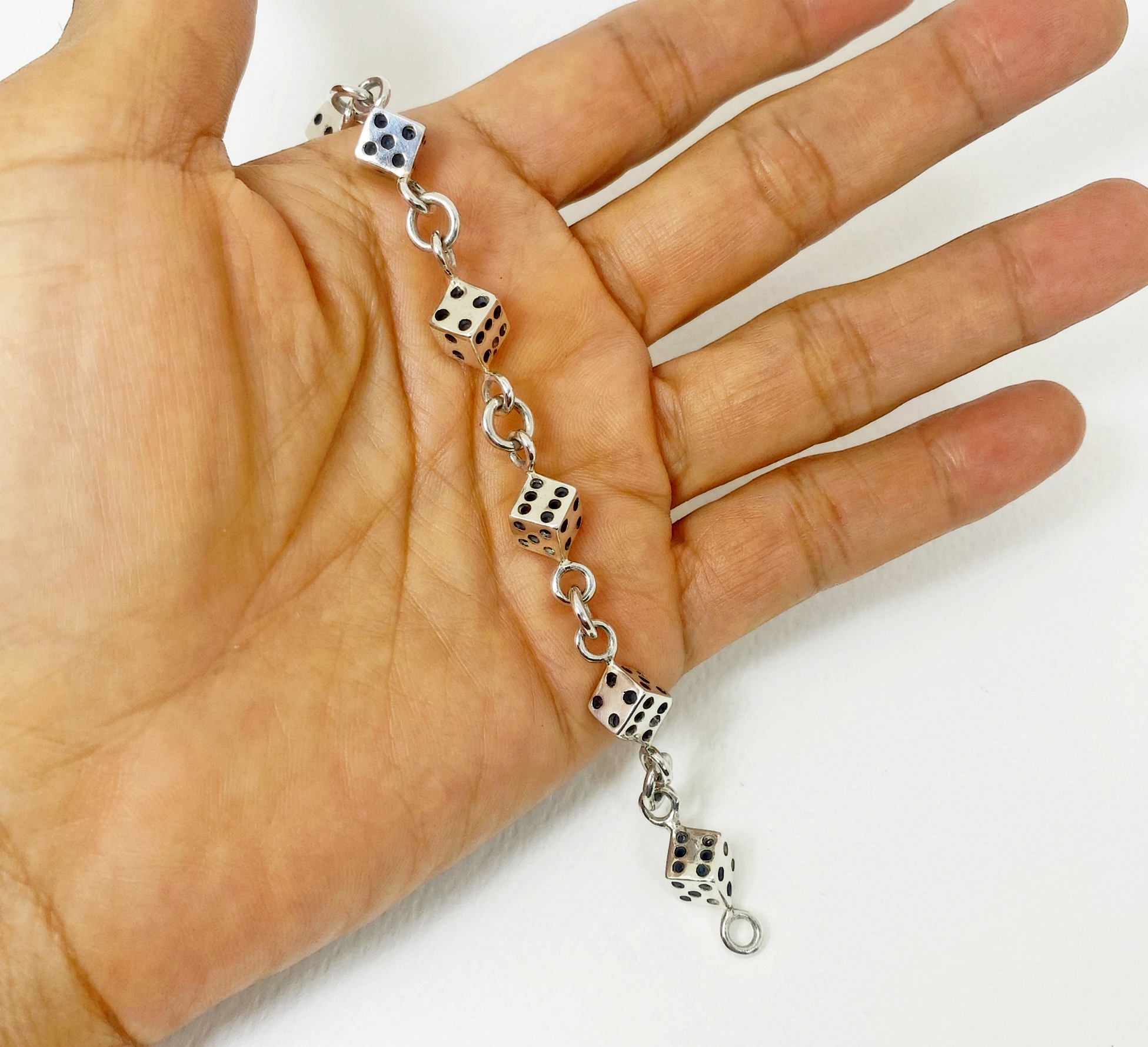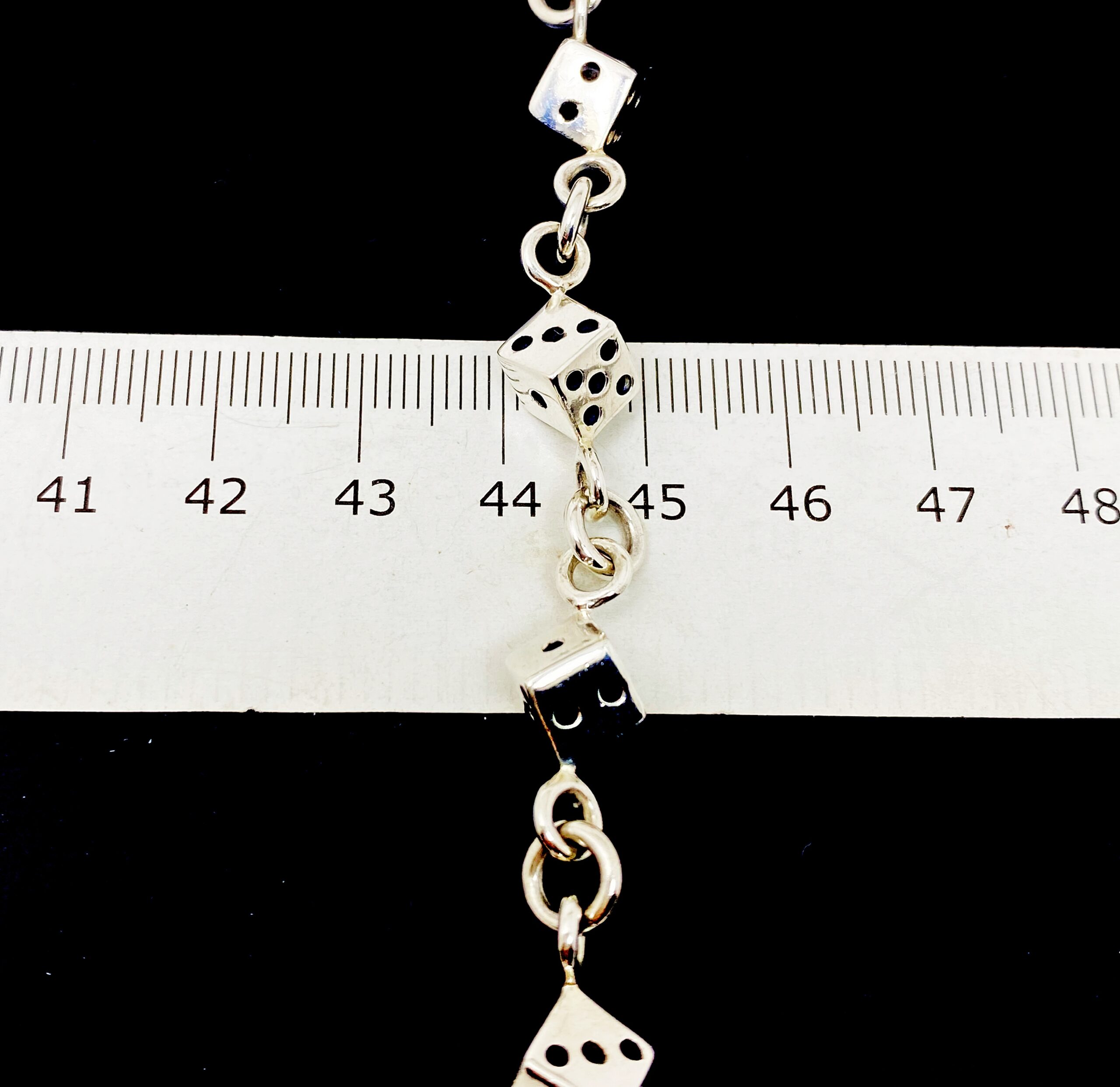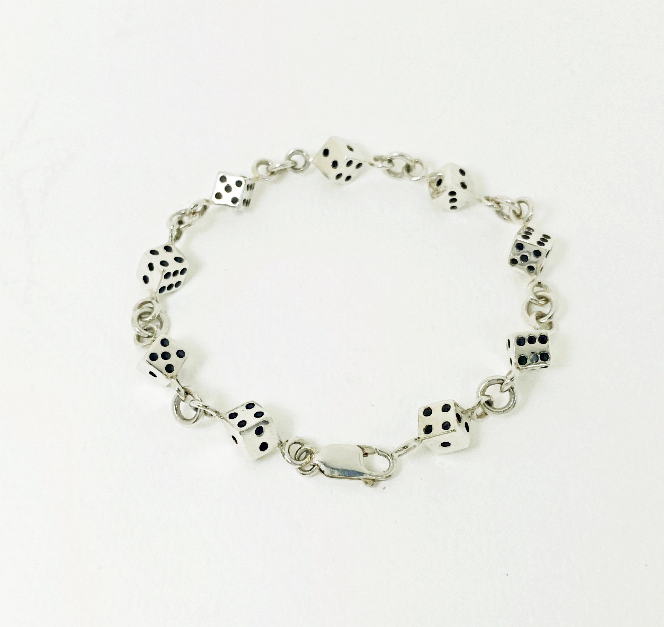 The cute solid textured dice bracelet is 925 sterling silver with handmade cube link bracelet designed and made by Sup Silver.