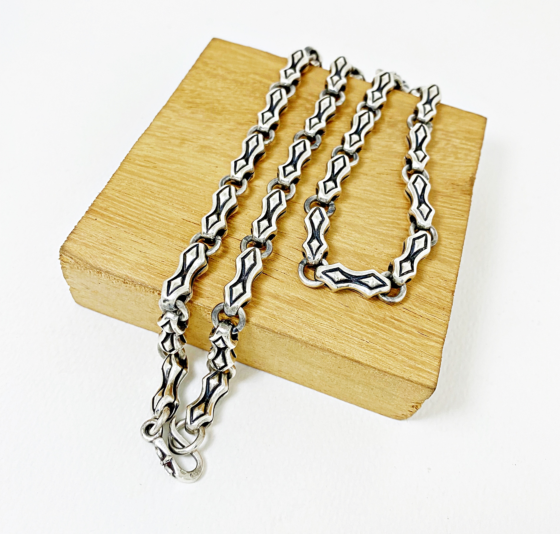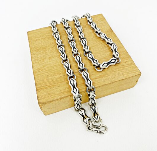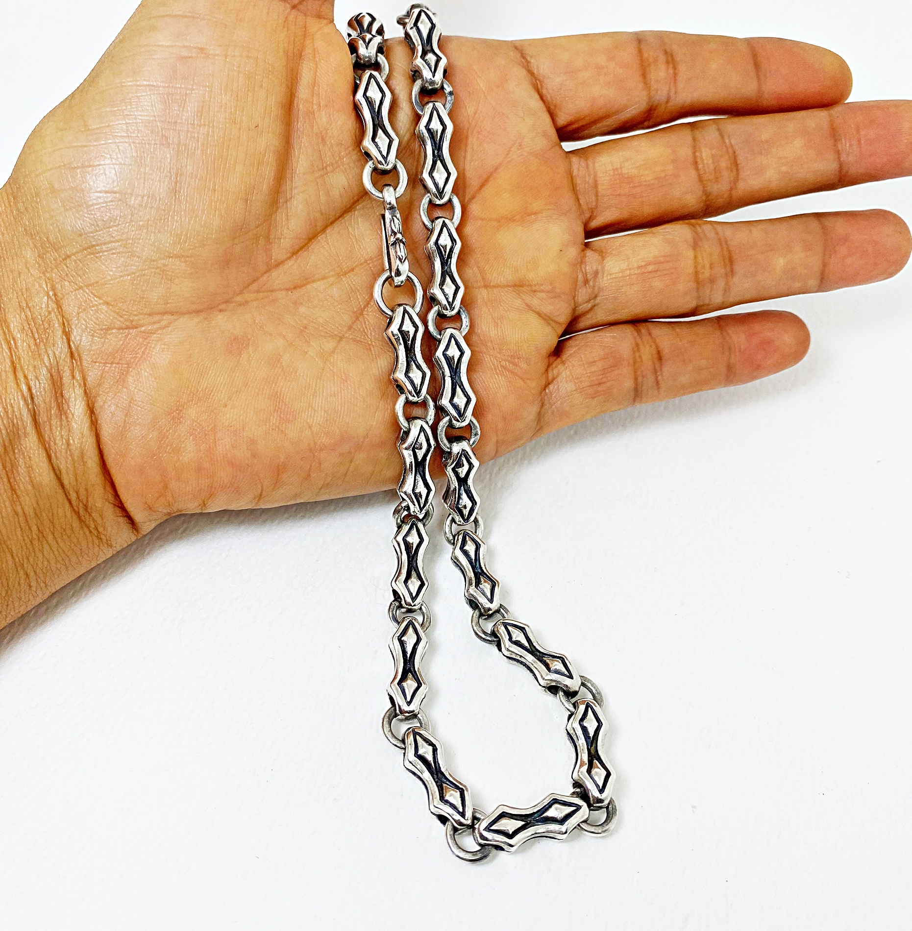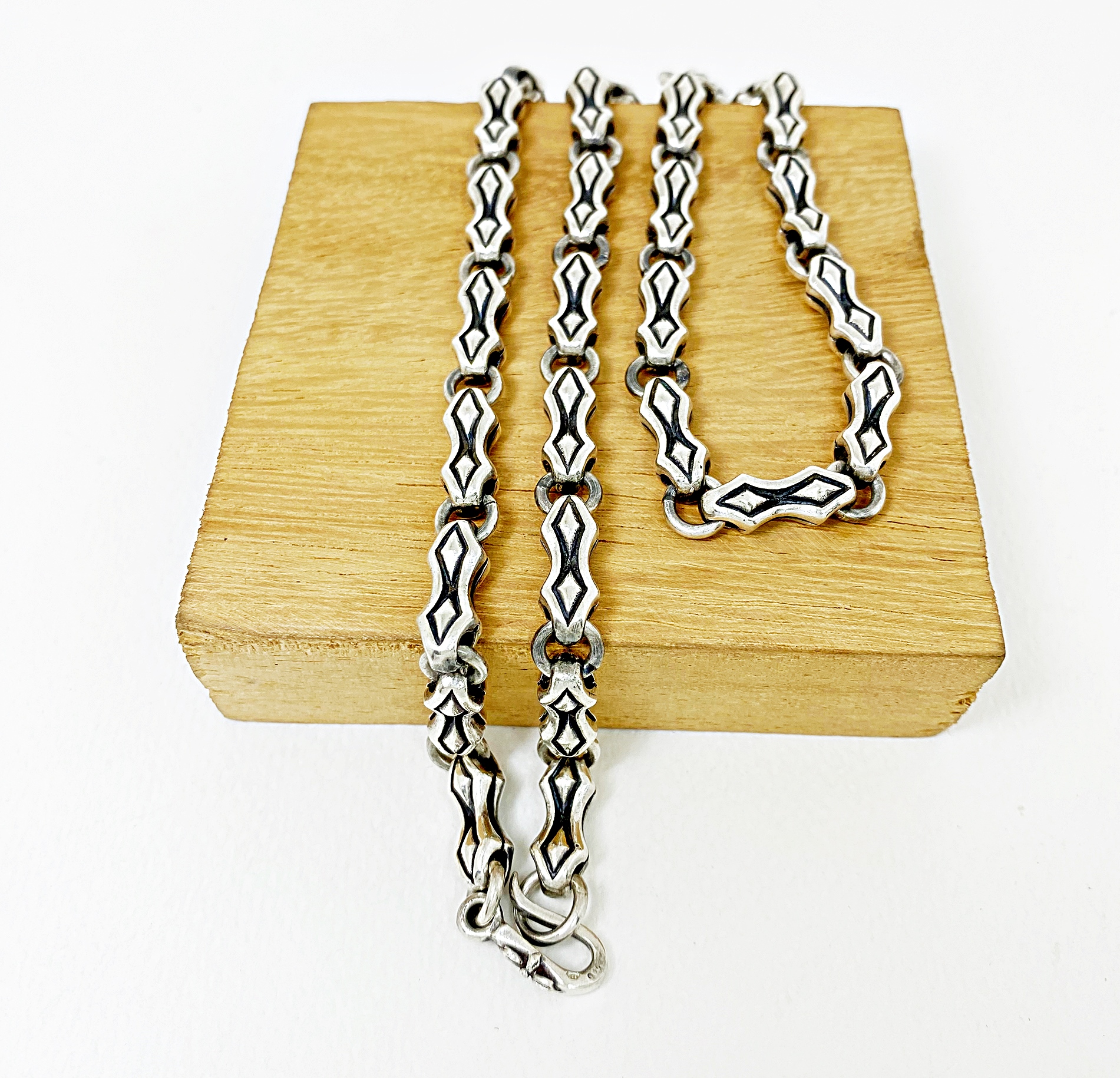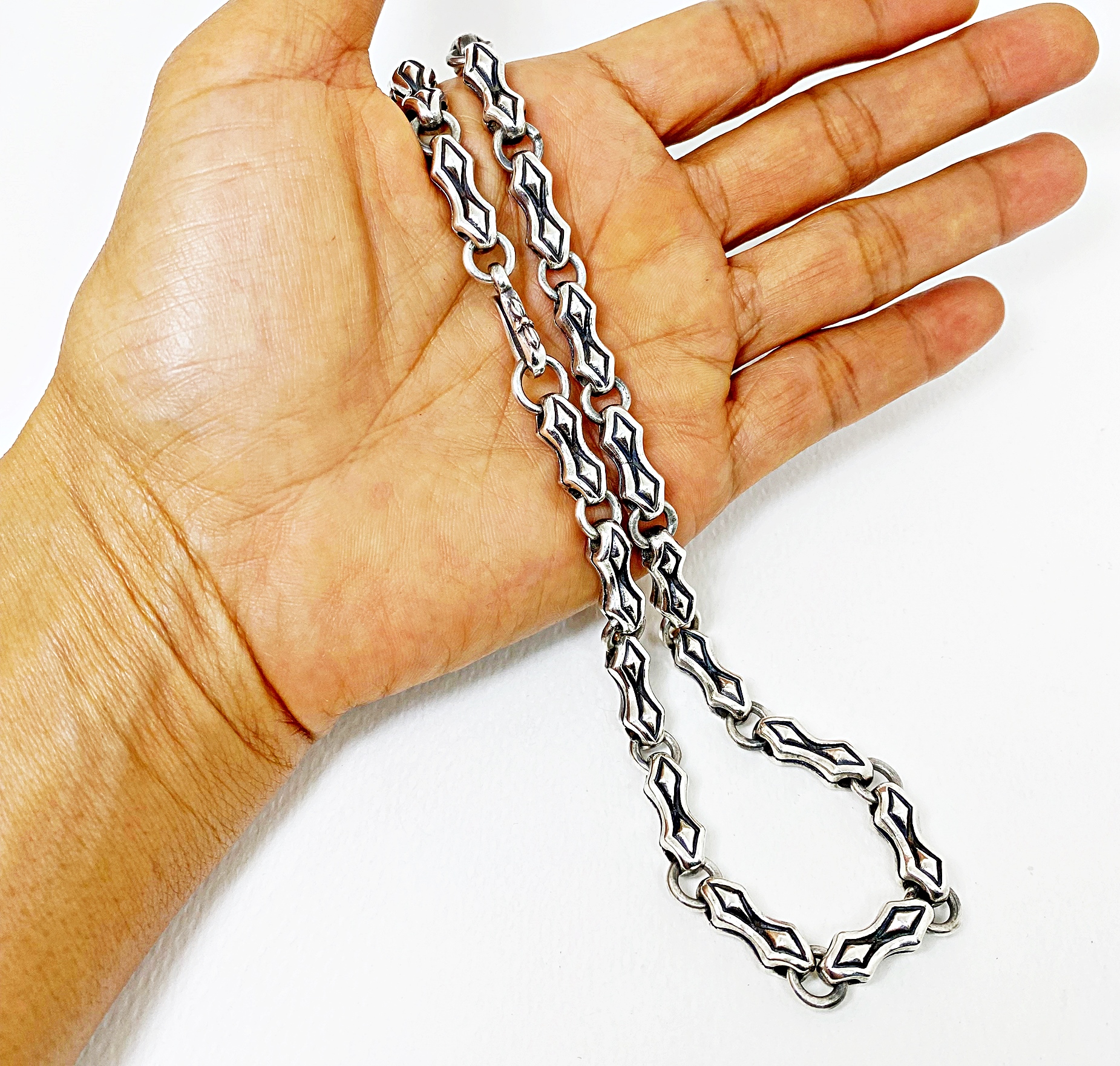 The chunky textured peanut shaped necklace is 925 sterling silver with handmade men chain designed and made by Sup Silver.