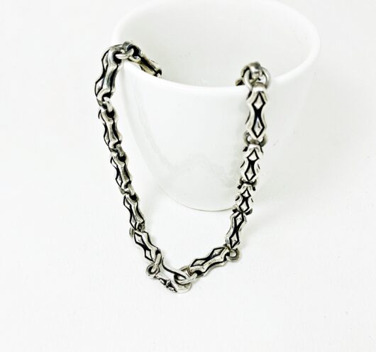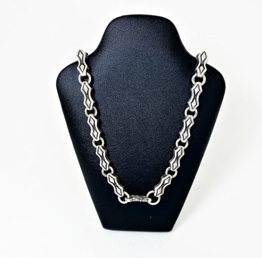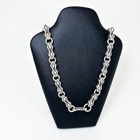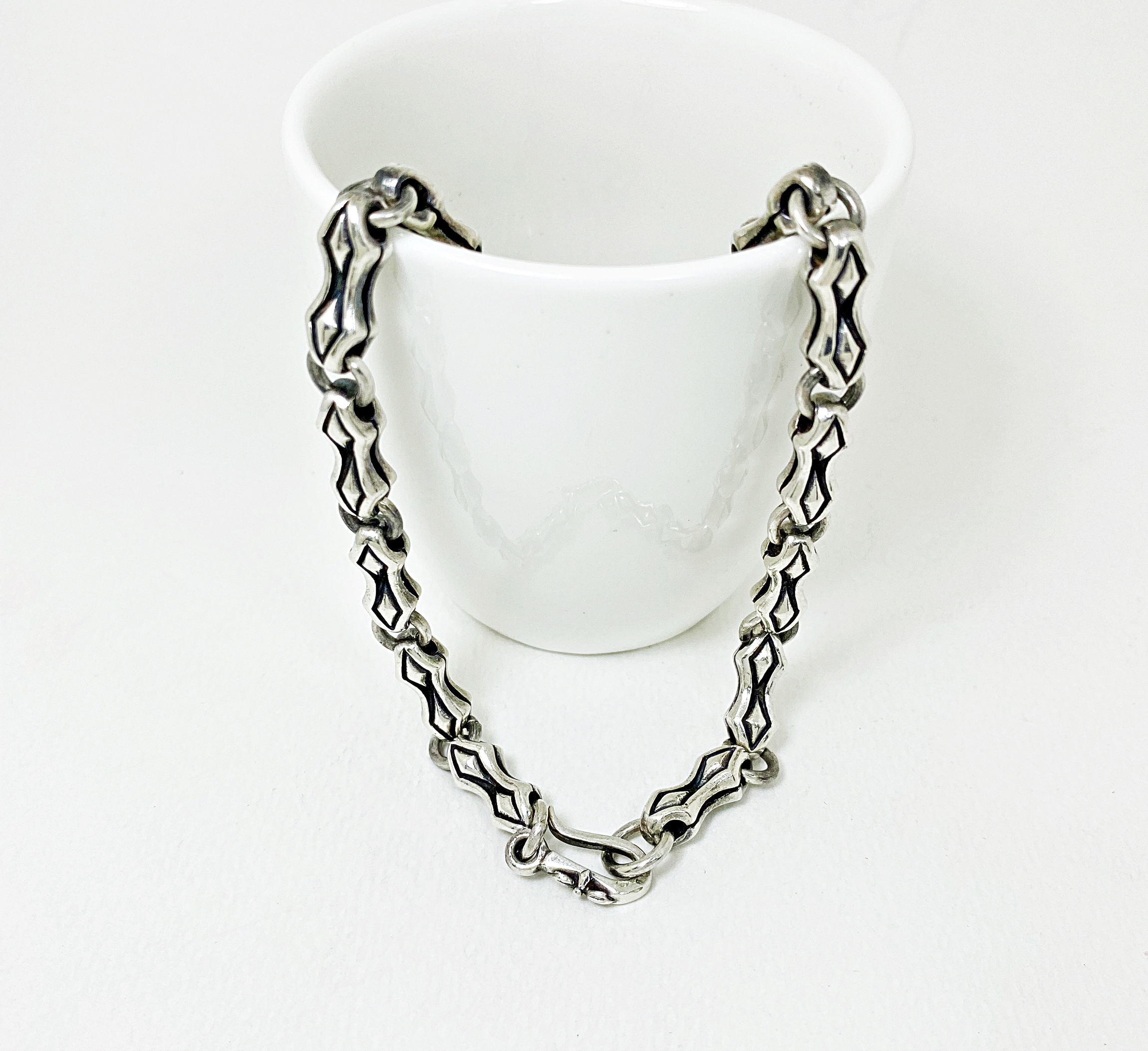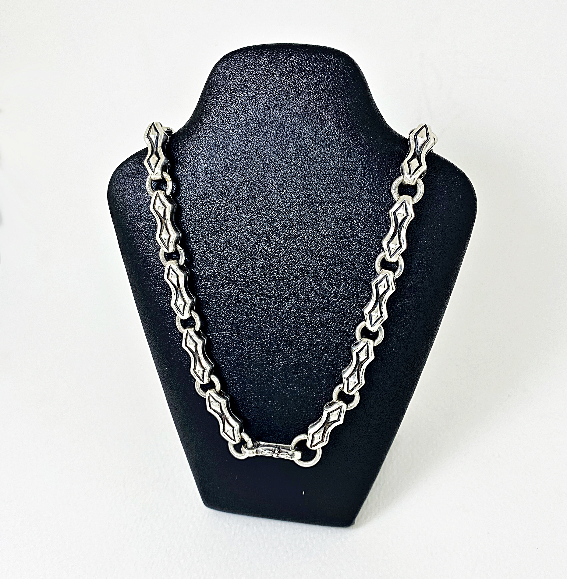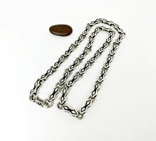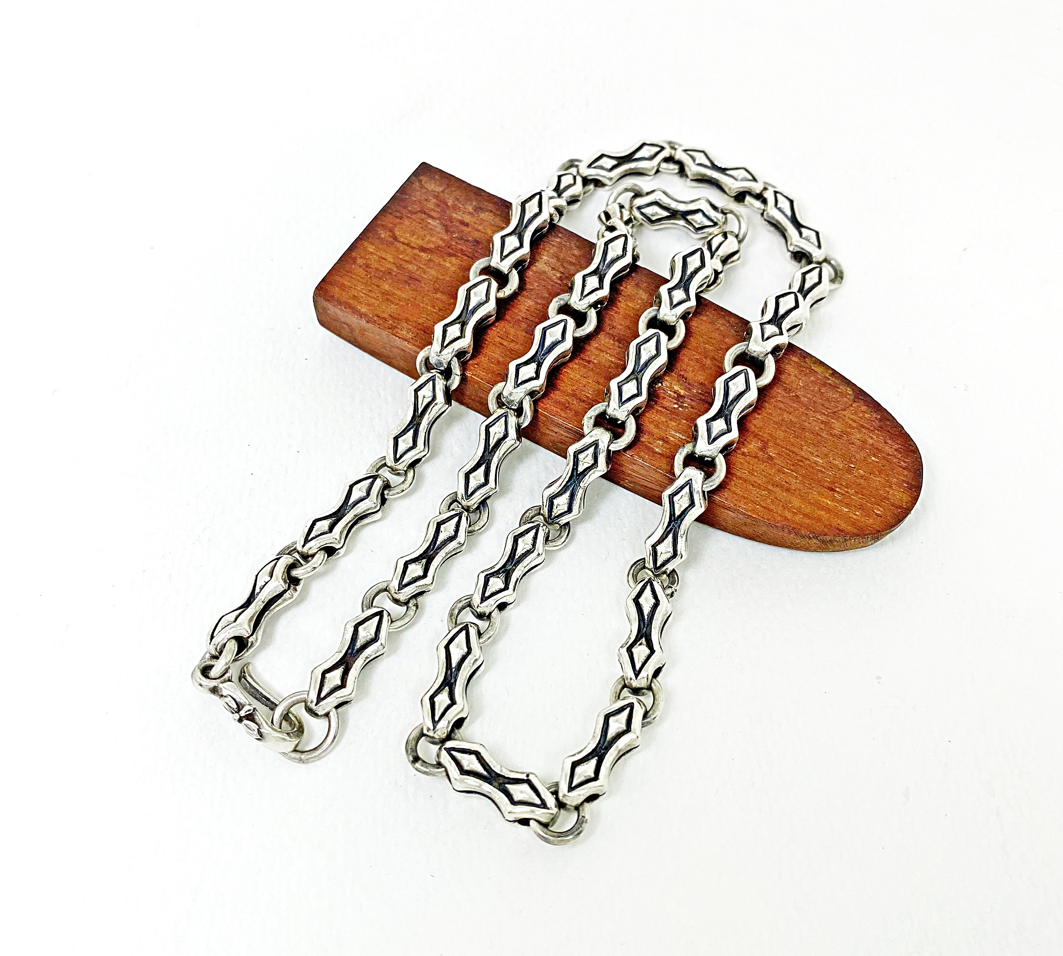 The chunky textured peanut shaped necklace is 925 sterling silver with handmade men chain designed and made by Sup Silver.