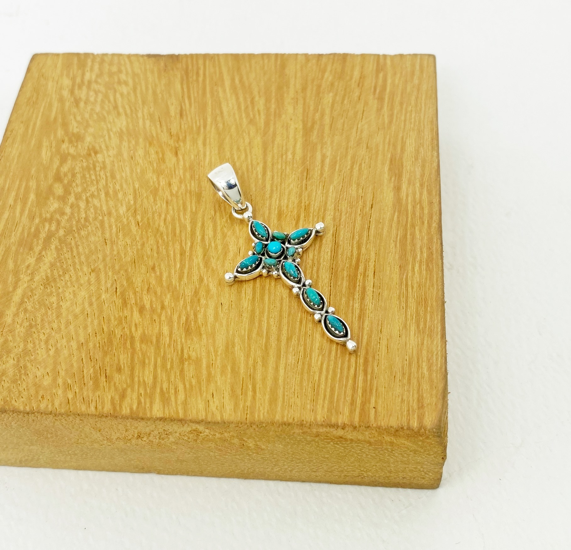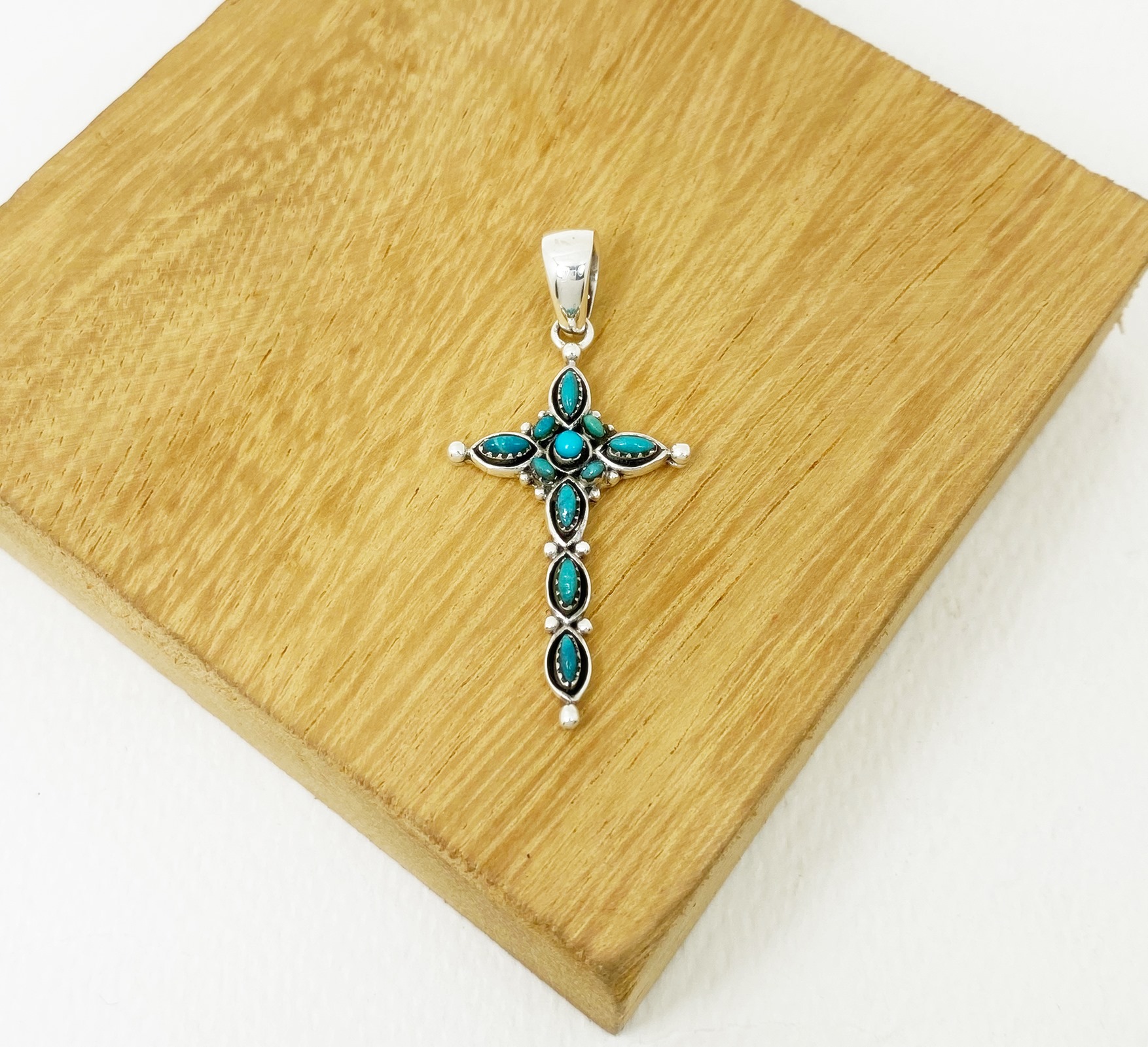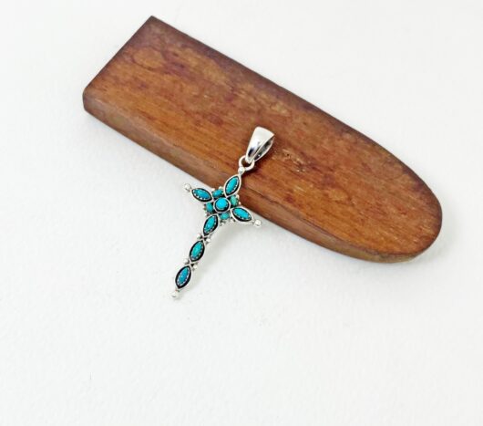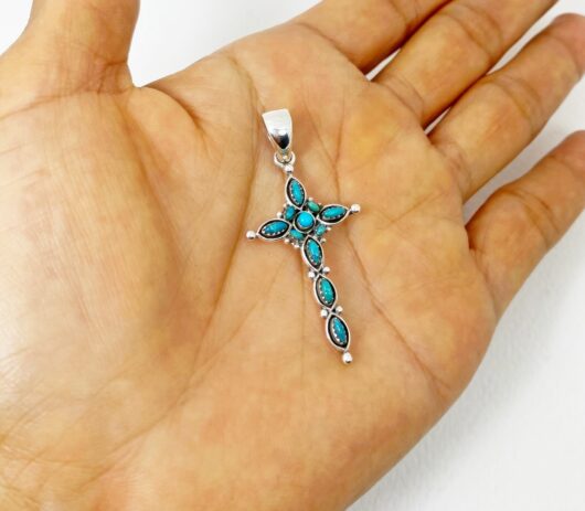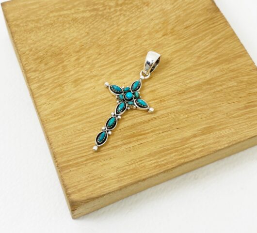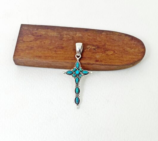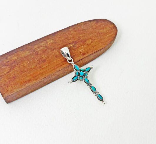 The wonderful turquoise Gothic cross pendant is 925 sterling silver with handmade Christian jewelry gifts designed and made by Sup Silver.