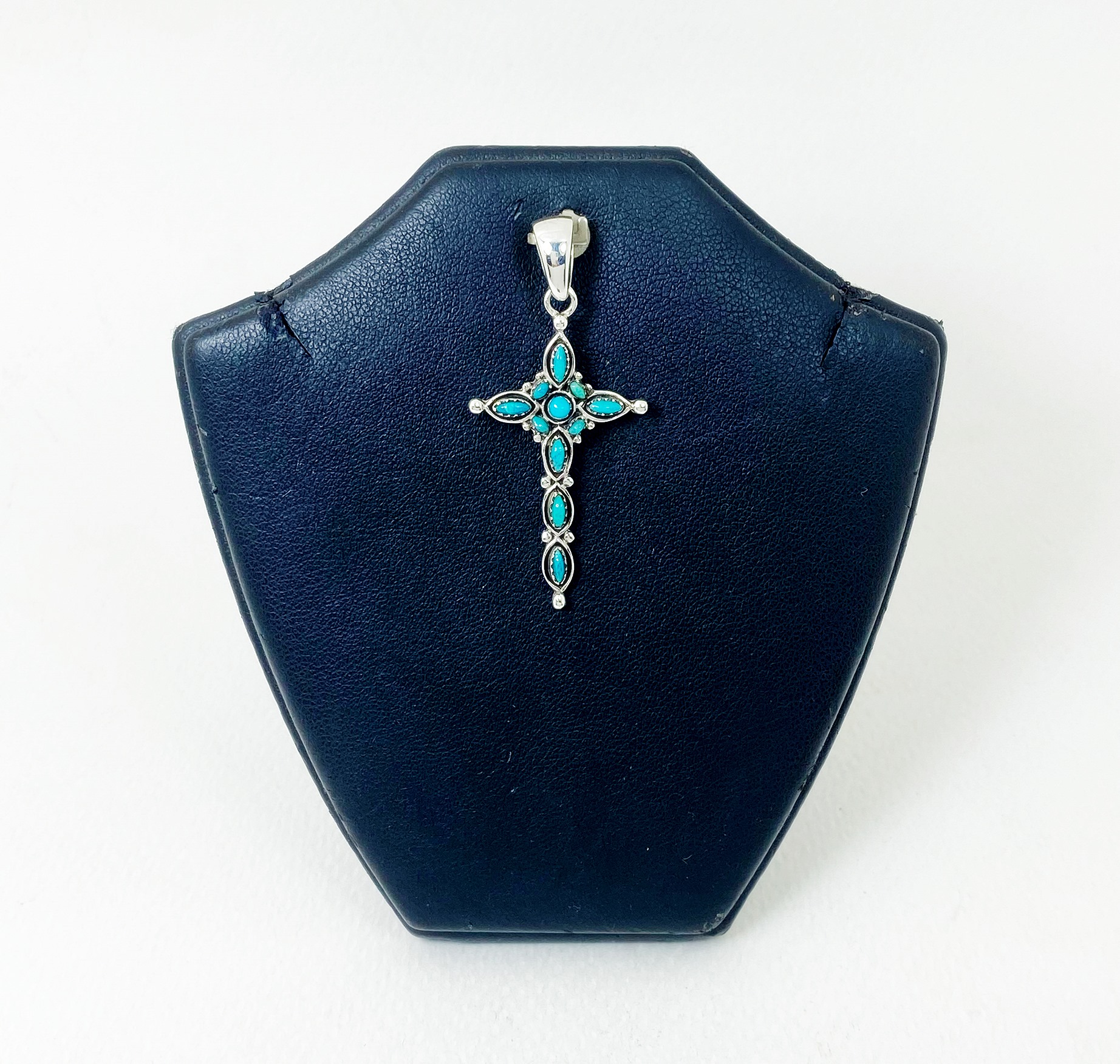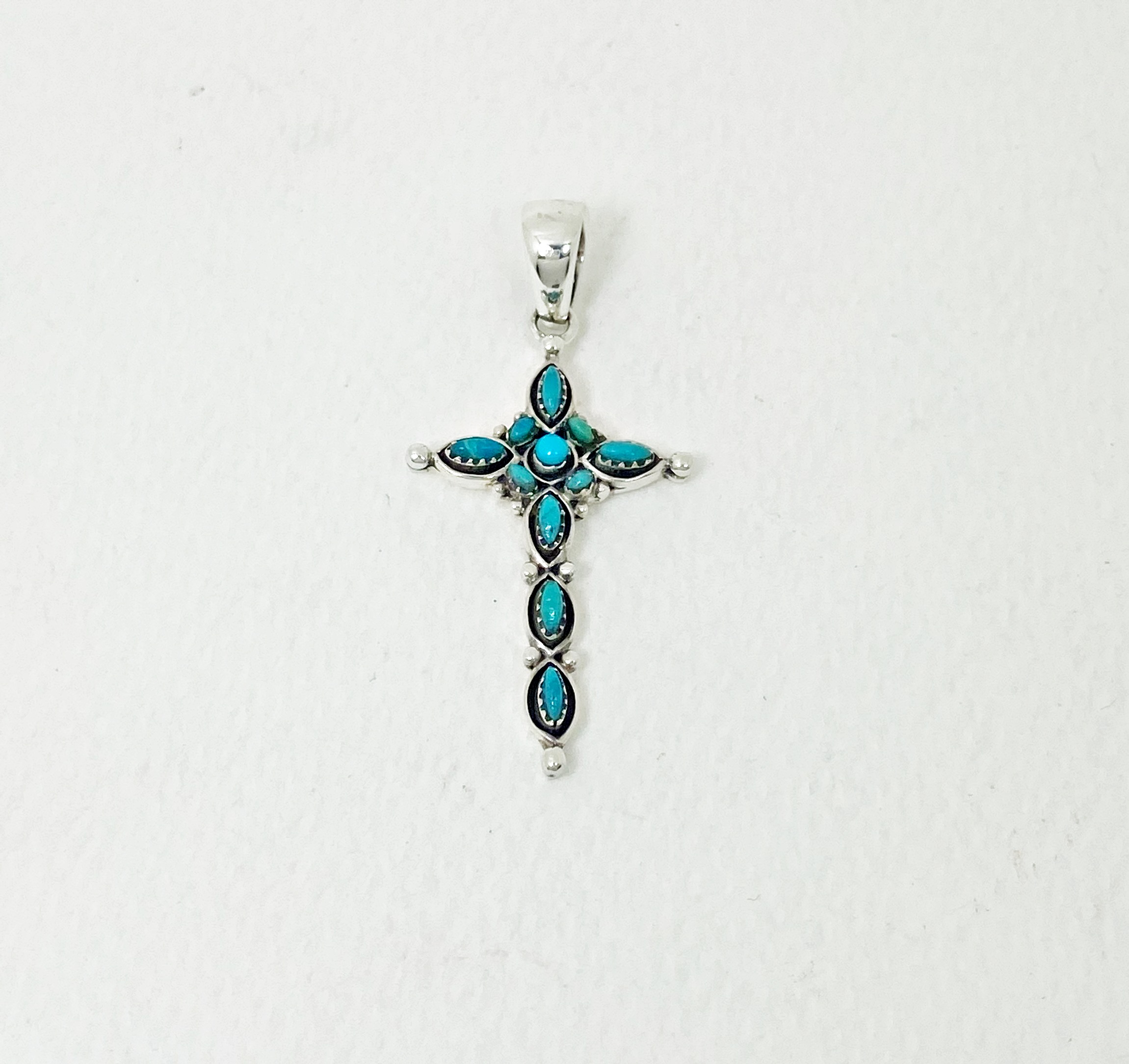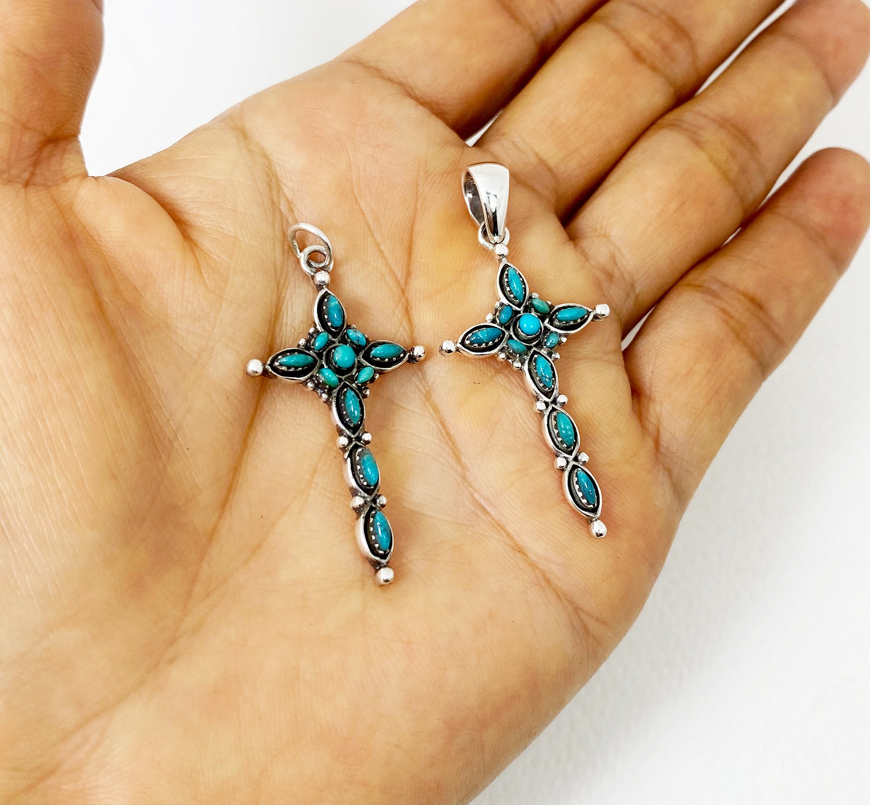 The wonderful turquoise Gothic cross pendant is 925 sterling silver with handmade Christian jewelry gifts designed and made by Sup Silver.