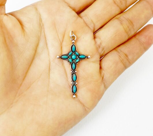 - Finish: Blue Green Color, Natural Stone, Light Oxidized, Clean, Smooth, Cross Shaped, Shiny, High Polished.